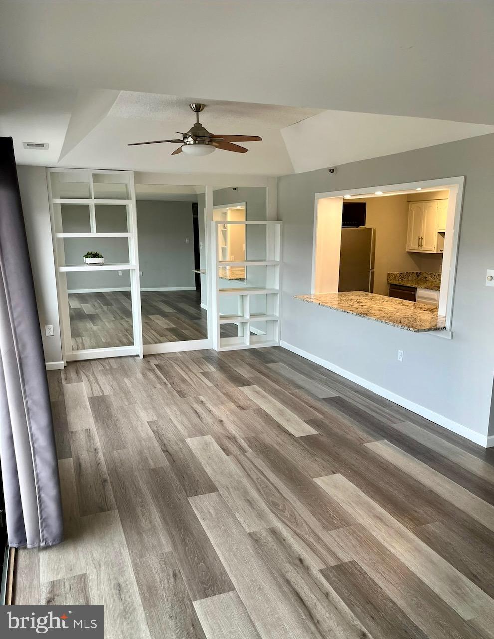 Rarely available Renovated Upper-Level Unit with Open Floorplan, Cathedral Ceilings, Renovated Kitchen and Baths, Balcony and Garage Parking in Full Service Building with Front Desk, Pool, and Gym. Kitchen features Granite and Stainless Steel Appliances. Extended Living Room with Built-Ins and Sliding Glass Doors to Balcony with views to Arlington. Powder Room and IN UNIT WASHER & DRYER! Primary features Ensuite Full Bathroom, Oversized Closet and Desk Nook. Assigned Underground Parking and only 1 Block to the Courthouse Metro!