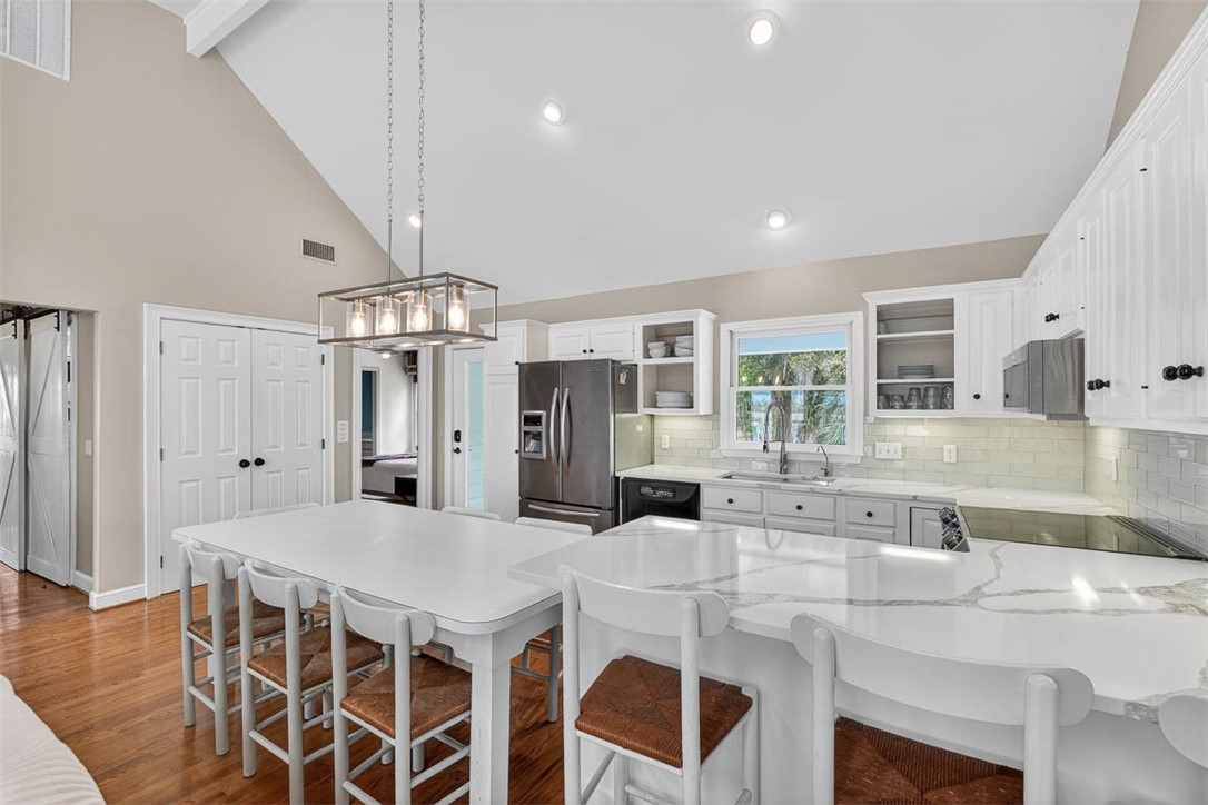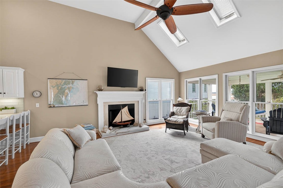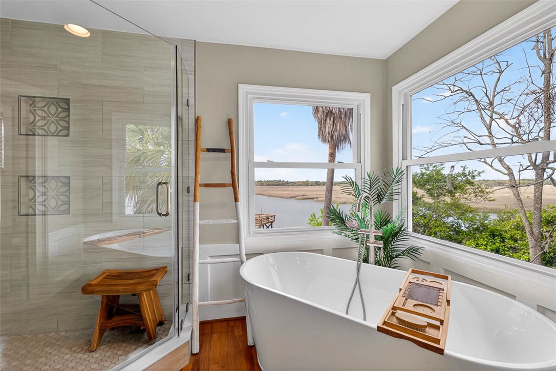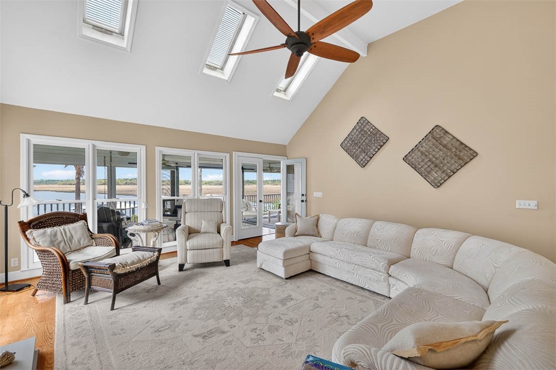 Where Light Meets the Lowcountry! Elevated above the riverbank to capture million-dollar views, this three-bedroom cottage is a study in thoughtful design and natural harmony. Vaulted ceilings soar through the kitchen, family room, and primary suite-skylights and vast windows draw the outdoors in at every turn. Wood floors run throughout, quartz countertops anchor the kitchen, and a wood-burning fireplace anchors the open floor plan in warmth. The primary suite is a private sanctuary: a spa-like soaking tub positioned to capture the river views., a separate shower, and that irreplaceable luxury of enjoying riverfront lifestyle. The additional bedrooms share a well-appointed Jack and Jill bath. An open dock stretches over the river, complete with a floating dock and a covered boat lift-ready for your vessel whether it stays in or out of the water. Cast a line for tonight's dinner straight off your own dock. Ashore, a fire pit glows under coastal skies, a hammock sways for naps, and an outdoor wing lets you linger long past sunset. Near the wild. Close to everything! Adjacent to the storied Harris Neck National Wildlife Refuge-a sanctuary for migrating birds, alligators, and old growth coastal habitat-yet within 30 minutes of vibrant neighboring communities, Richmond Hill, Brunswick, Darien, Hinesville and not too far from Savannah.https://youtu.be/ZNsBmAYmdms