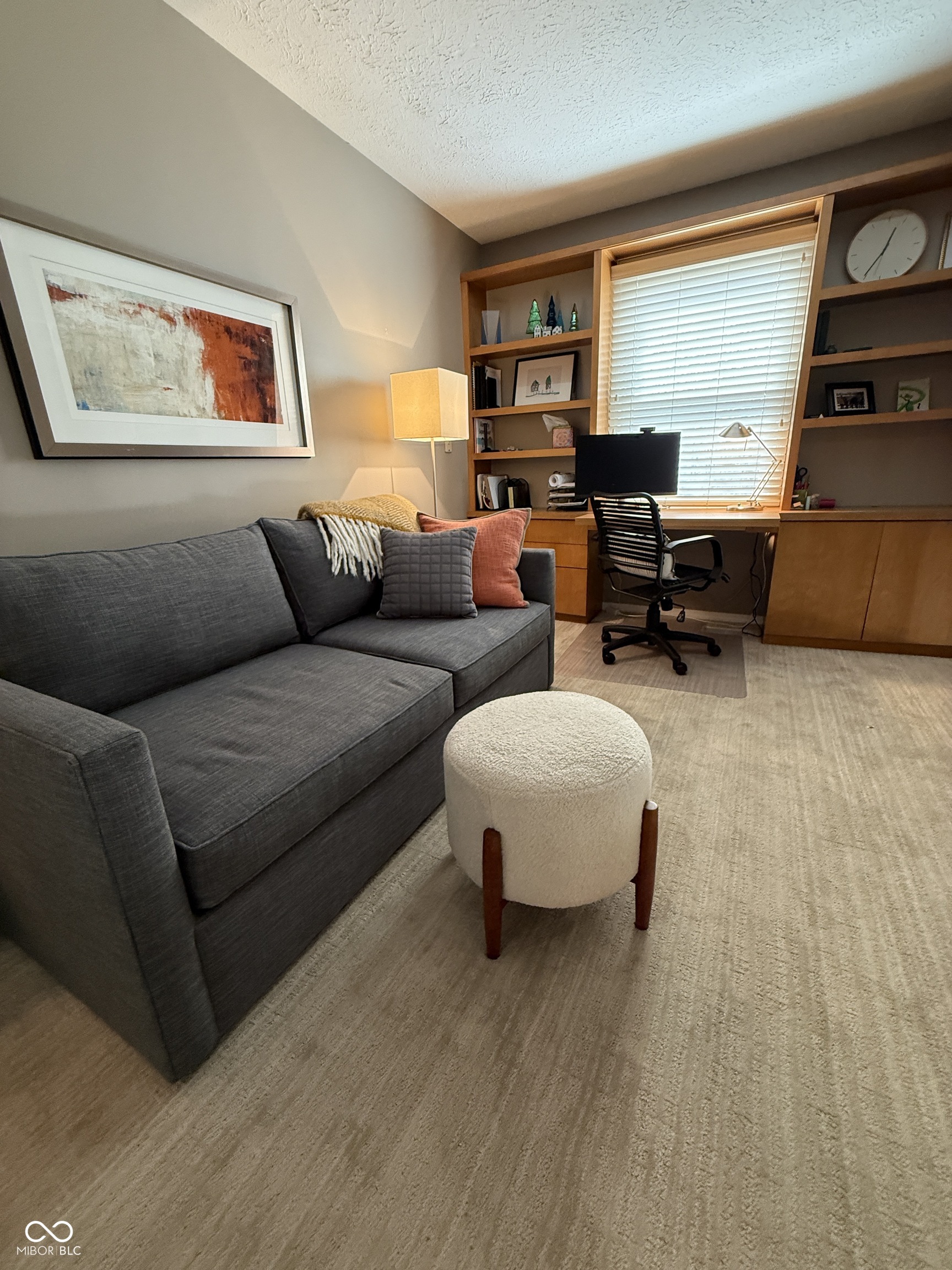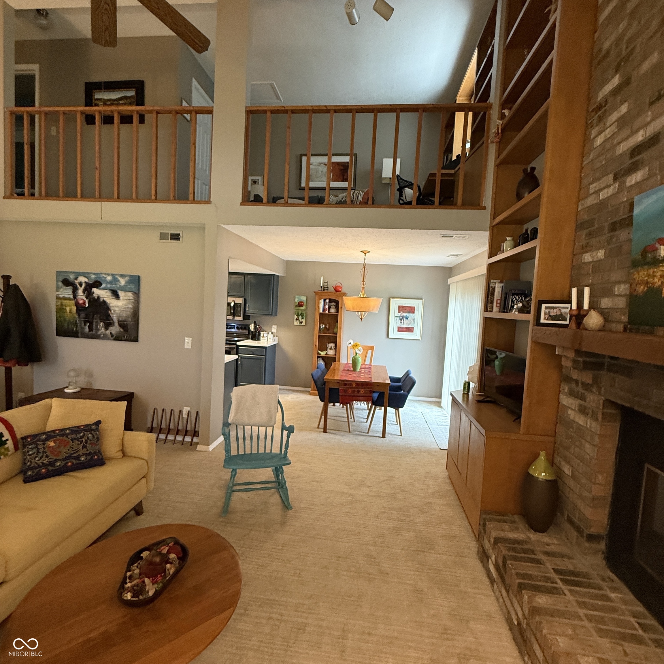 Look no further! This condo was thoughtfully and stylishly updated for a move-in ready scenario! The view from the entry is one you will remember with fresh taupe paint, brand new neutral carpeting, a vaulted ceiling, brick fireplace, floor to ceiling bookcases and a bright and welcoming decor. The Kit was remodeled 4 years ago and features new steel blue cabinetry, solid surface counters, appliances and flooring... all tastefully combined to fit a traditional or contemporary decor. The Primary bedroom is quite large, with room enough for a King bed and a sitting area. The windows (fabric draperies excluded) have a view of the expansive green space to the front of the condo. The walk in closet features built-in shelving and has plenty of room and good lighting. The bath was totally updated 4 years ago, offering yet another stylish room. The Loft area is currently used as an office and features a wall of built-in cabinetry and desk. Using the sofa bed in this space has been perfect for overnight guests, and some people have walled this area in to make a true second bedroom. The garage features built in cabinetry, a workbench, and the garage door and GDO are 6 years old. Keyless entry. The HVAC has been serviced regularly. Security system. New carpet, fresh paint throughout! The water bill is paid by HOA! This quiet condo is truly a special find! It's an easy walk to shopping, coffee and the gym.
