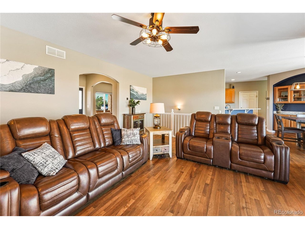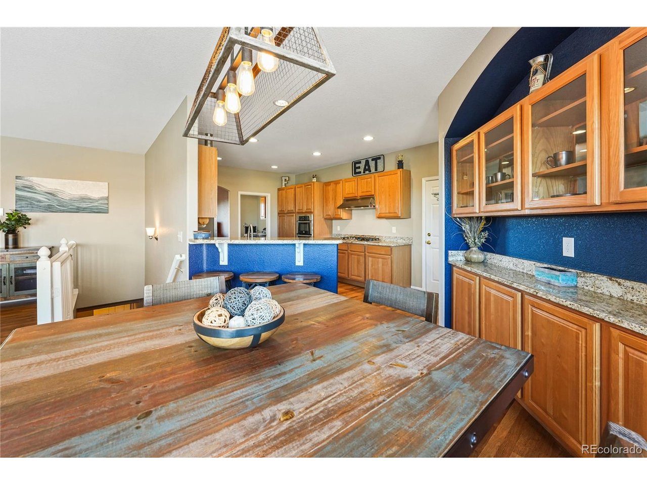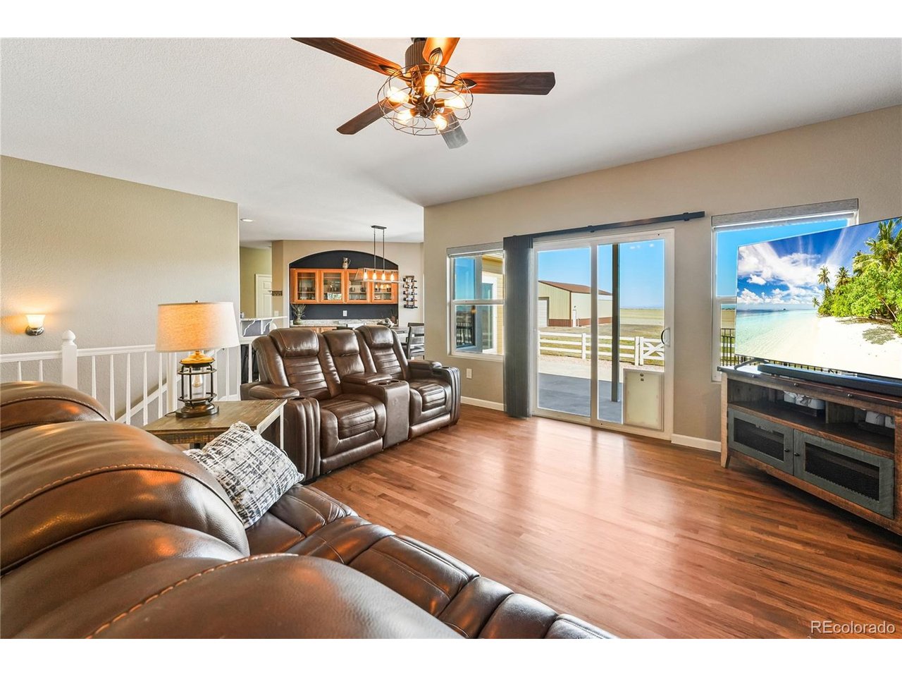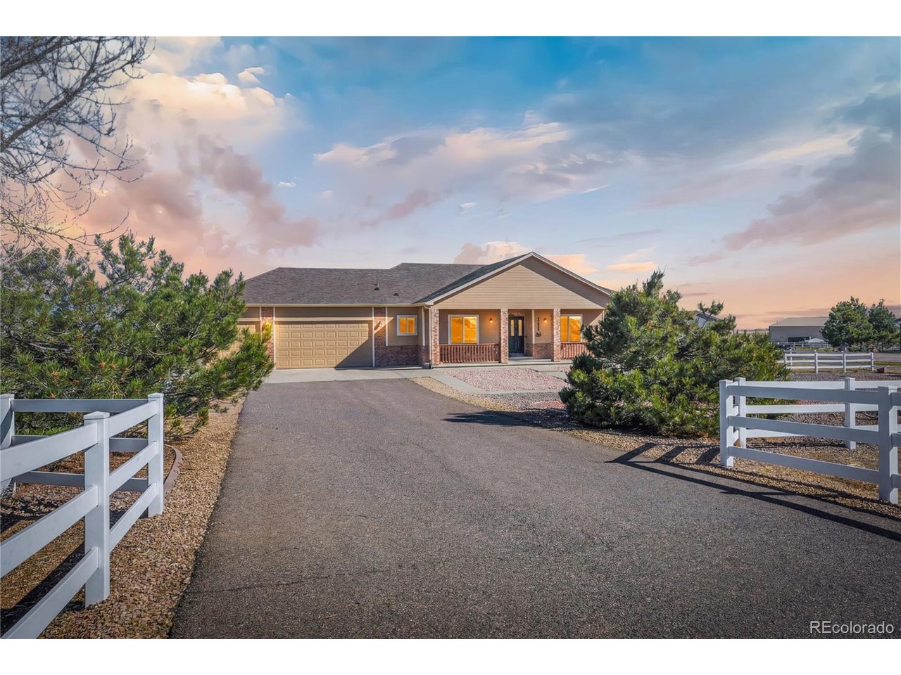 When Luxury meets Country! 4 Bedroom, 3 bath, 3 car garage, 2.5 acres with the northeast side surrounded by acres and acres of dedicated open space. This spectacular property has the shop you have been wanting all your grownup life for all your big toys. This outbuilding is 30 x 56 with an air compressor, 12' door and concrete flooring, water to the outside of the building. RV's welcome and here! Let's move back into this gorgeous home with a primary suite with a 5-piece bath, walk in closet and the best part, access to the private deck. Think hot tub (not included) and star gazing. Also, a mini splitter to keep this private oasis the perfect temperature year-round. An En Suite on the opposite end of this ranch style home with granite and upgraded bathroom with stunning tile. You will most likely have to work to enjoy this piece of heaven on earth so there is a large office with built in double workstations. All new window treatments throughout the home. The formal dining room with exquisite tile is the perfect setting for a great meal from the amazing kitchen with granite, a coffee bar, and eat in kitchen, 5 burner GE Cafe gas top, double oven. Large pantry and laundry on the main level. Did you need a guest suite, it has that too on the lower level of the fully finished basement including a bar, wet sink. A large room for the pool table that you have always wanted. Crafts and sewing room are also there. Wait you need movie night; the theater room is there also. We could go on and on, hardwood floors, fireplace, freshly painted, southern deck as well. It would just be best if you came and fall in love yourself with this checks all the boxes of home. Only minutes to I76 and all the shopping, eating and in town fun. Respectfully priced to sell at $895K