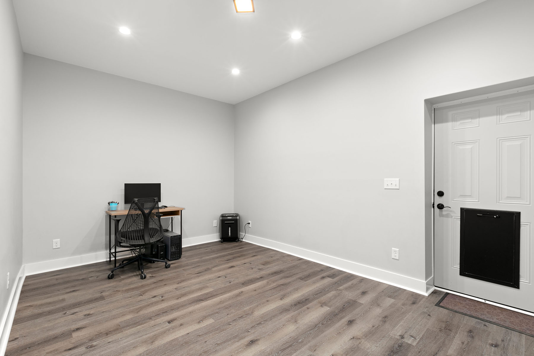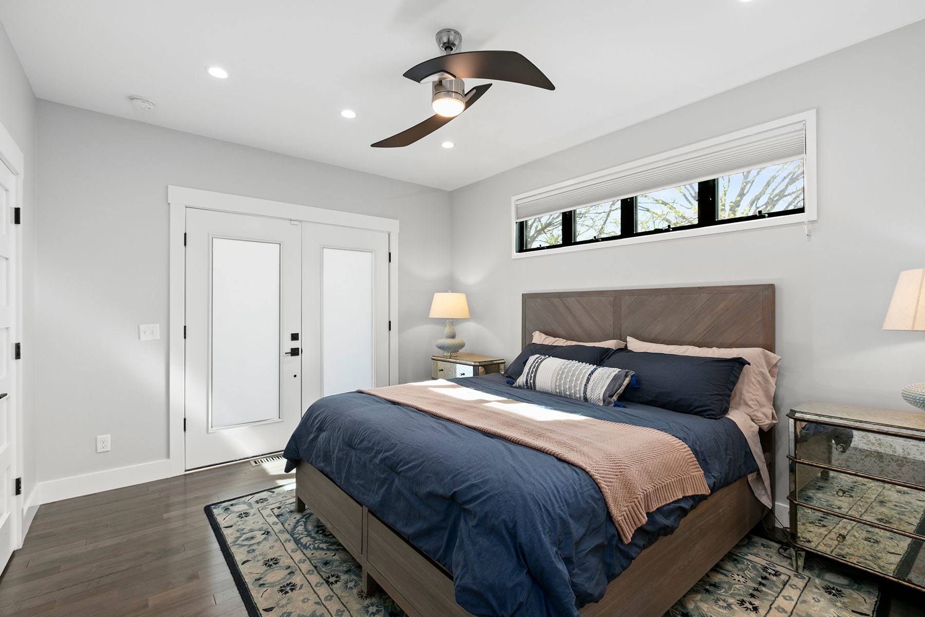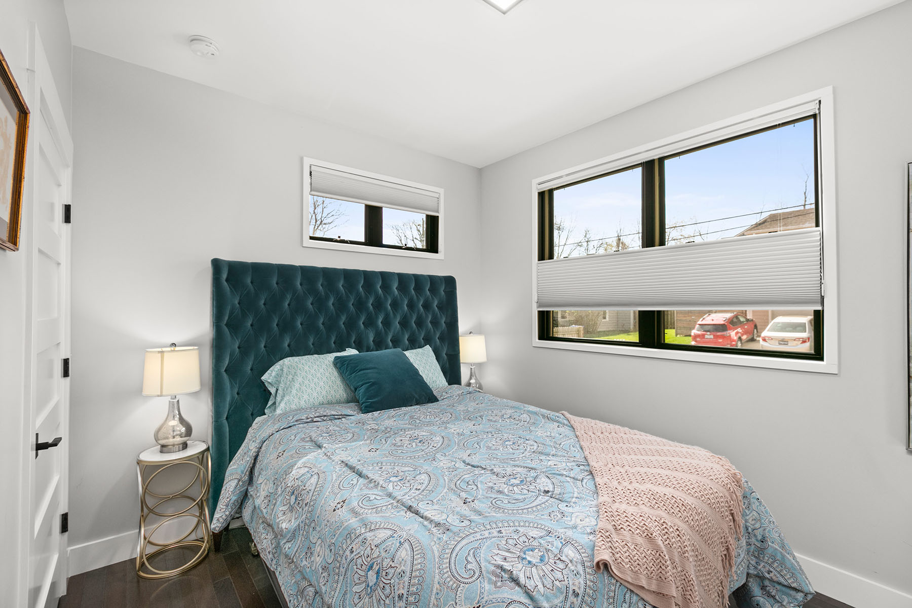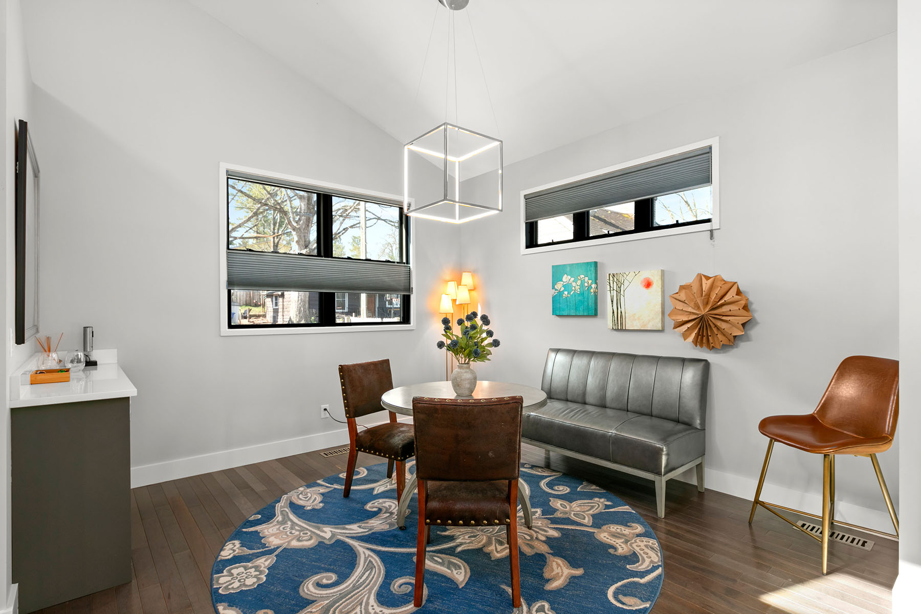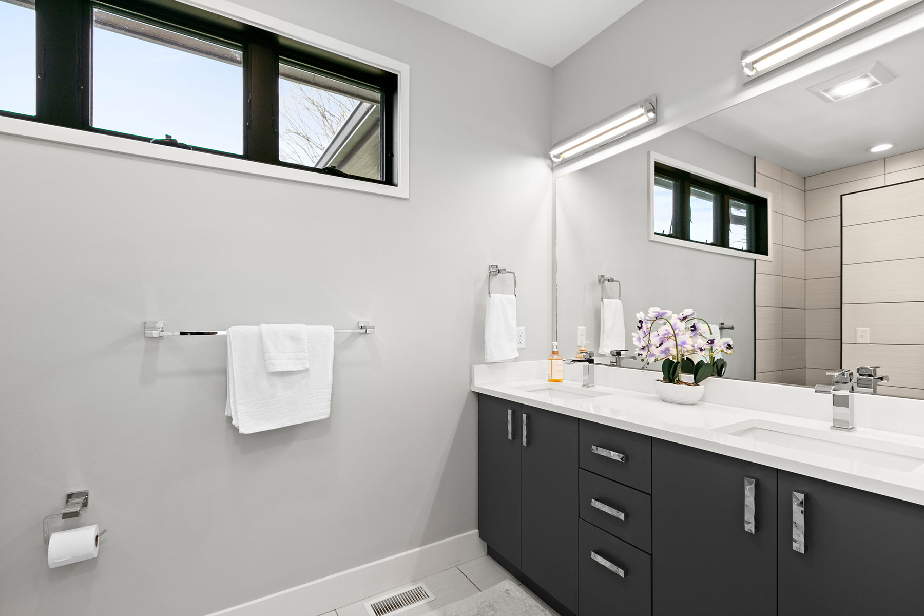 In the heart of sought-after West Asheville, this green-built luxurious modern residence epitomizes upscale living. Within proximity to an array of exceptional restaurants, shops, galleries and breweries, this property offers the ultimate in main-level living, boasting an open-concept design featuring a stunning white quartz waterfall island, high-end fixtures, custom blinds and soaring ceilings. Abundant natural light fills the home thanks to the generous number of windows throughout, creating a bright and inviting atmosphere. The exterior spaces are equally impressive, featuring two composite decks with elegant horizontal railings, one accessible from the main living area and the other a private porch off the primary suite. The primary suite is further enhanced by a double quartz vanity and an expansive stone and tile shower ensuite. The fully fenced, level yard provides a serene retreat, complete with private side door access to the terrace level and beautifully landscaped rock work. The terrace level presents a versatile space, ideal for a spacious playroom or media room, home office, family room with a wet bar and wine fridge, full bathroom, fourth bedroom, laundry area and workout space. Additionally, there is another hookup for a stackable washer and dryer upstairs for added convenience. This property could also be utilized as an extended-stay guest suite, a source of income through long-term rental, or a homestay, presenting a multitude of possibilities for the discerning buyer (subject to verification).