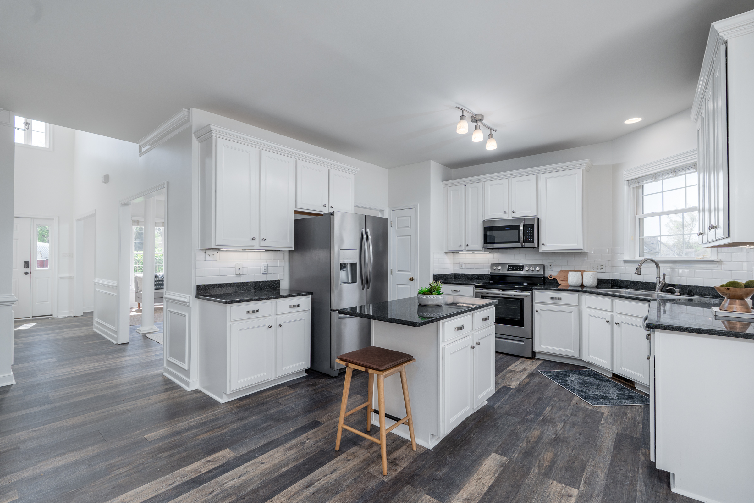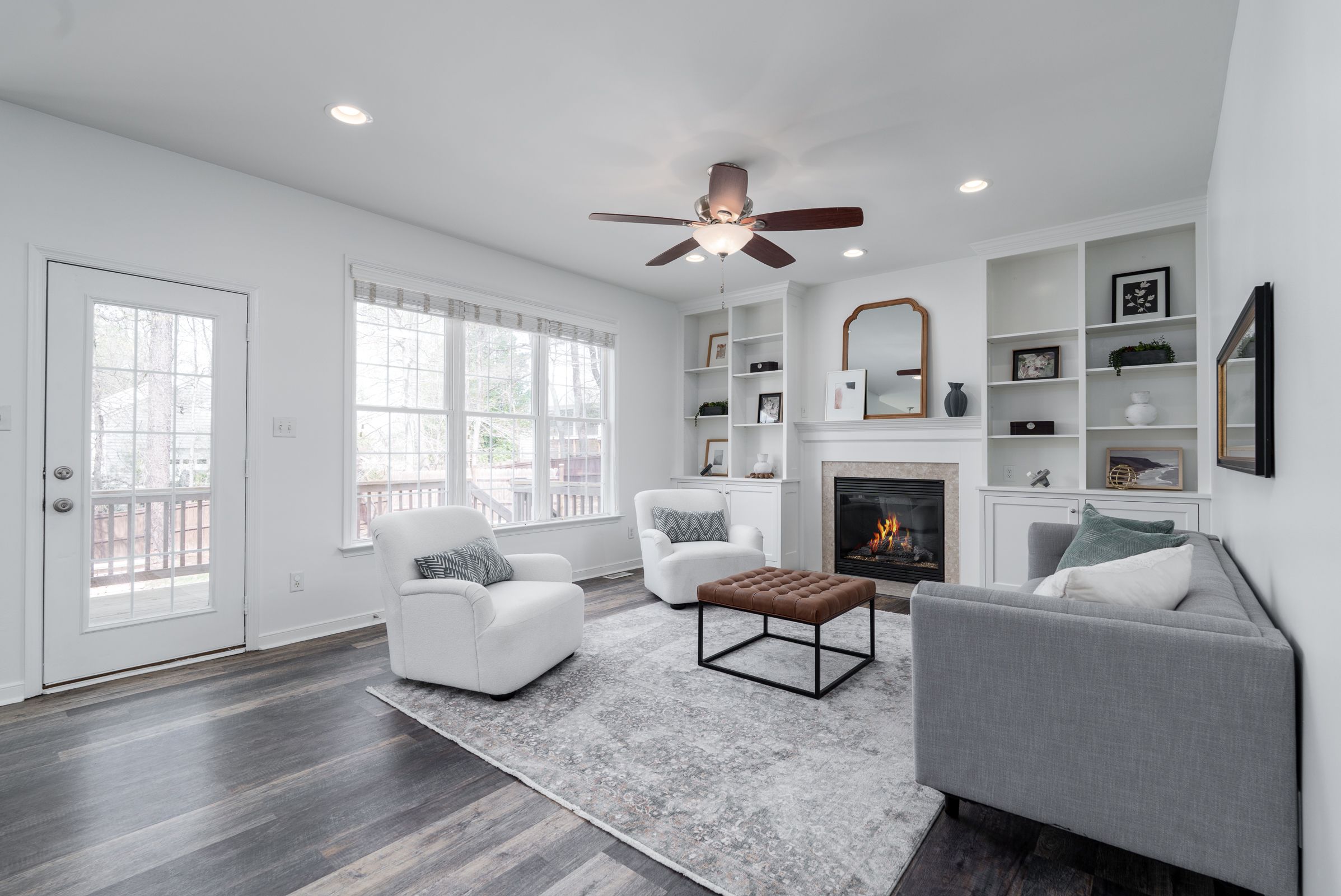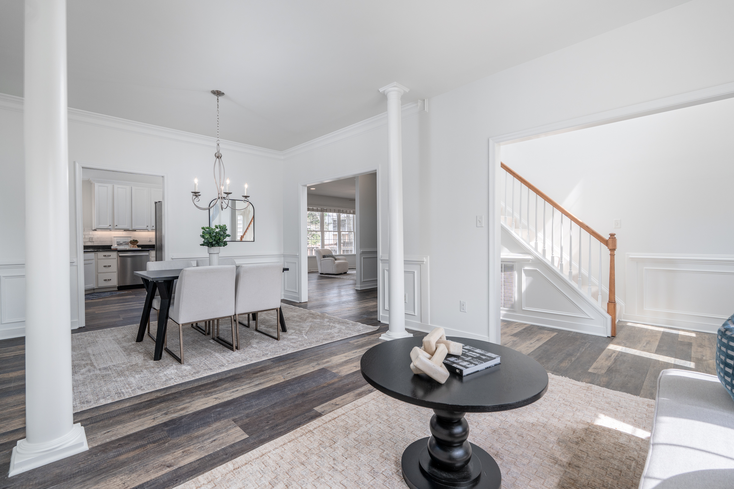 This inviting Colonial Revival sits on a large, half-acre corner lot, elevated on a hill, offering abundant natural light, a thoughtfully designed open layout, and quiet suburban charm with no HOA. Formal living and dining rooms flank the foyer, leading to an updated kitchen with custom cabinetry, granite countertops, stainless steel appliances, an island, and a vaulted breakfast nook. The kitchen opens to the family room, which is centered by a gas fireplace and custom built-ins. Upstairs, the spacious primary suite offers a walk-in closet and a well-appointed bath with a soaking tub, dual vanity, frameless glass shower, and linen closet. Three additional bedrooms, a full bath, and a convenient second-floor laundry room complete the level. The third floor provides flexible space for a recreation room or fifth bedroom. Enjoy outdoor living with a privacy-fenced backyard, deck, and custom patio with fire pit. Additional highlights include a two-car garage with built-ins, double-width driveway, and an irrigation system.