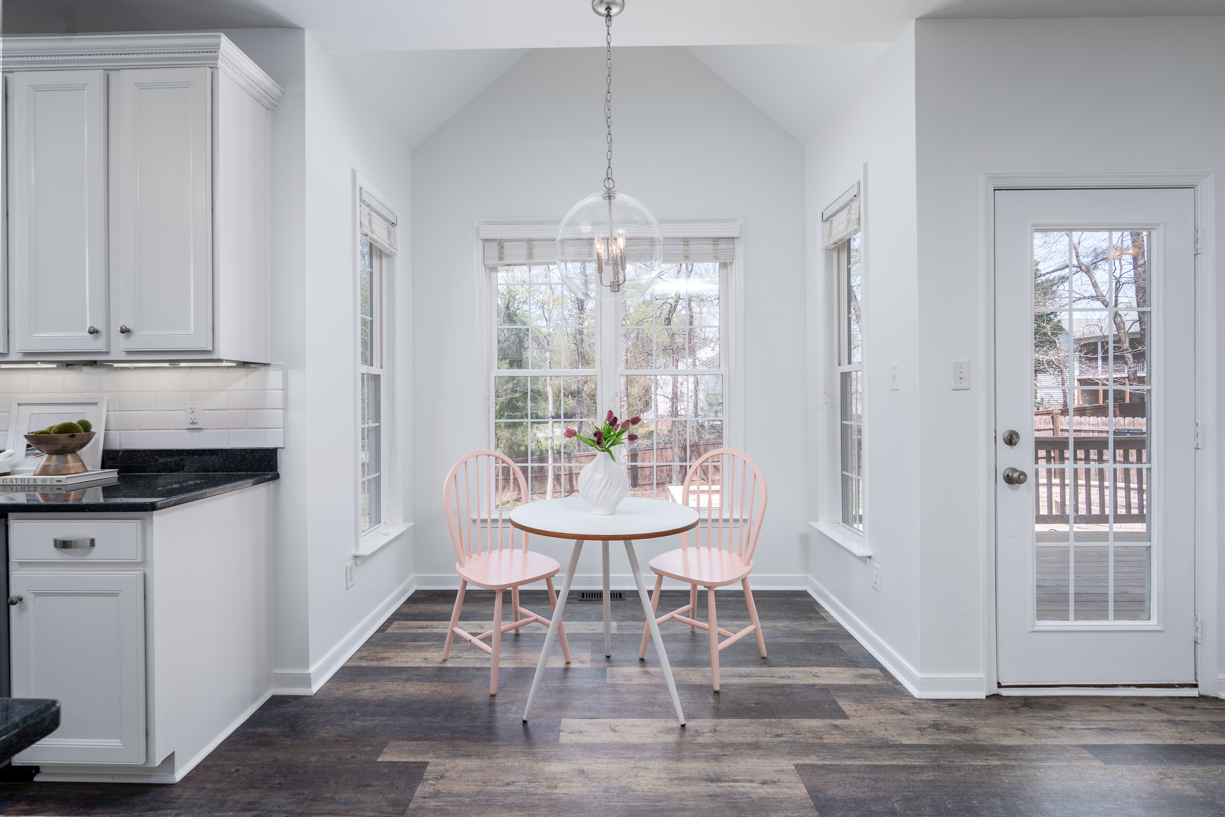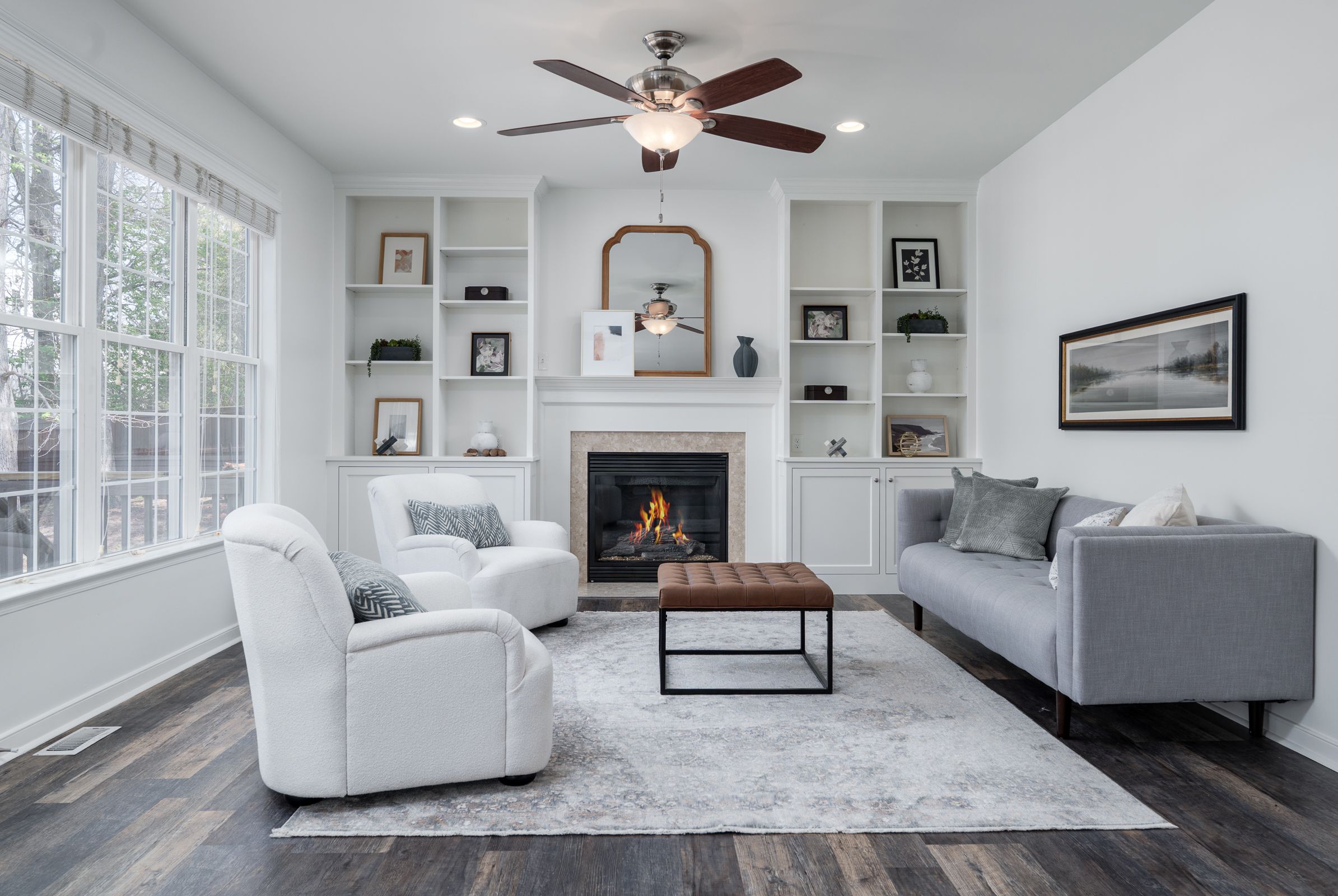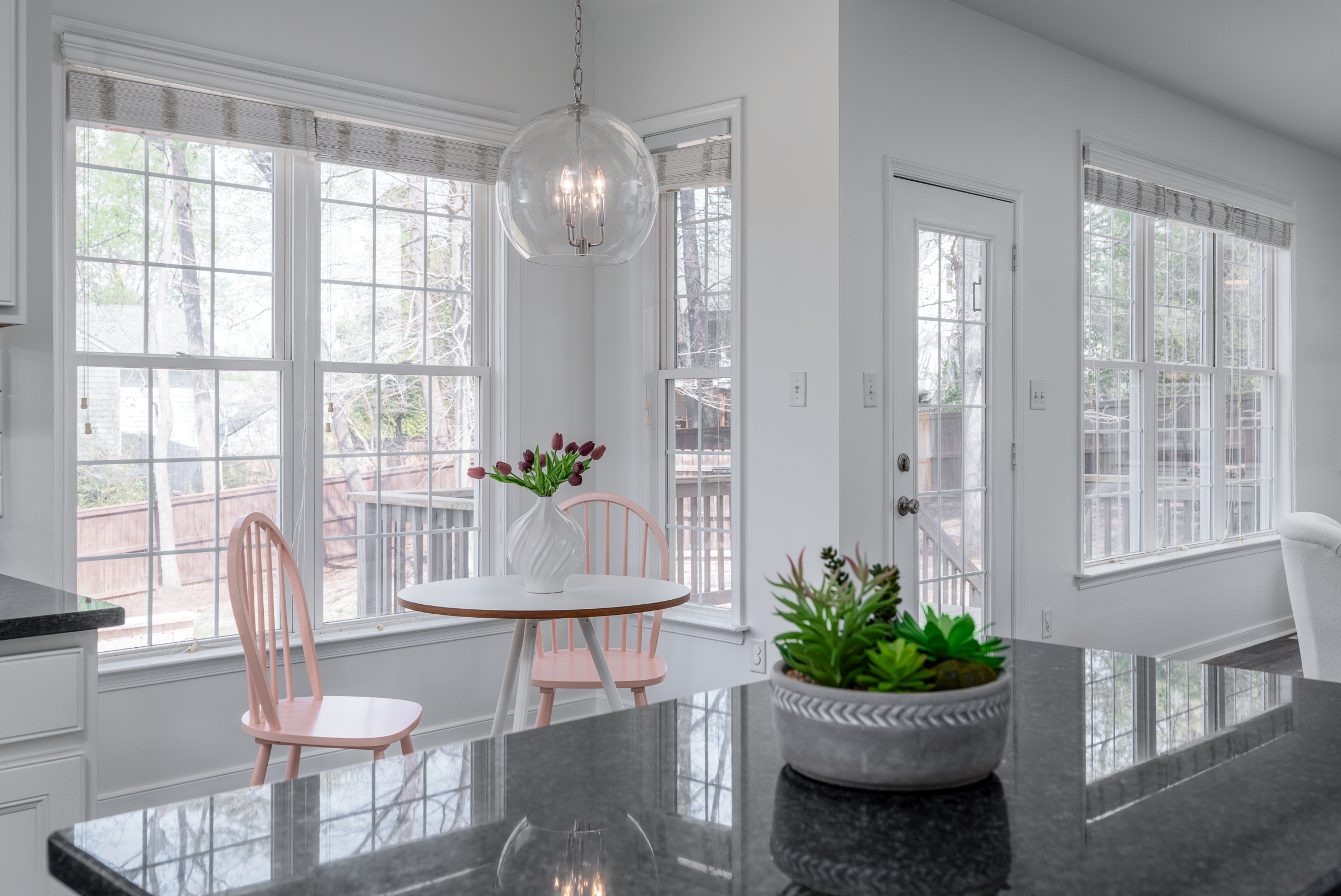 This inviting Colonial Revival sits on a large, half-acre corner lot, elevated on a hill, offering abundant natural light, a thoughtfully designed open layout, and quiet suburban charm with no HOA. Formal living and dining rooms flank the foyer, leading to an updated kitchen with custom cabinetry, granite countertops, stainless steel appliances, an island, and a vaulted breakfast nook. The kitchen opens to the family room, which is centered by a gas fireplace and custom built-ins. Upstairs, the spacious primary suite offers a walk-in closet and a well-appointed bath with a soaking tub, dual vanity, frameless glass shower, and linen closet. Three additional bedrooms, a full bath, and a convenient second-floor laundry room complete the level. The third floor provides flexible space for a recreation room or fifth bedroom. Enjoy outdoor living with a privacy-fenced backyard, deck, and custom patio with fire pit. Additional highlights include a two-car garage with built-ins, double-width driveway, and an irrigation system.