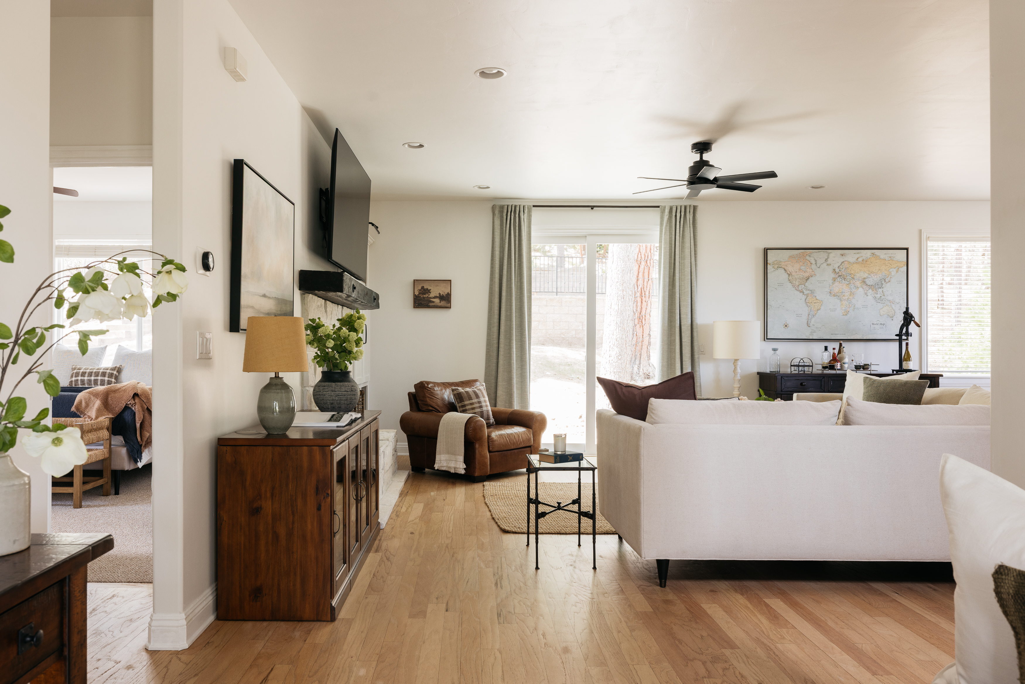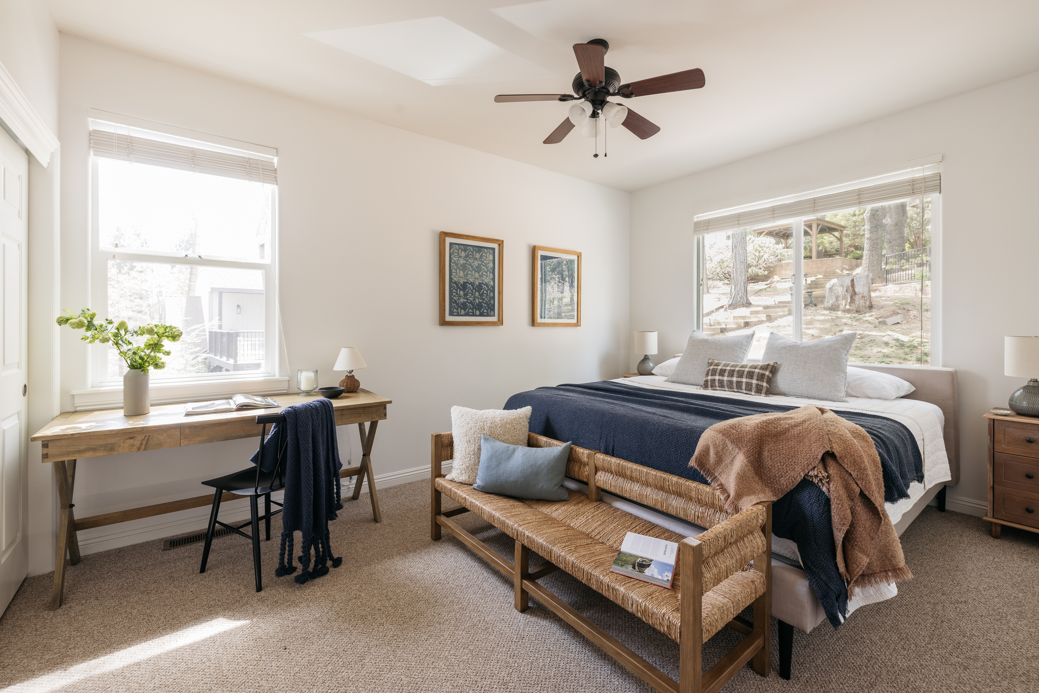 Tucked among towering oak and pine trees, this bright and airy lake house offers an exceptional blendof design, comfort, and mountain serenity. Ideally located on a quiet cul-de-sac just moments from theNorth Shore Trail of Lake Arrowhead, Tavern Bay Beach Club, and the UCLA Lake Arrowhead Lodge,the setting is as convenient as it is peaceful. Inside, the home unfolds into a well designed 4-bedroom,3-bathroom layout filled with natural light. The open-concept main living space is both inviting andrefined, anchored by a beautiful stone fireplace and adorned warm hardwood floors. A seamless flowconnects the welcoming living area to the dining space and into a stunning, fully upgraded kitchen.Here, custom cabinetry, quartz countertops, handcrafted Zellige tile, and premium Viking appliancescreate a space that is as functional as it is visually striking, complete with a pantry and Kohlerfixtures.The primary suite is a true sanctuary generously sized with vaulted ceilings, its own fireplace,and a spacious walk-in closet. The en-suite bath evokes a spa-like experience, featuring a doublevanity with Zellige countertops and a soaking tub positioned to capture tranquil forest views. 3additional bedrooms are equally well-proportioned, offering flexibility for guests, work-from-homespaces, or family living. Step outside and discover what is arguably the most special part of theproperty: a beautifully landscaped, multi-level terraced backyard designed for both relaxation andentertaining and a rarity for the area. Expanses of lush turf are complemented by a gazebo, diningarea, horseshoe court, and inviting Adirondack seatingcreating a setting perfect for gathering underthe trees. A path above the home leads to the locally cherished "Zen Deck," where peaceful lake viewsawait. Additional features include an oversized two-car garage, dual-zone central heating and cooling,a natural gas standby Generac whole-house generator, refinished solid hardwood flooring, brand-newcarpeting, and fresh interior and exterior paint. This home includes lake rights.