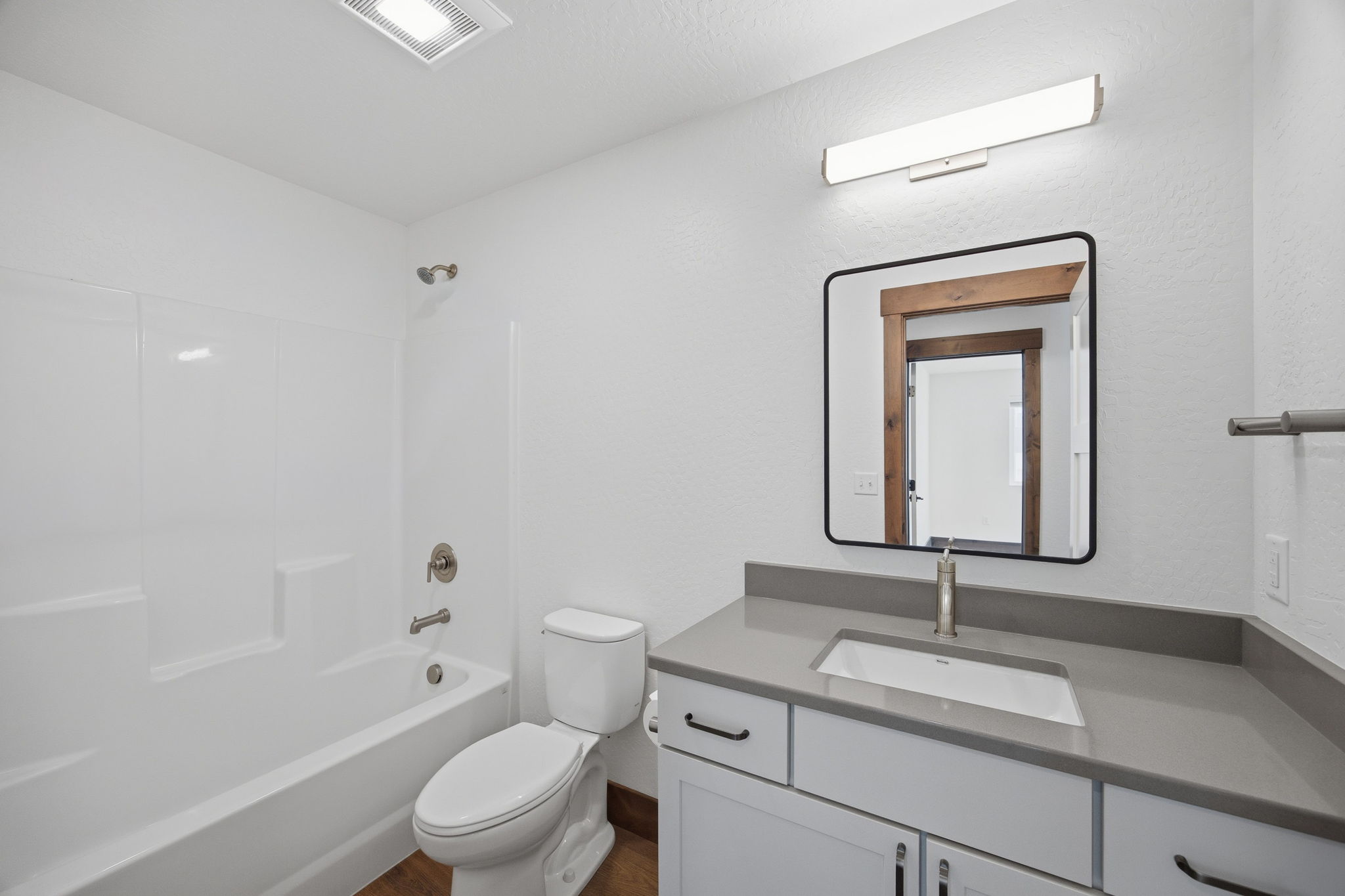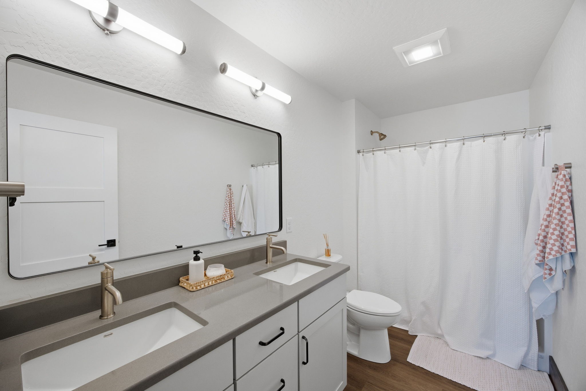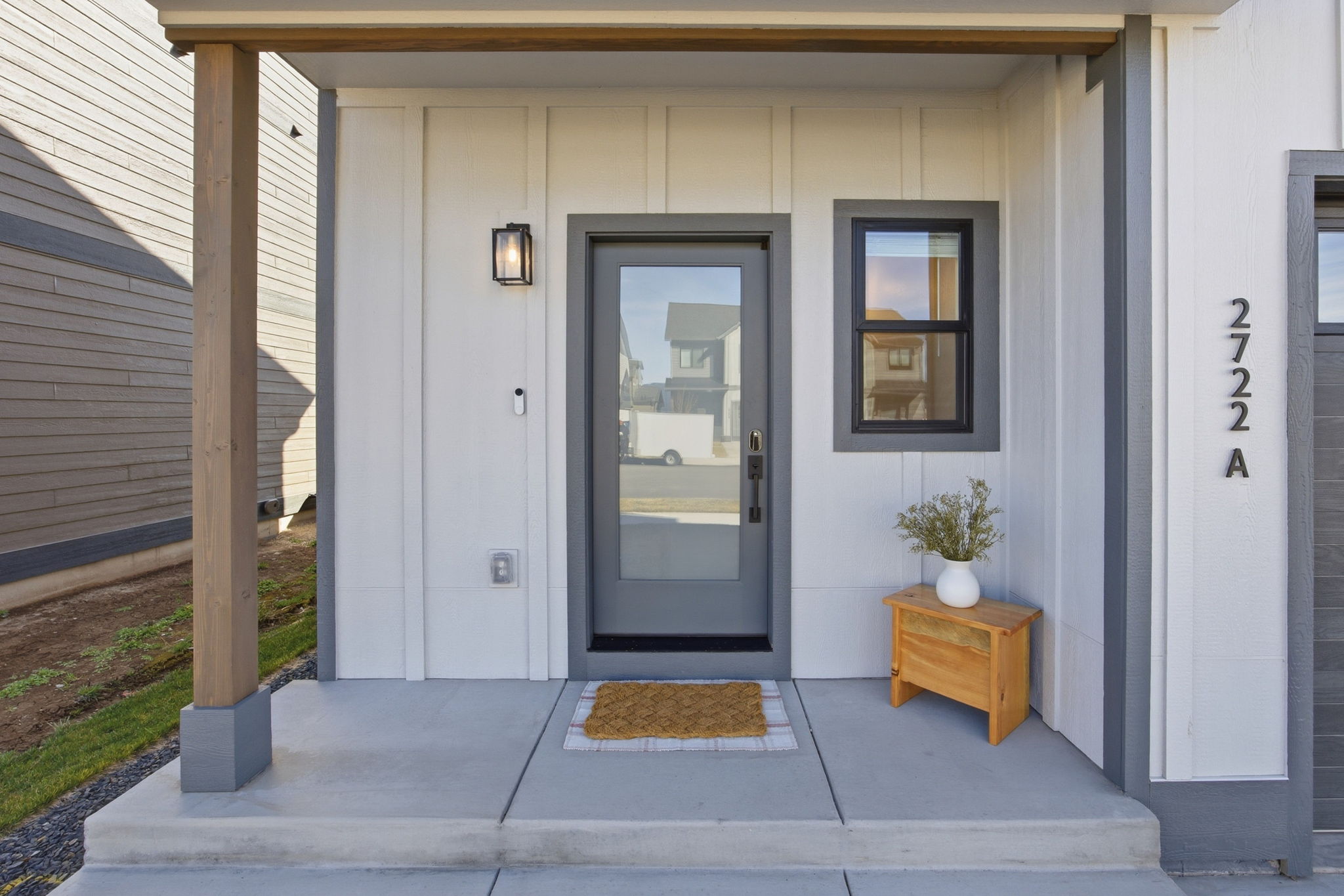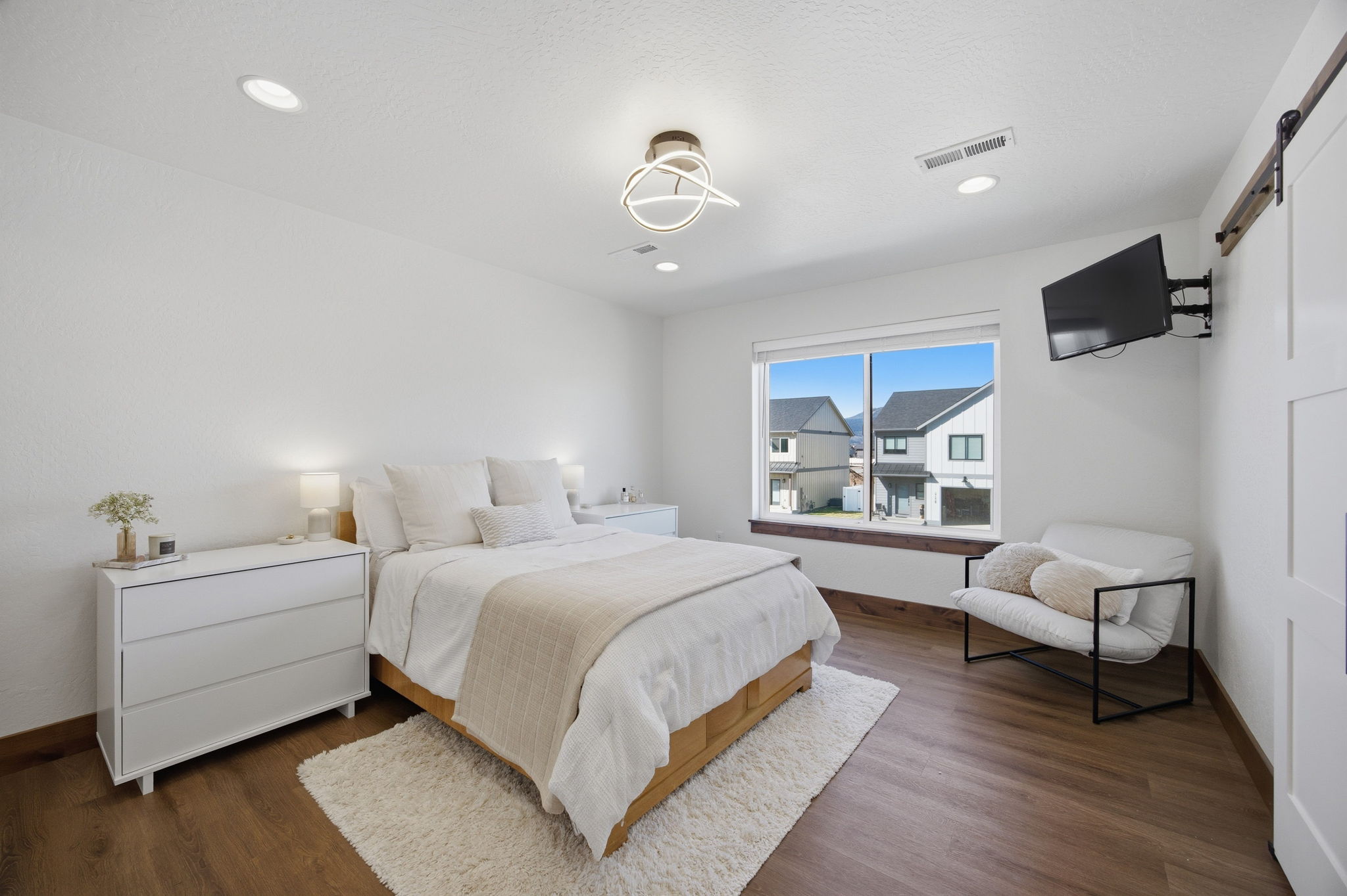 Discover contemporary living at its finest in this 2024 townhome by Beauchamp Construction, in the Hellgate Elementary School District. This residence represents the pinnacle of warm modern design that is sophisticated, functional, and most importantly, ready for immediate occupancy. The main level features tall ceilings and an open concept designed for everyday comfort. A convenient entryway closet and powder room keep guests entirely on the main floor, making hosting effortless. The kitchen stuns with its stainless steel appliances, quartz countertops, stack tile backsplash, corner pantry, and integrated refuse cabinet in the working island. The large windows flood the space with natural light and offer access to the East-facing patio that overlooks the landscaped, irrigated backyard. Upstairs, the home reveals its thoughtful layout with two additional spacious bedrooms, a full bathroom, large linen closet, and dedicated laundry room with storage to maximize functionality. Down the hallway is the primary suite that offers an element of privacy and is complemented by a walk-in closet with built-in organization and features an ensuite with dual-sink quartz vanity, spacious shower, and Moen brushed nickel fixtures. Additional amenities include an attached heated garage, climate control with Ecobee technology, Ring doorbell, alder trim and luxury vinyl plank flooring throughout along with peace of mind with a transferrable warranty through December 2034. No need to wait, secure your key to Remington Flats today!