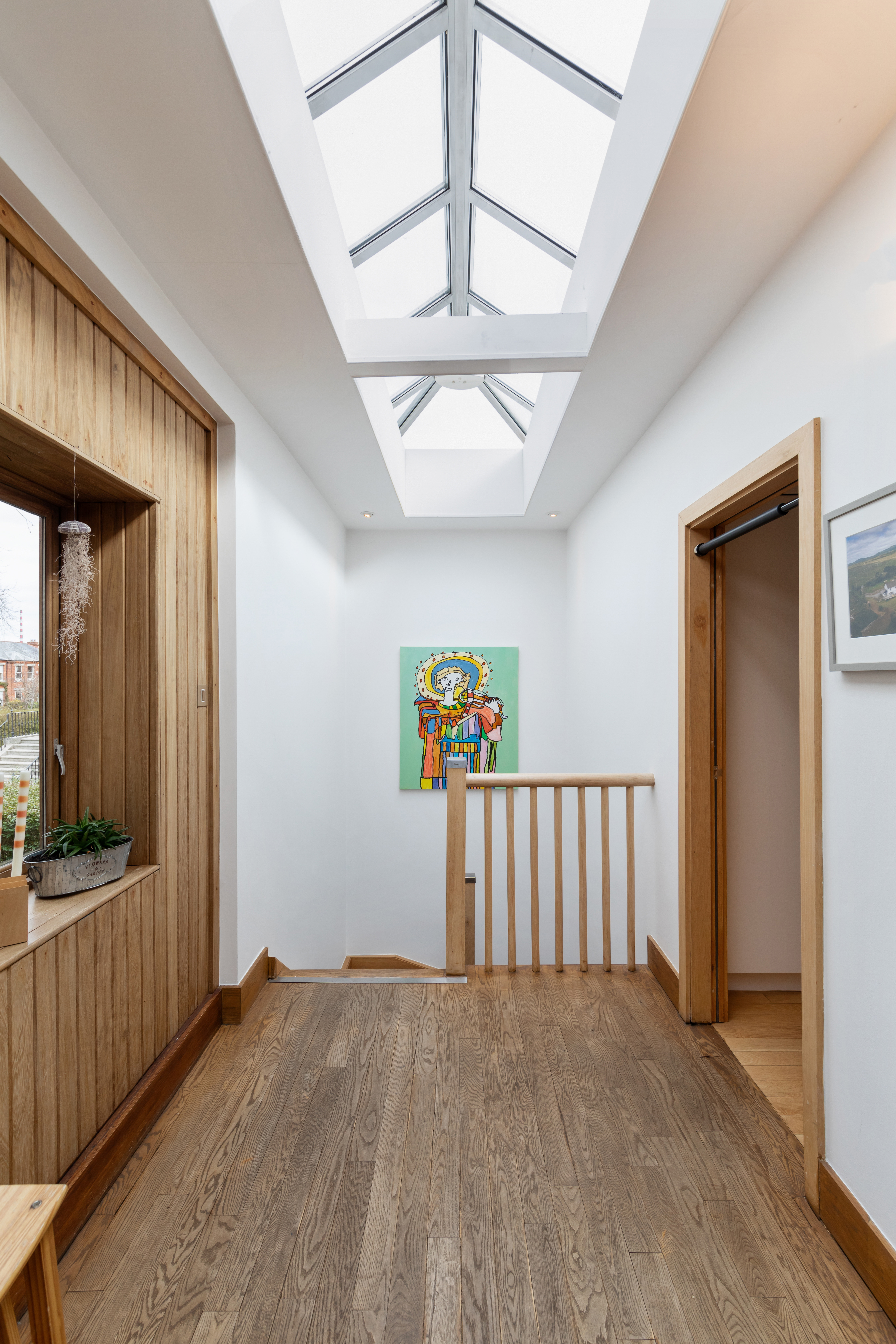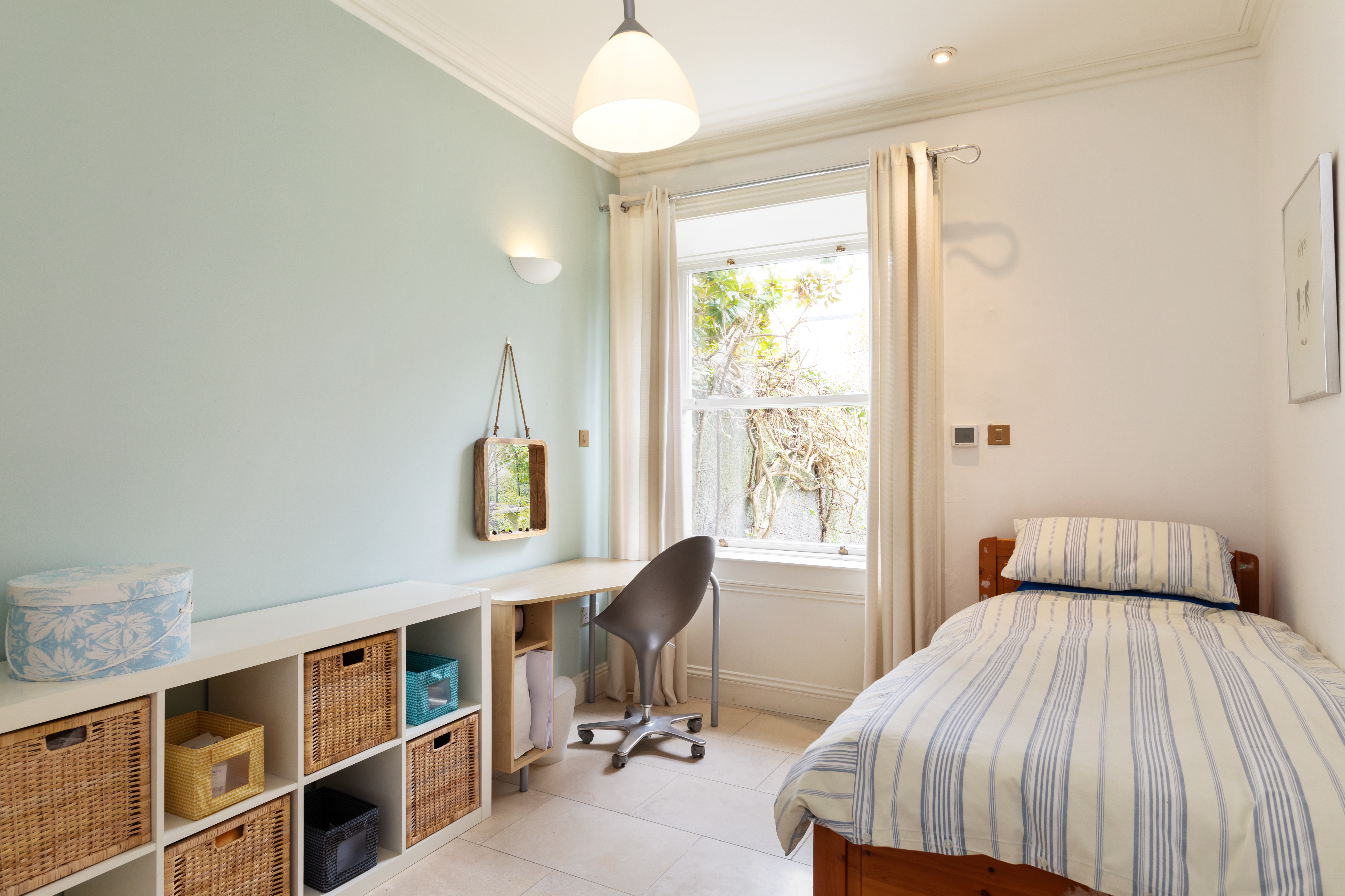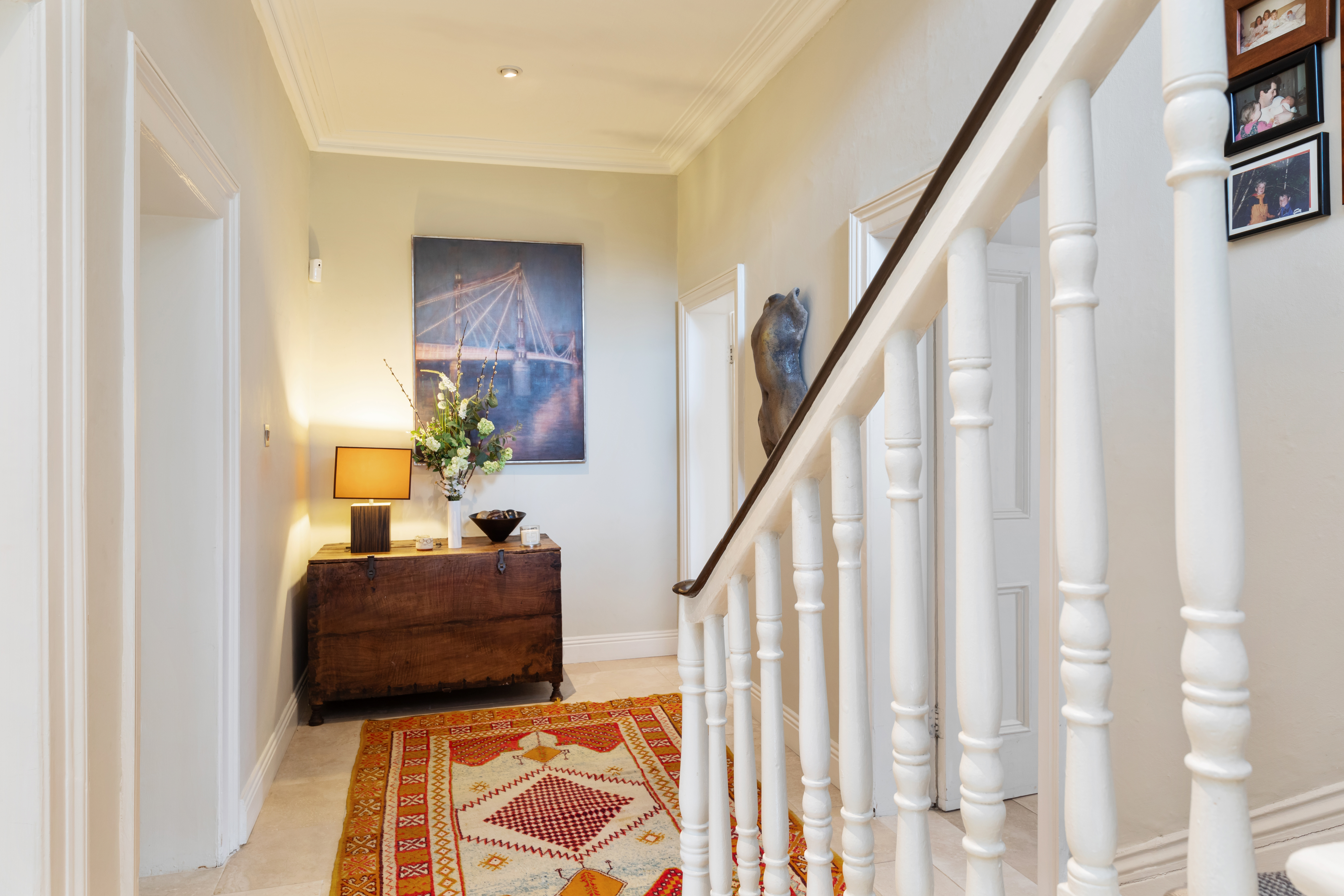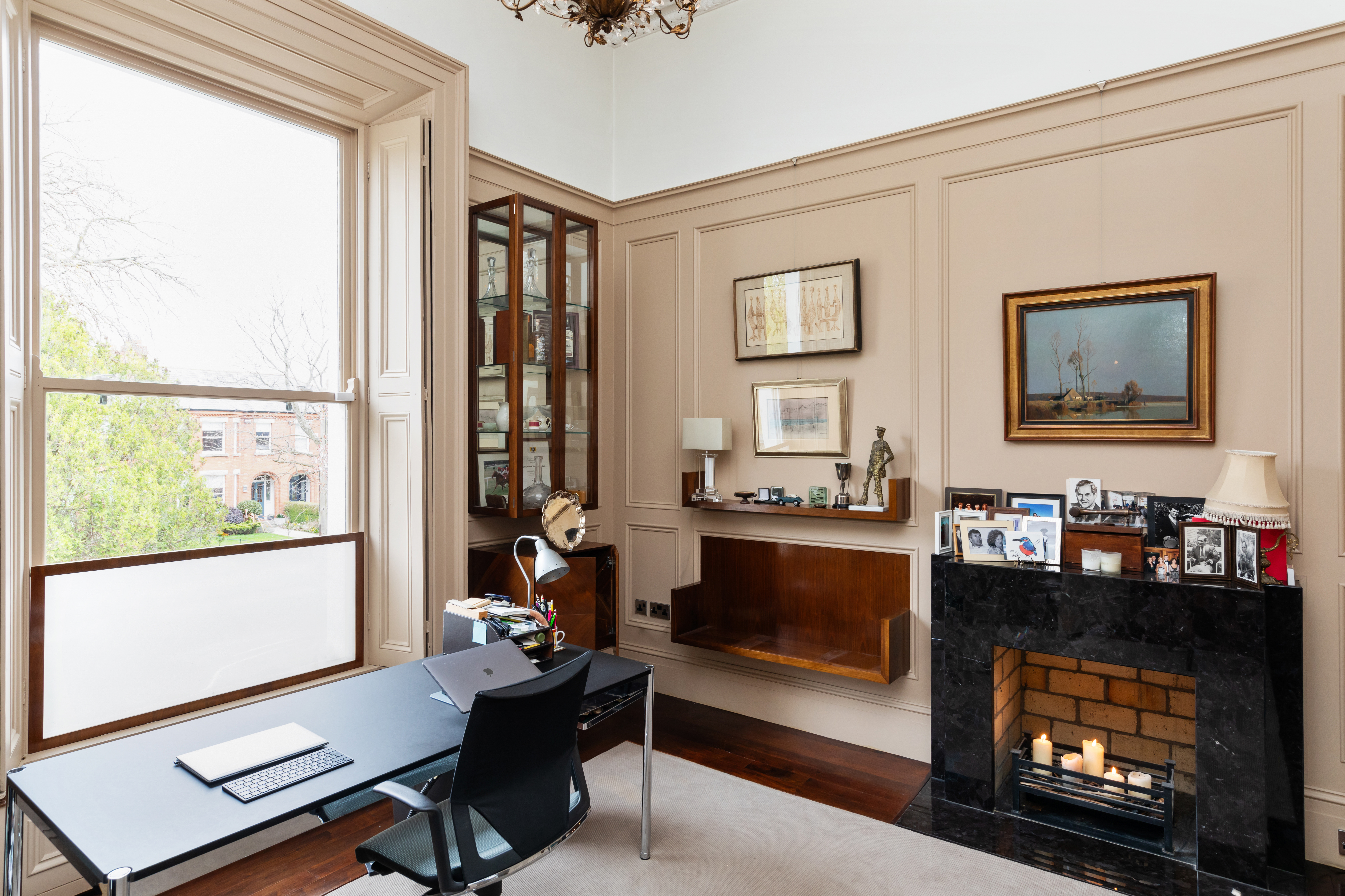 Quilligan Architects have blended period features with a striking two-story rear extension which connects seamlessly with the main house and provides a very substantial kitchen / breakfast room with large dual aspect picture windows taking full advantage of the sunny south facing rear aspect. This kitchen / breakfast room leads to a balcony with spiral stairs to the south facing rear garden.
