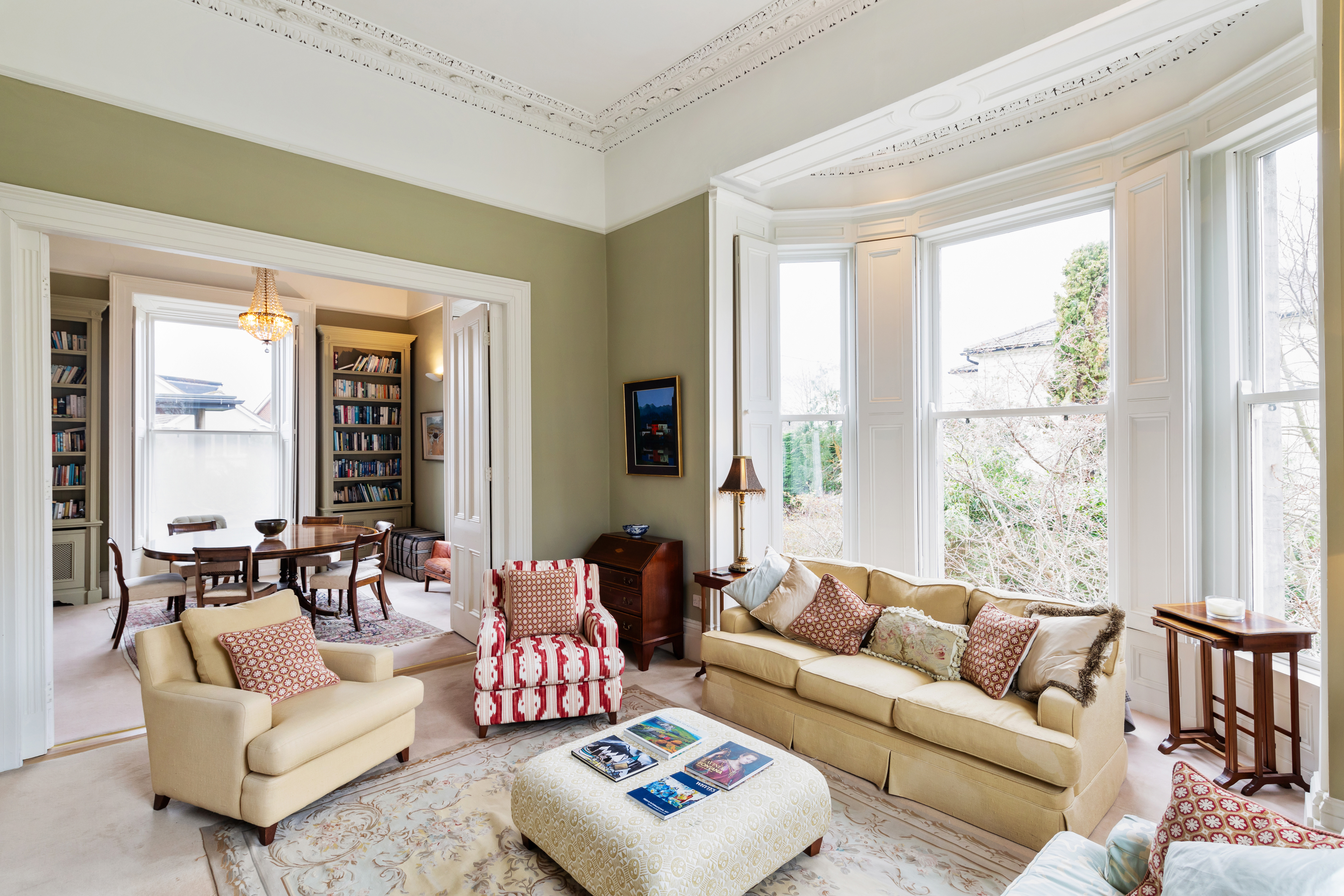 No. 24 is a substantial classical Regency villa built circa 1862. It is approached by sweeping steps with an embellished portico entrance. The property enjoys beautifully proportioned accommodation with many features of the era including high ceilings, intricate ceiling coving, center roses and marble fireplaces. The west facing bay window allows natural light to flood the triple aspect principal reception rooms.