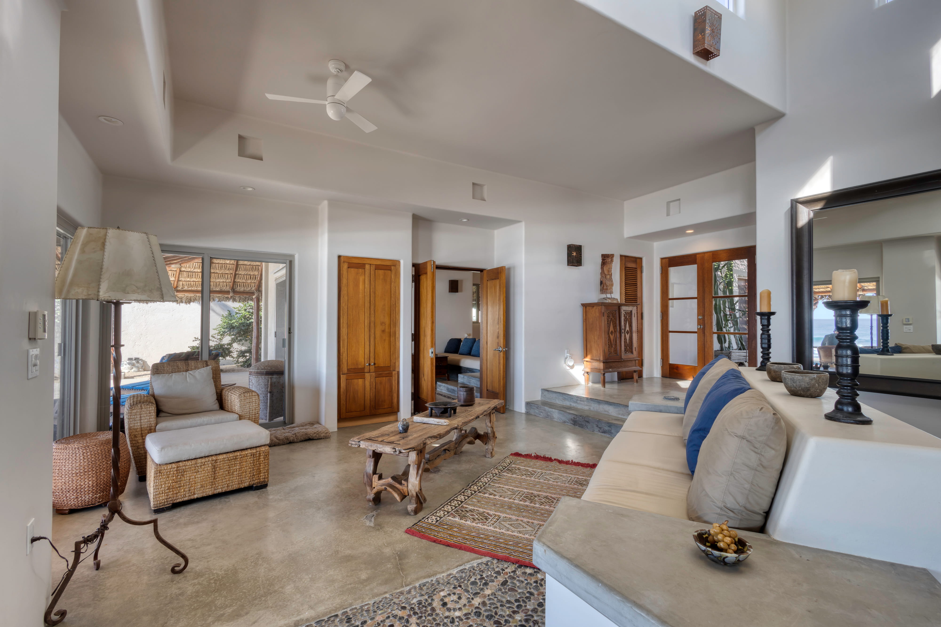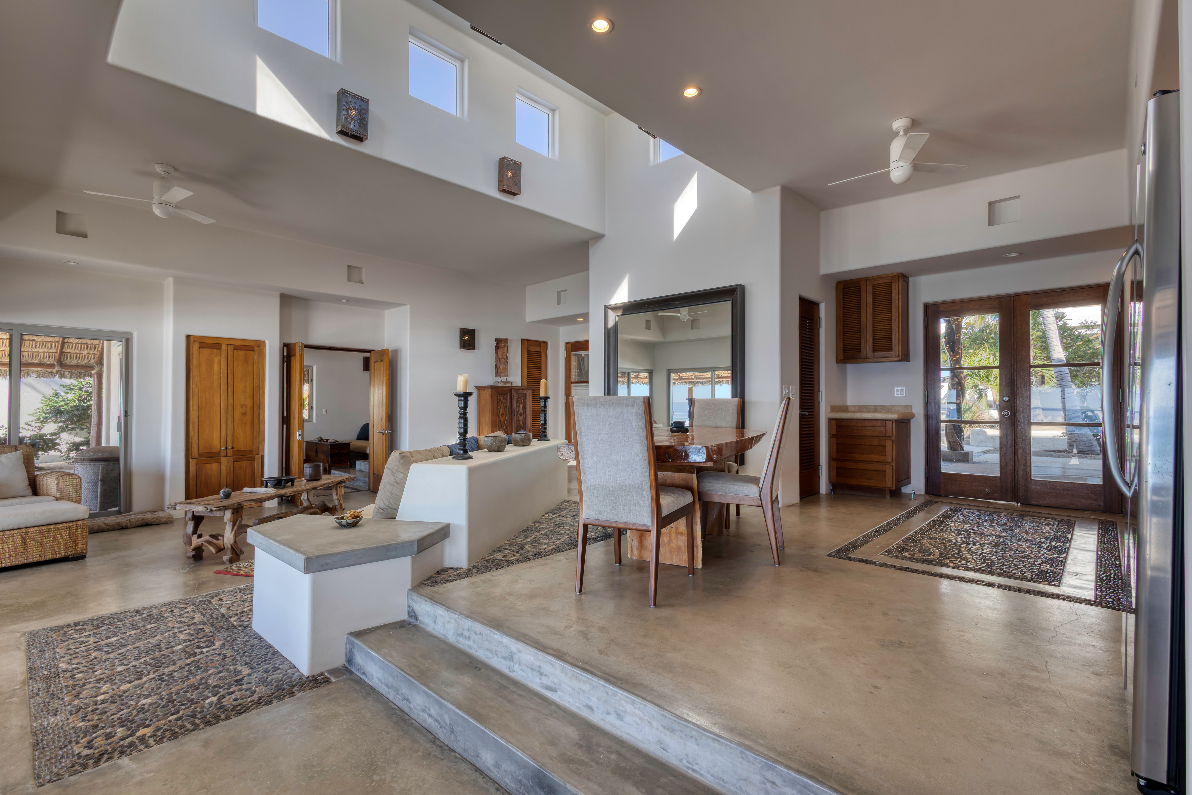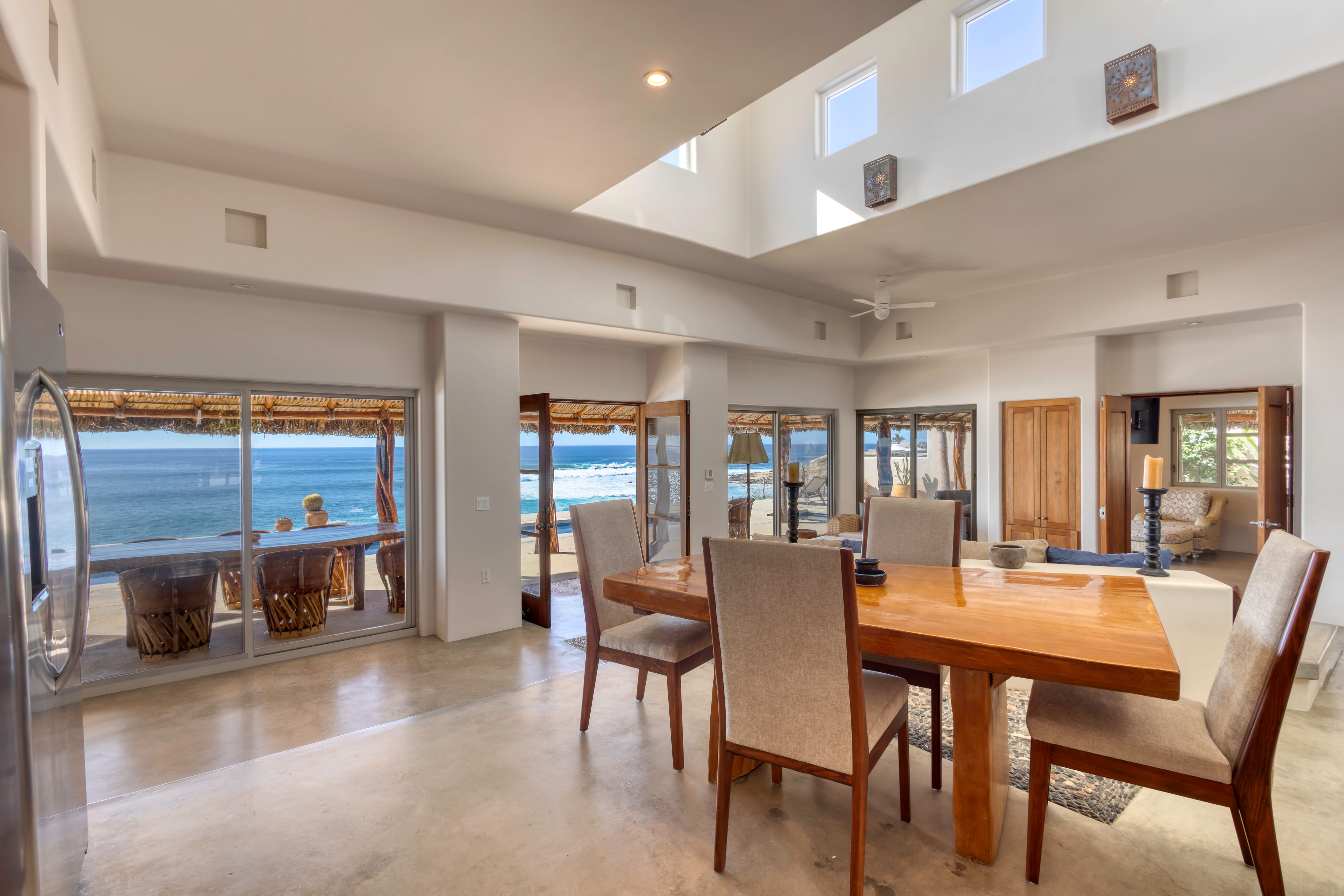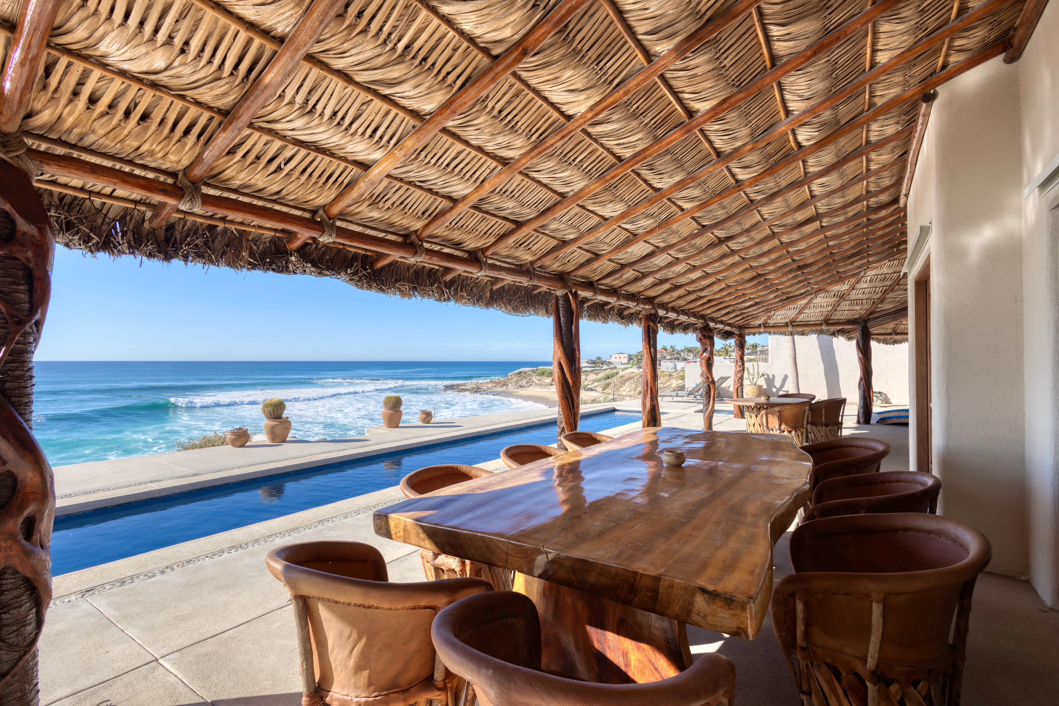 Located along the pristine beachfront of Zacatitos in the East Cape, this residence offers sweeping views of the Sea of Cortez and a peaceful setting along Baja’s untouched coastline. Set on a one-acre beachfront homesite, the property provides exceptional privacy and space. The home features four bedrooms, including three with ocean views, three and one-half bathrooms, and a dedicated office. A covered three-car garage and solar panels support a self-sufficient, off-grid lifestyle. Designed for indoor–outdoor living, the property includes a pool, jacuzzi, and grill area overlooking the sea, with additional space for a garden or orchard. An excellent opportunity to own a private beachfront residence in one of the East Cape’s most authentic coastal areas.