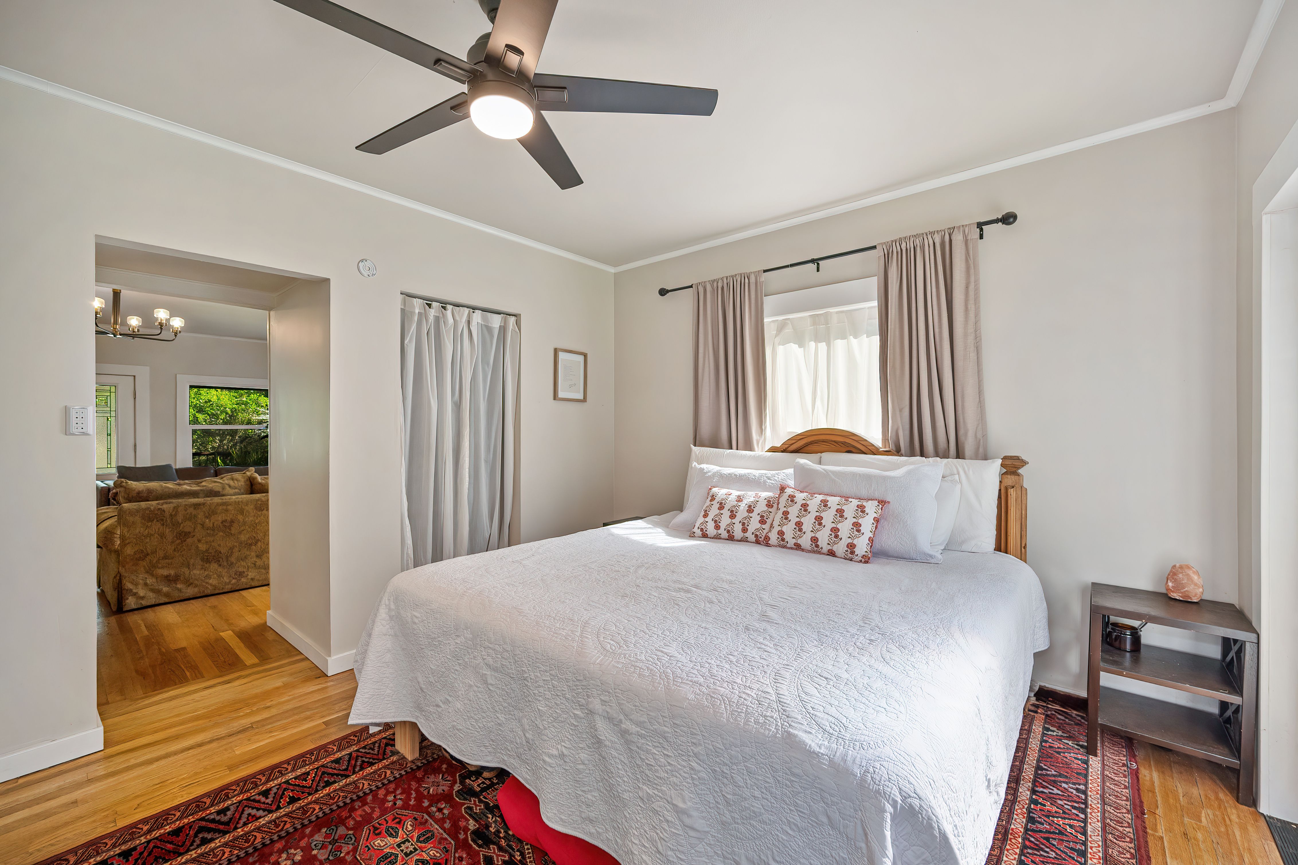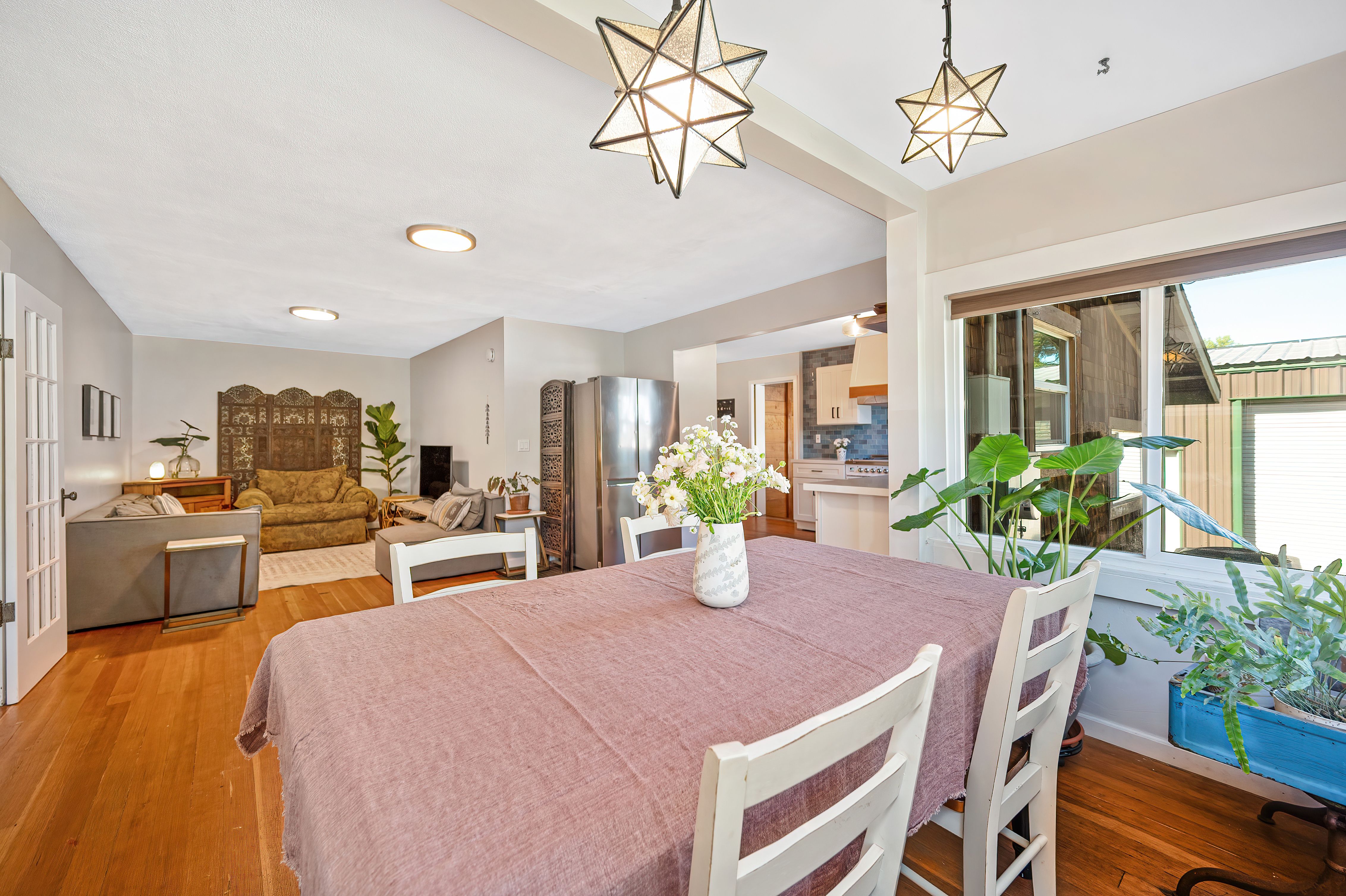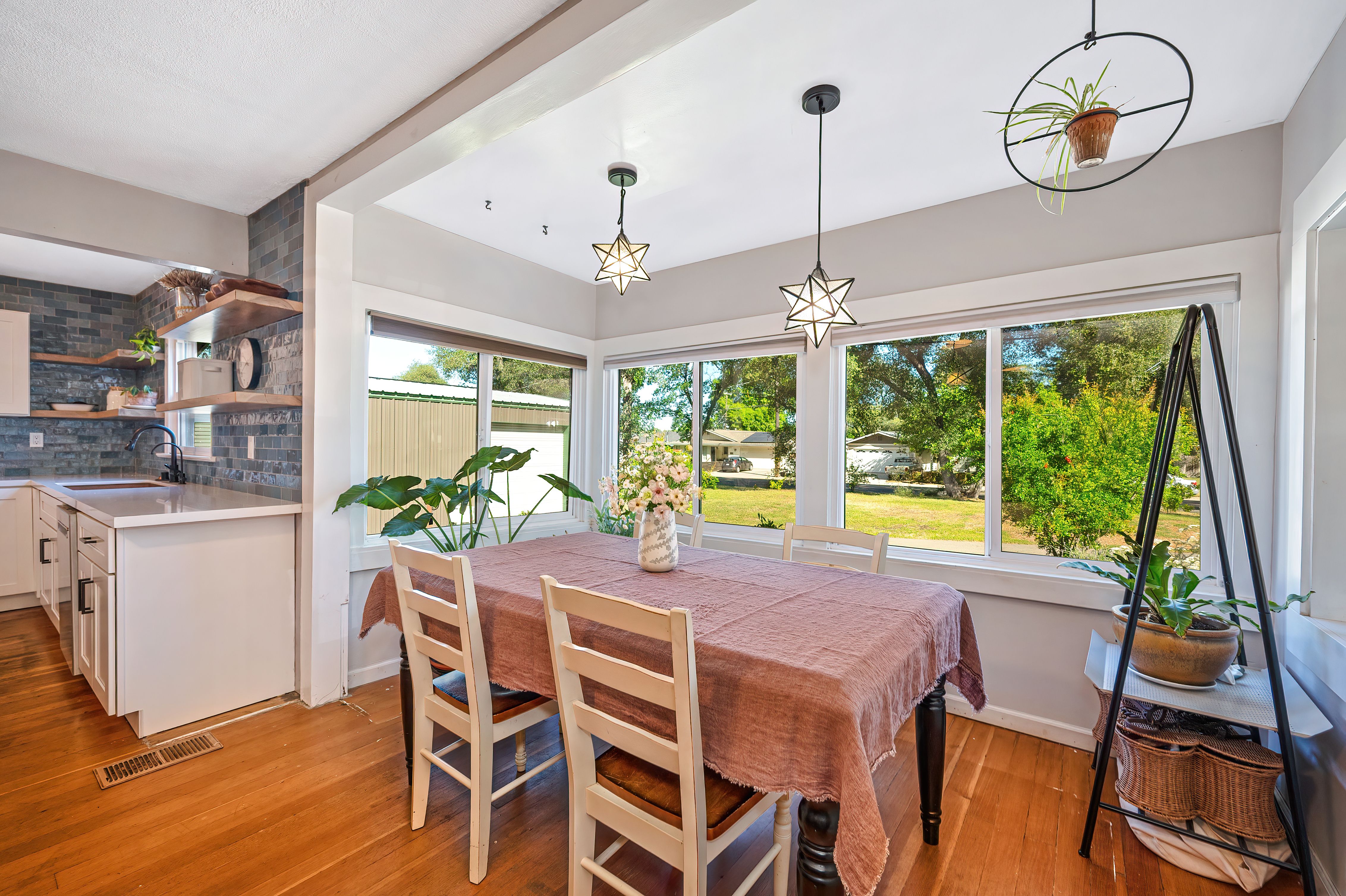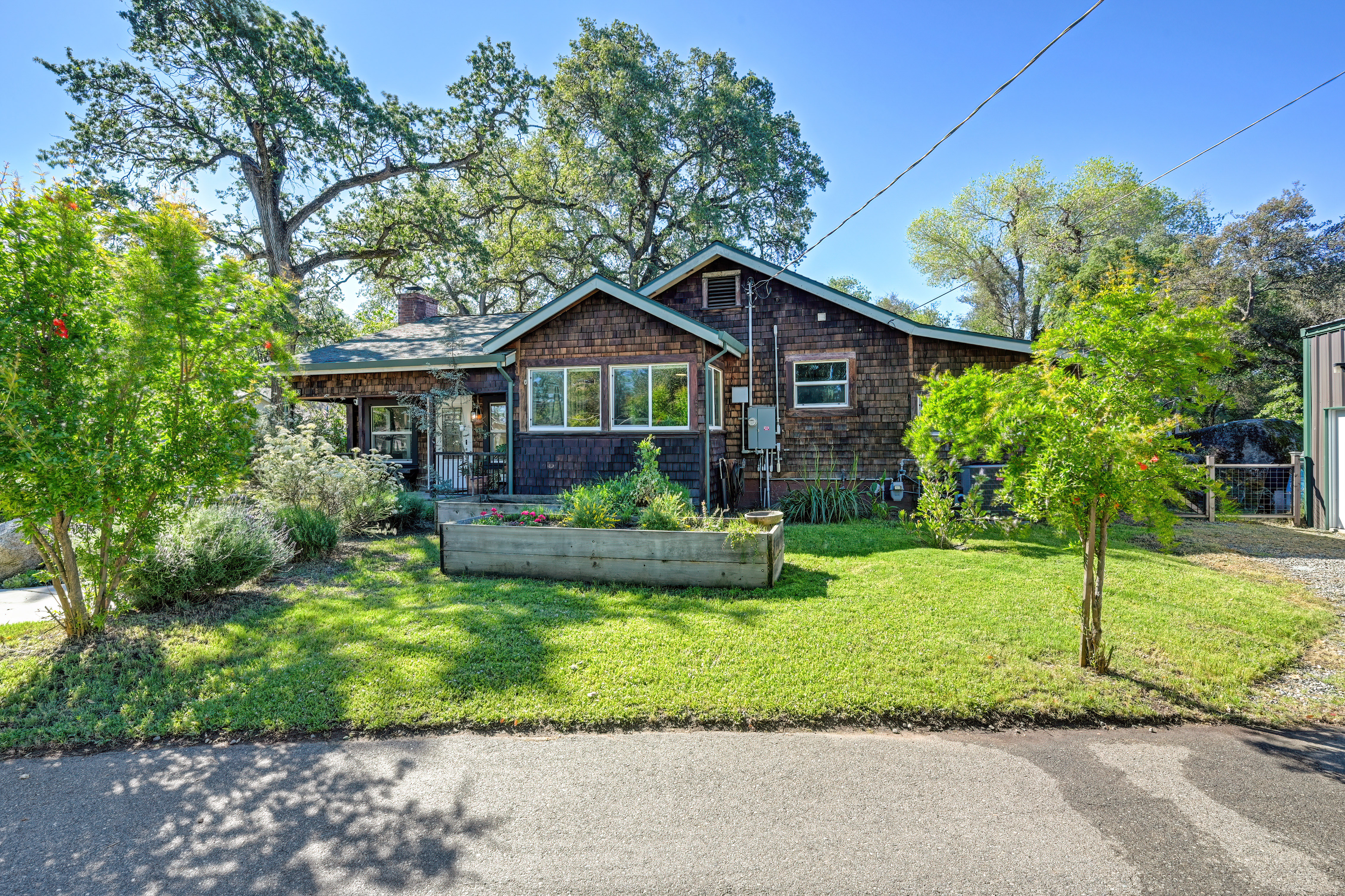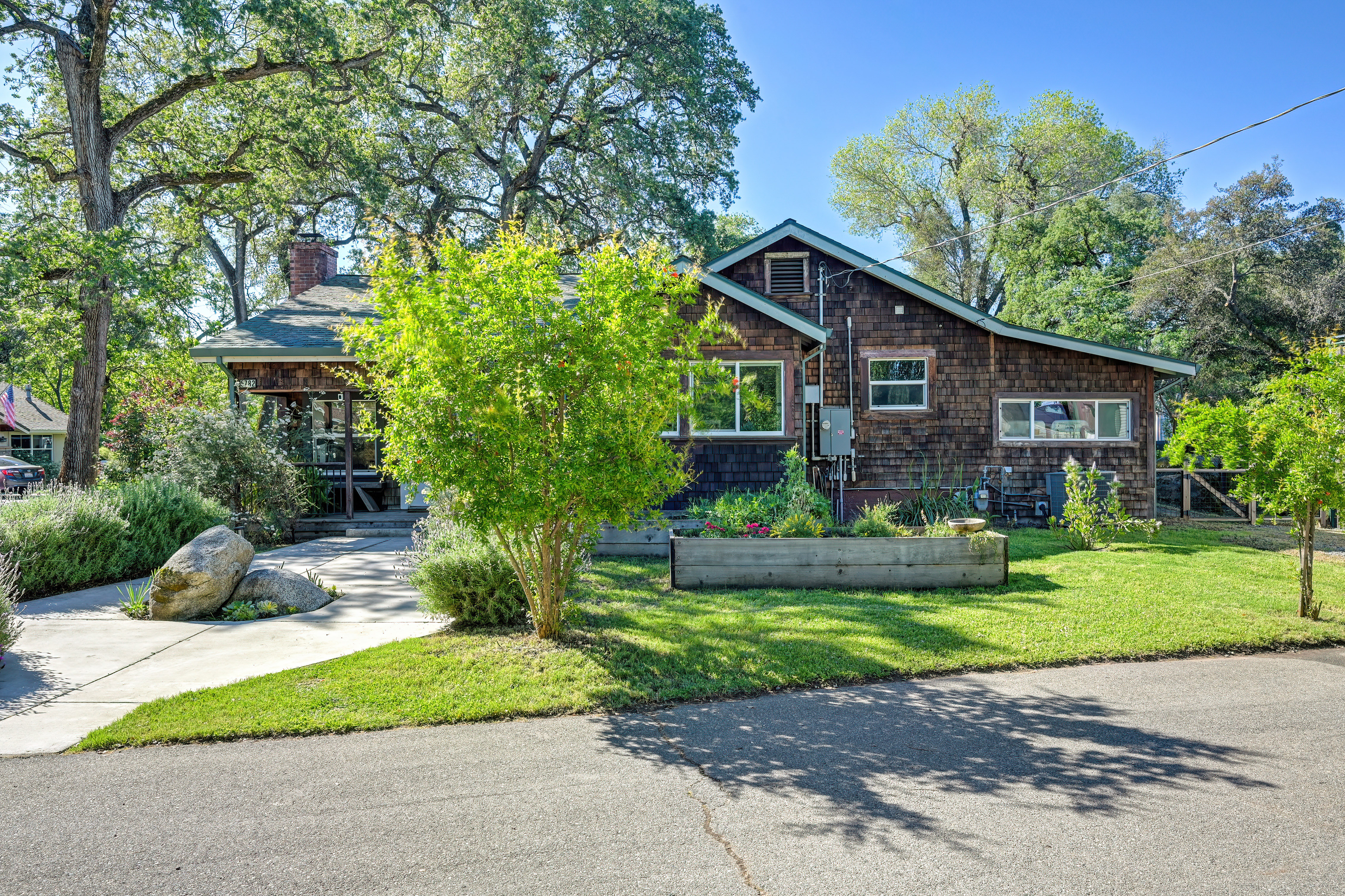 Charming 1930s California bungalow located in the heart of Loomis on a spacious lot with fenced yard. This unique property offers 3-4 bedrooms and 2 full bathrooms, blending vintage character with thoughtful updates including remodeled kitchen with quartzite countertops, ILVE range, remodeled baths, newer windows, updated electrical, and fresh interior paint. Original wood floors and a cozy brick fireplace highlight the home's warmth, while distinctive features like granite rock outcroppings and a laundry room built around a natural boulder add to its one-of-a-kind appeal. The property includes an owned solar system servicing both the home and the impressive 50'x 30' insulated shop, complete with a snow-rated roof, two 12-foot roll-up doors. Additional features include a walk-in basement for storage, 1" PCWA irrigation water (metered), multiple fruit trees including nectarine, peach, cherry, lemon, pomegranate and plum, raised garden beds, and a large chicken coop. With plenty of space for gardening, hobbies, or expansion, this property offers incredible versatility in a highly desirable location near downtown Loomis and close proximity to H. Clarke Powers & Del Oro schools.