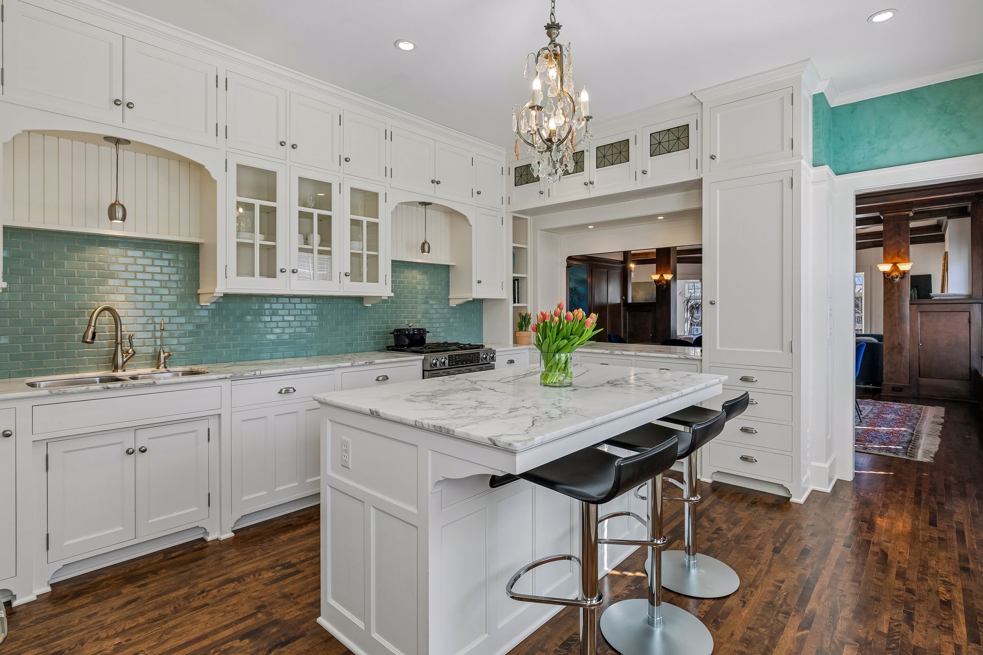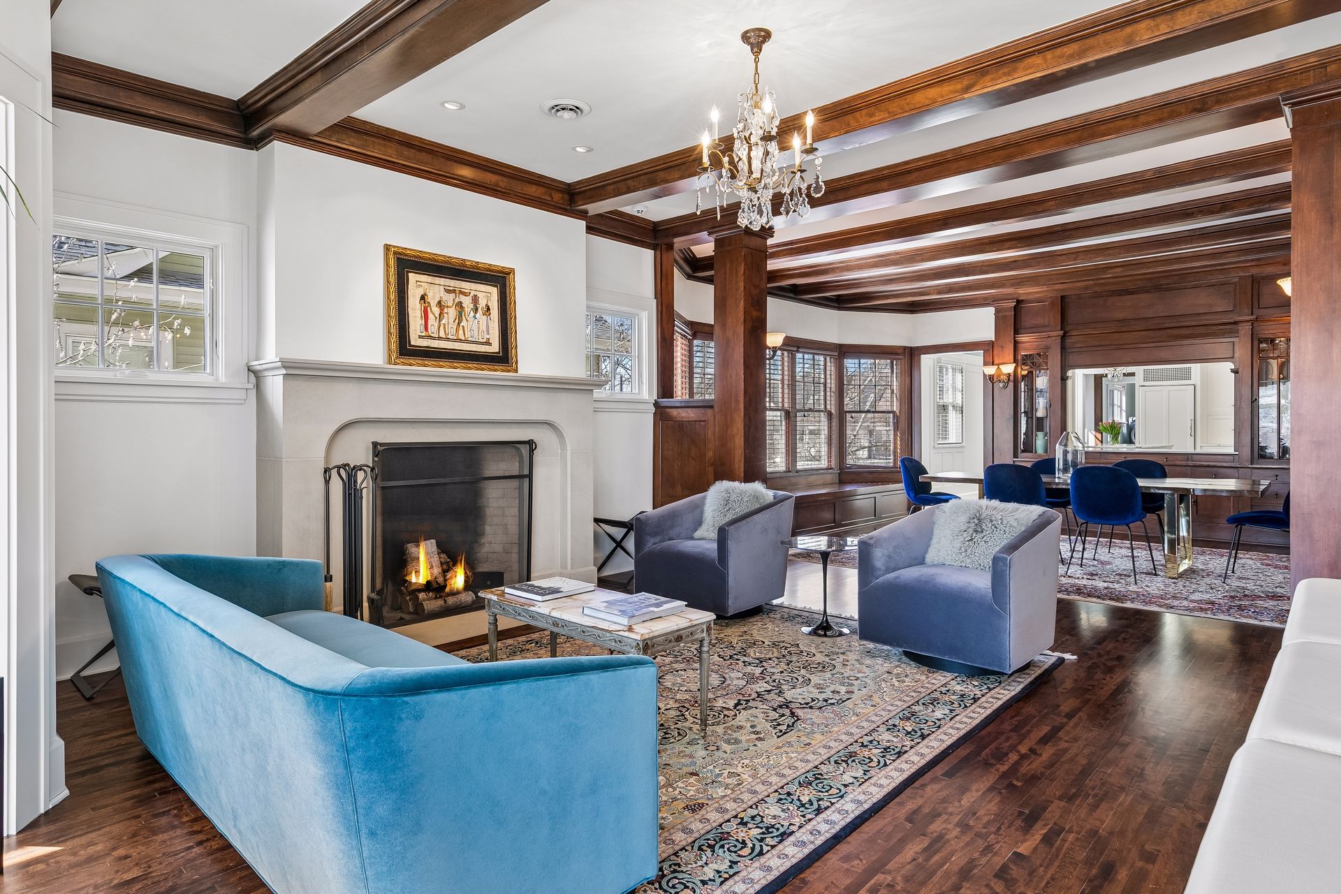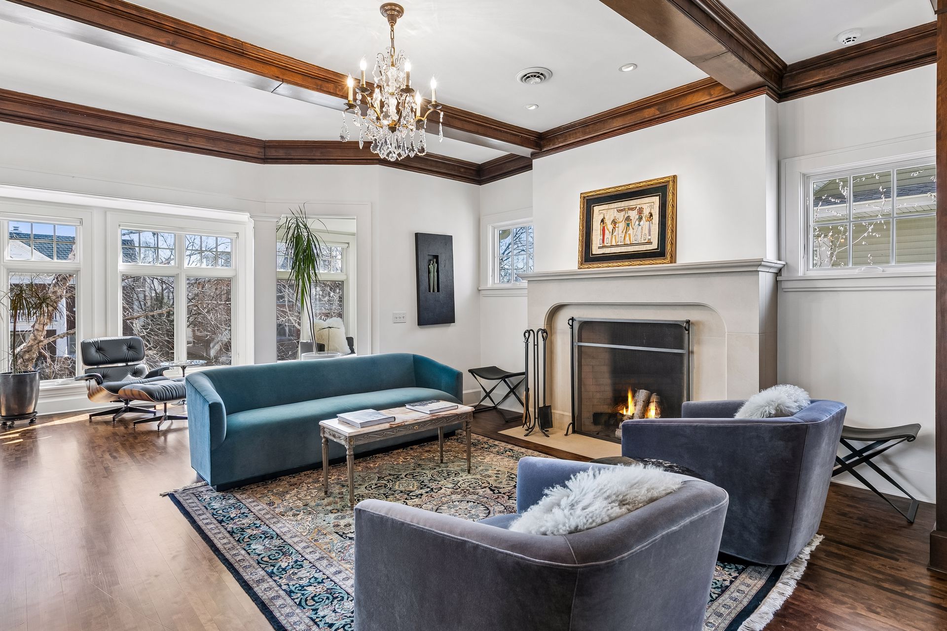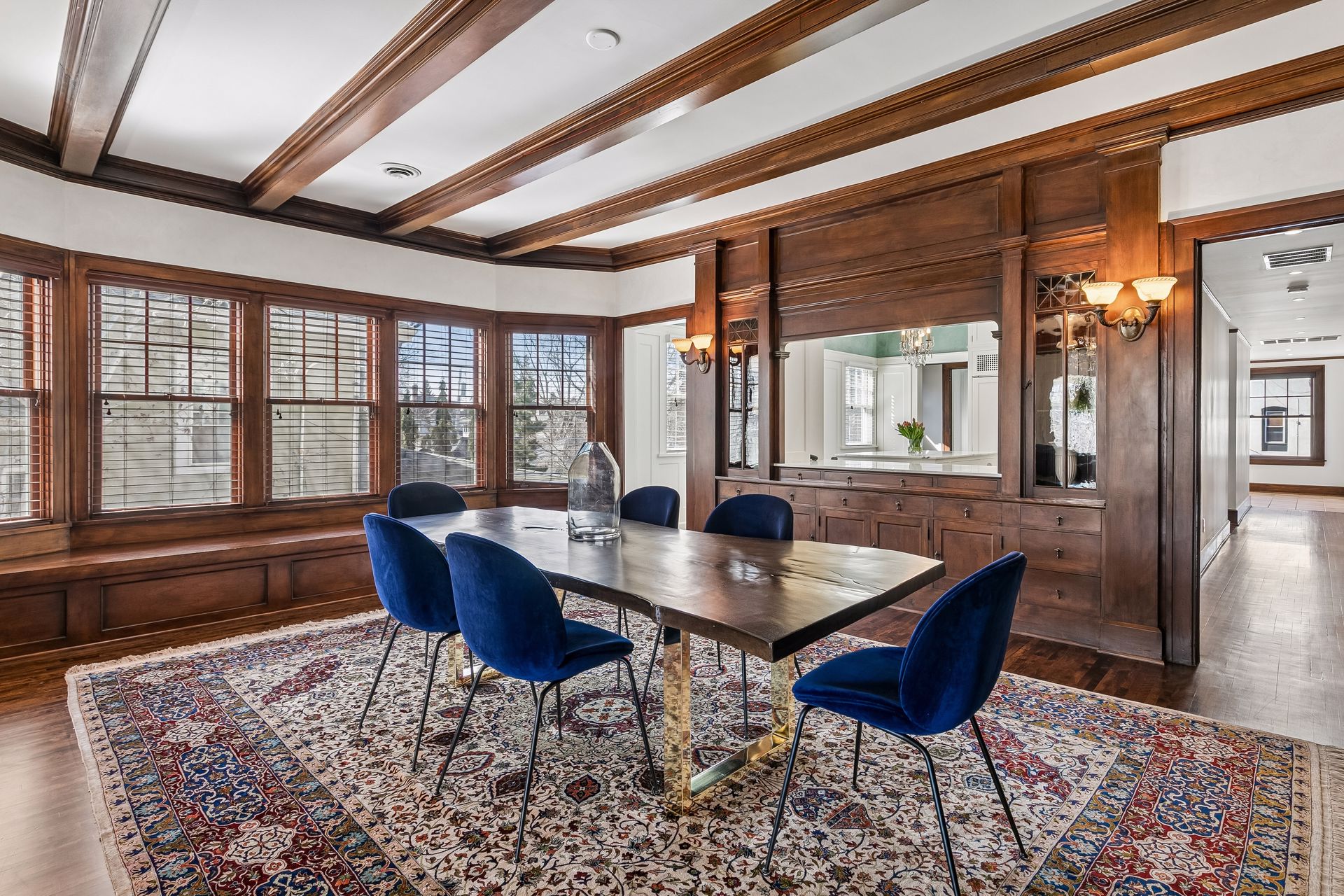 Remodeled four-bedroom + den condo in the desirable East Isles neighborhood. The property features attractive curb appeal, an updated arched entrance, and a modern front door surrounded by well-maintained landscaping, seasonal flowers, and mature canopy trees. Welch Forsman Associates completed renovations that emphasize modern design elements, integrating them thoughtfully with turn-of-the-century charm and craftsmanship to produce attractive, practical living spaces throughout the property. The expansive living room includes an adjacent sunroom, distinguished by a wall of windows allowing for an abundance of natural light to pour through. Elegant wood beams accentuate the high ceilings, seamlessly integrating with the built-in dining room buffet. The kitchen, illuminated by natural light, offers generous cabinet storage, a central island, and an elegant tile backsplash. The main floor features in-unit laundry, three bedrooms and a den, complemented by primary suites on both the main and upper levels. The upper-level ensuite serves as a private retreat, offering two balconies, a sitting room, several walk-in closets, and a bathroom equipped with a soaking tub and walk-in shower. Ample storage in the lower level and attached garage. A short distance to all that Lake of Isles has to offer.