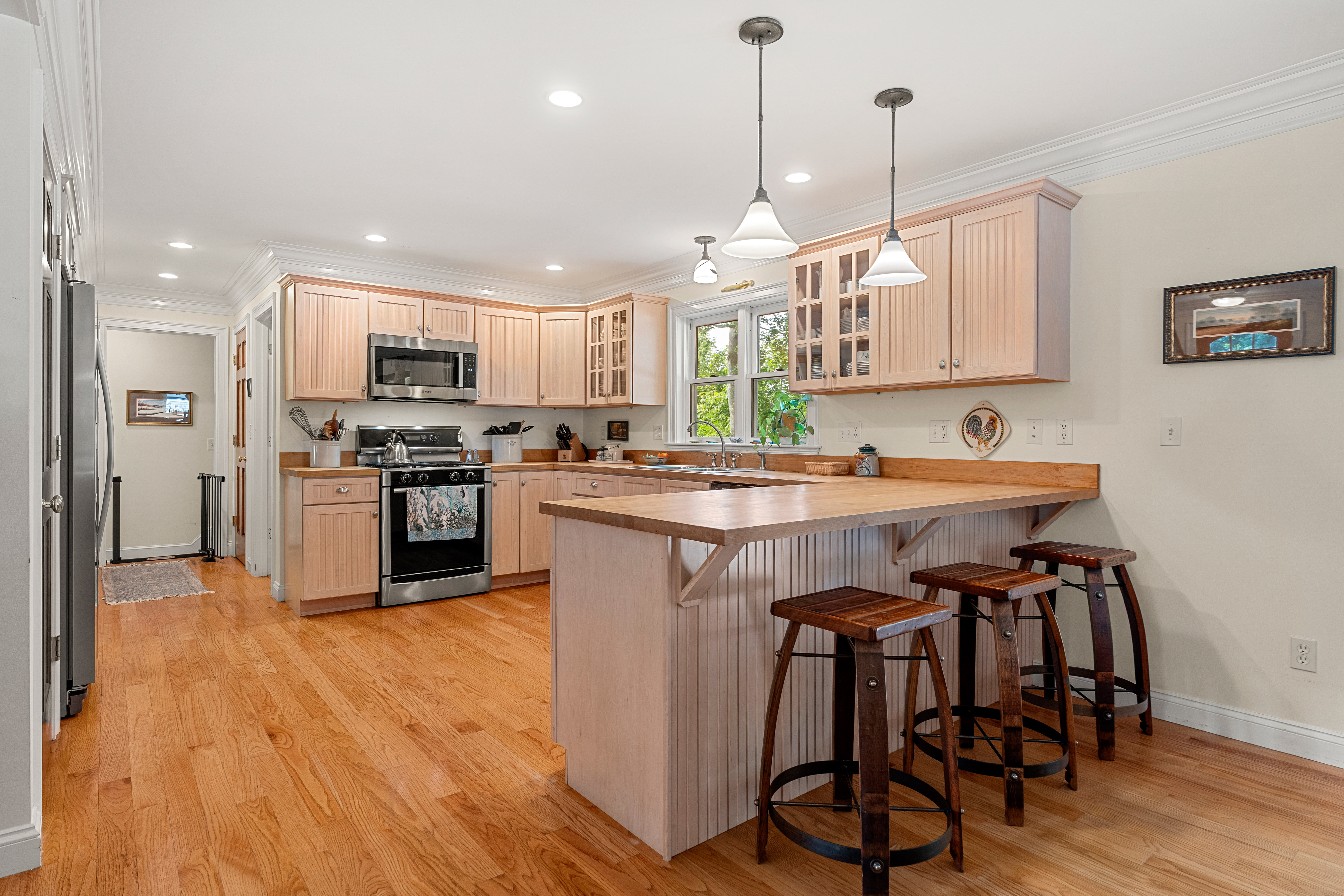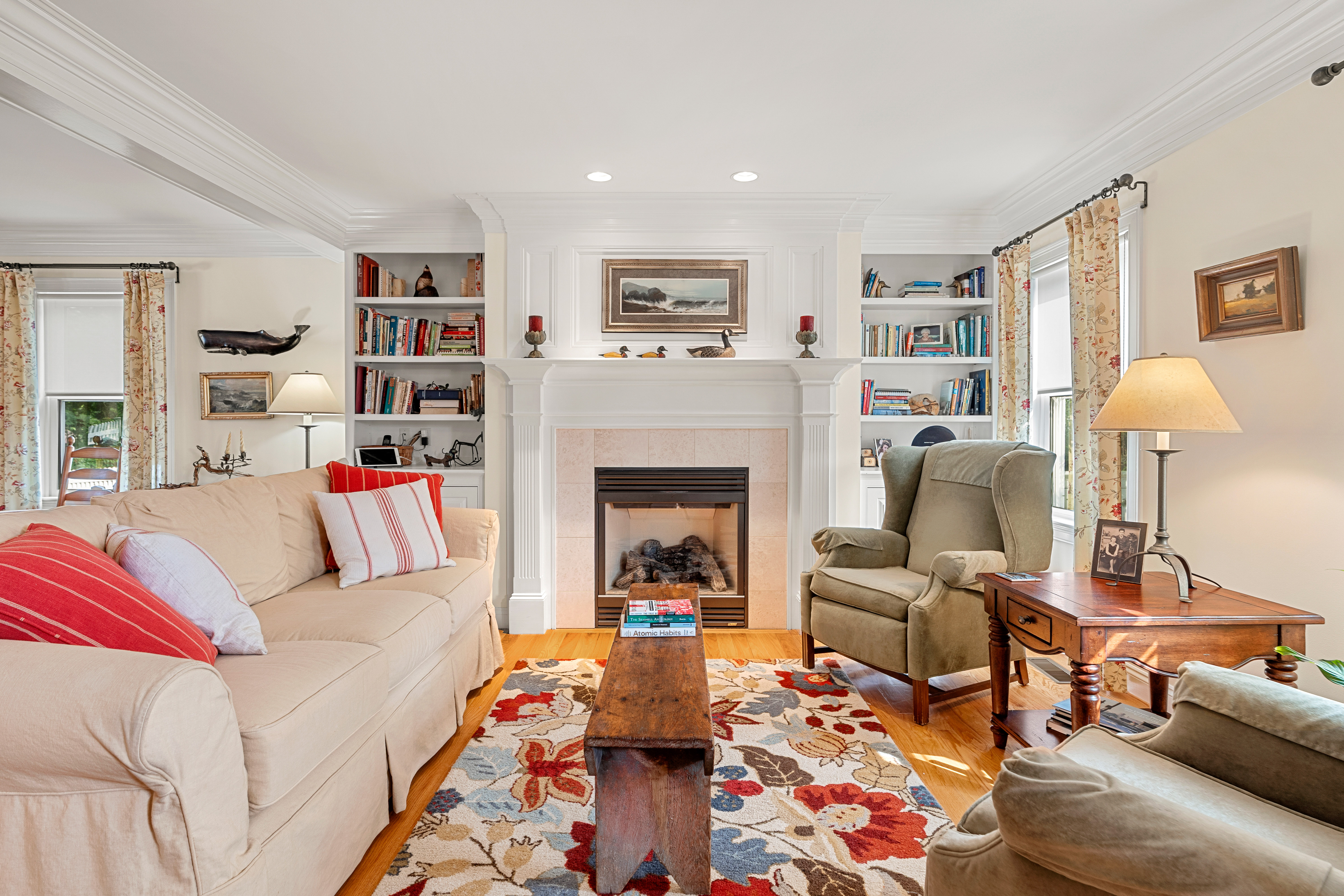 This is not your average Colonial. Immaculate, beautifully cared for, this home sits on a peaceful side street, minutes from commuter routes, downtown Amesbury, vibrant shops & restaurants, and miles of scenic walking and biking trails. Step inside to an inviting open-concept first floor, where hardwood floors, custom millwork, thoughtful built-ins, and a cozy gas fireplace create warm, elegant living spaces. The layout flows seamlessly to an oversized deck overlooking a private backyard—perfect for summer dinners, quiet mornings, and effortless entertaining. A major highlight: the garage addition, completed just six years ago, features a stunning family room with shiplap accents, hardwood floors, and ample storage—an ideal hangout or relaxation space. Outside, the fenced and beautifully landscaped yard offers room to play, garden, and unwind, complete with a charming shed. The lower level provides an extra 234 sq. ft. bonus room, giving you even more flexibility for a gym or playroom.