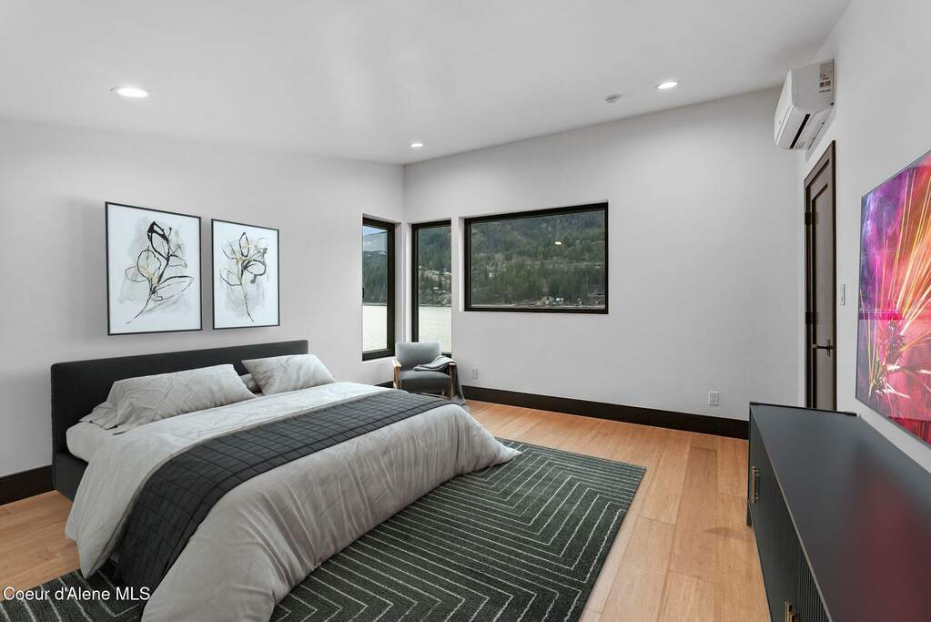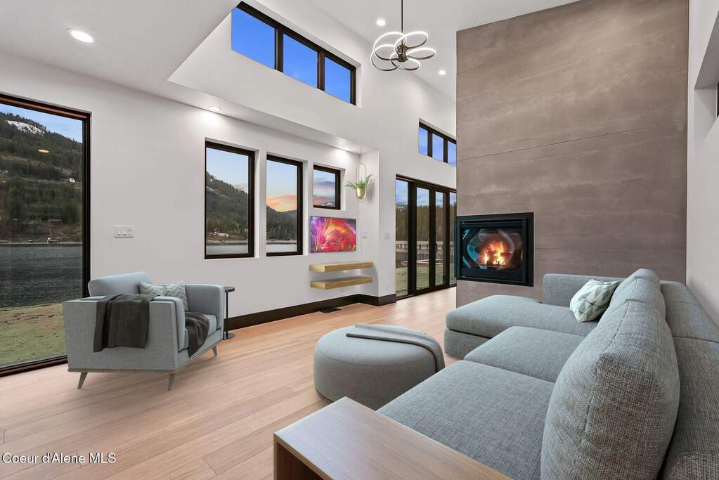 Custom built, contemporary NEW construction waterfront home located in beautiful Garfield Bay on North Idaho's famous Lake Pend Oreille! Incredible .35 acre lot with 140' of level low bank, private shoreline with mesmerizing panoramic mountain views of the Green Monarch Mtn Range! Garfield Bay is coveted for its deep water, making the bay perfect for year-round lake access and fishing. This home is perched right on the water's edge! Enjoy the simplicity of owning a brand new, high quality, ultra efficient, low maintenance luxury home. The home has been designed with intentional living in mind, taking advantage of a conditioned square footage of 1424 sqft with an additional 320 sqft of garage space and 270 sqft of covered outdoor space.
