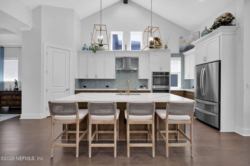 This time next month your biggest decision could be,: pool or lounge chair? This is your opportunity to step into the lowest priced pool home in nearly sold-out Coral Ridge! Offering 3,373 sq ft all on one level, this versatile floorplan truly works for everyone. Featuring 4 bedrooms, 3 full baths, 2 half baths (including a pool bath), plus a private study, dining room, a spacious retreat perfect for a media room + a FOUR car tandem garage! Step outside to a private oasis: a screened lanai with a heated saltwater pool & beautiful travertine decking, ideal for relaxing or entertaining. Enjoy the peaceful preserve view. Inside, you'll find soaring ceilings & stunning upgrades throughout, highlighted by a custom one of kind fireplace feature wall that truly makes a statement. Built less than 2 years ago, this home offers all the benefits of new construction without waiting. No pool building hassle, no need to make any changes or updates. Just move in & enjoy Florida living this summer! Coral Ridge at Seabrook is a gated community in Ponte Vedra with 182 homesites--some of the largest you'll find in the Seabrook area. It has a quiet, tucked-away feel while still being close to everything. Within the neighborhood, you'll find green space and a playground, and you're just a quick golf cart or bike ride to Seabrook Park, which offers a pool, dog park, and more. With limited inventory and strong demand, homes in Coral Ridge don't come available often--and when they do, they go quickly. Award-winning Nocatee community offers multiple parks, miles of scenic nature trails, kayak/paddleboard access at the Intracoastal Waterway, pickleball and tennis courts, basketball courts, playgrounds, splash parks, and the popular Waterpark & Spraygrounds. Residents also enjoy year-round community events, local shops and dining at Nocatee Town Center, and close proximity to A-rated schools.