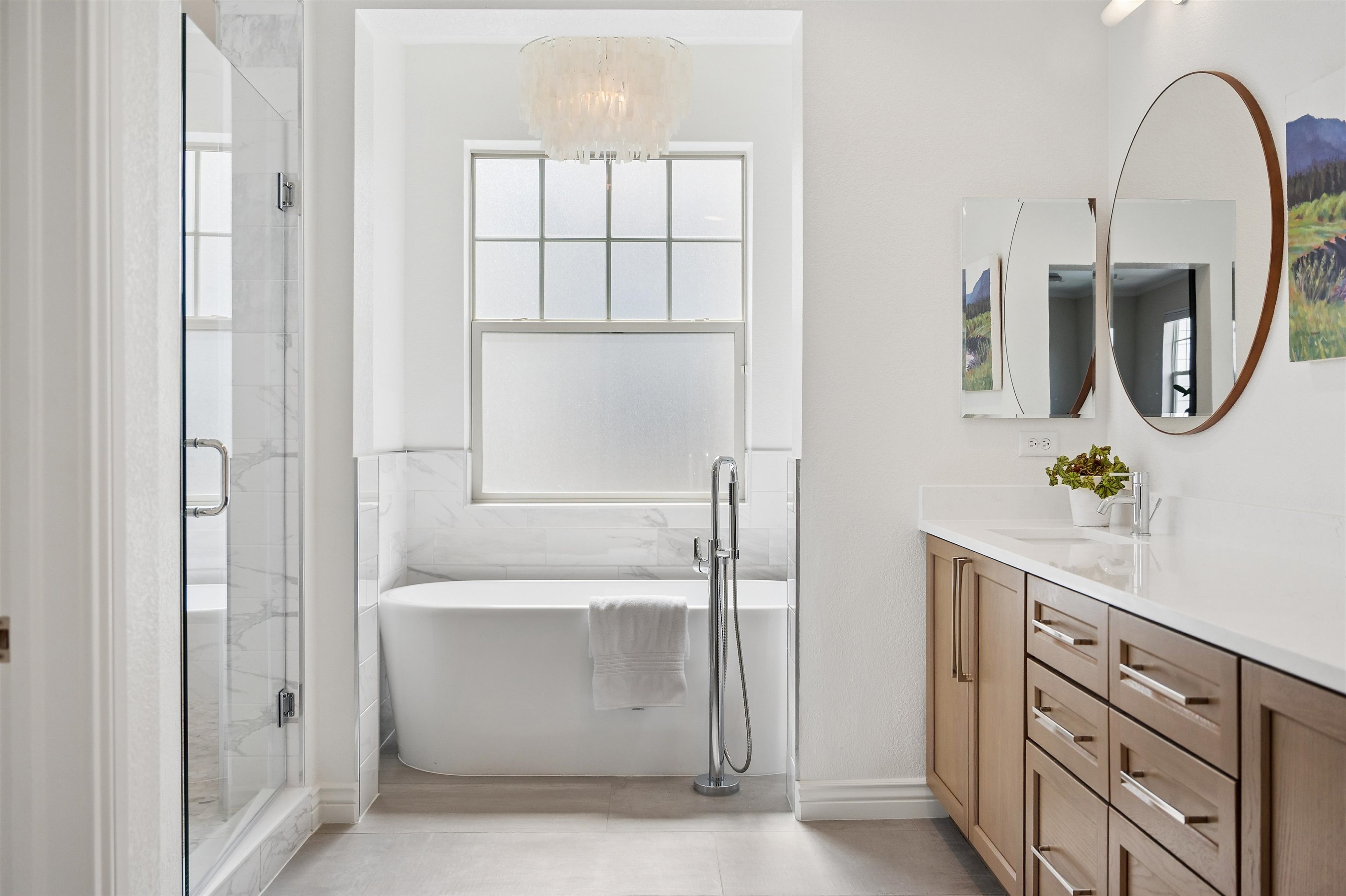 Thoughtfully updated and ideally located in Denver’s Central Park neighborhood, this John Laing paired home offers a refined, low-maintenance lifestyle with access to some of the area’s most sought-after amenities. Positioned on a quiet courtyard with mature perennial gardens, the home balances privacy with convenience to 29th Avenue Town Center, Central Park recreation facilities, and nearby dining and retail.The interior has been recently updated with a cohesive, modern aesthetic. The kitchen features quartz countertops, a center island, Spanish tile backsplash, and new cabinetry, opening to comfortable dining space and living space anchored by a gorgeous marble tile fireplace. Upstairs, the primary suite offers generous proportions and a remodeled, spa-like bath with soaking tub, walk-in double head shower, and walk-in closet. An additional en-suite bedroom, lofted living area suitable for office or media use, and laundry complete the upper level. The finished basement expands flexibility with a third bedroom, full bath, and an additional room well-suited for a gym, workspace, or guest overflow. Additional features include a two-car attached garage with EV charger and low-maintenance outdoor living within a private courtyard setting. With convenient access to Stanley Marketplace, Eastbridge, Central Park Rec Center and 29th Avenue Town Center, bike trails, light rail to Union Station and Denver International Airport, and a short commute to Anschutz Medical Campus, this home is well-positioned for both daily living and travel. Designed for ease, comfort, and connection, this is Central Park living at its most practical and polished.