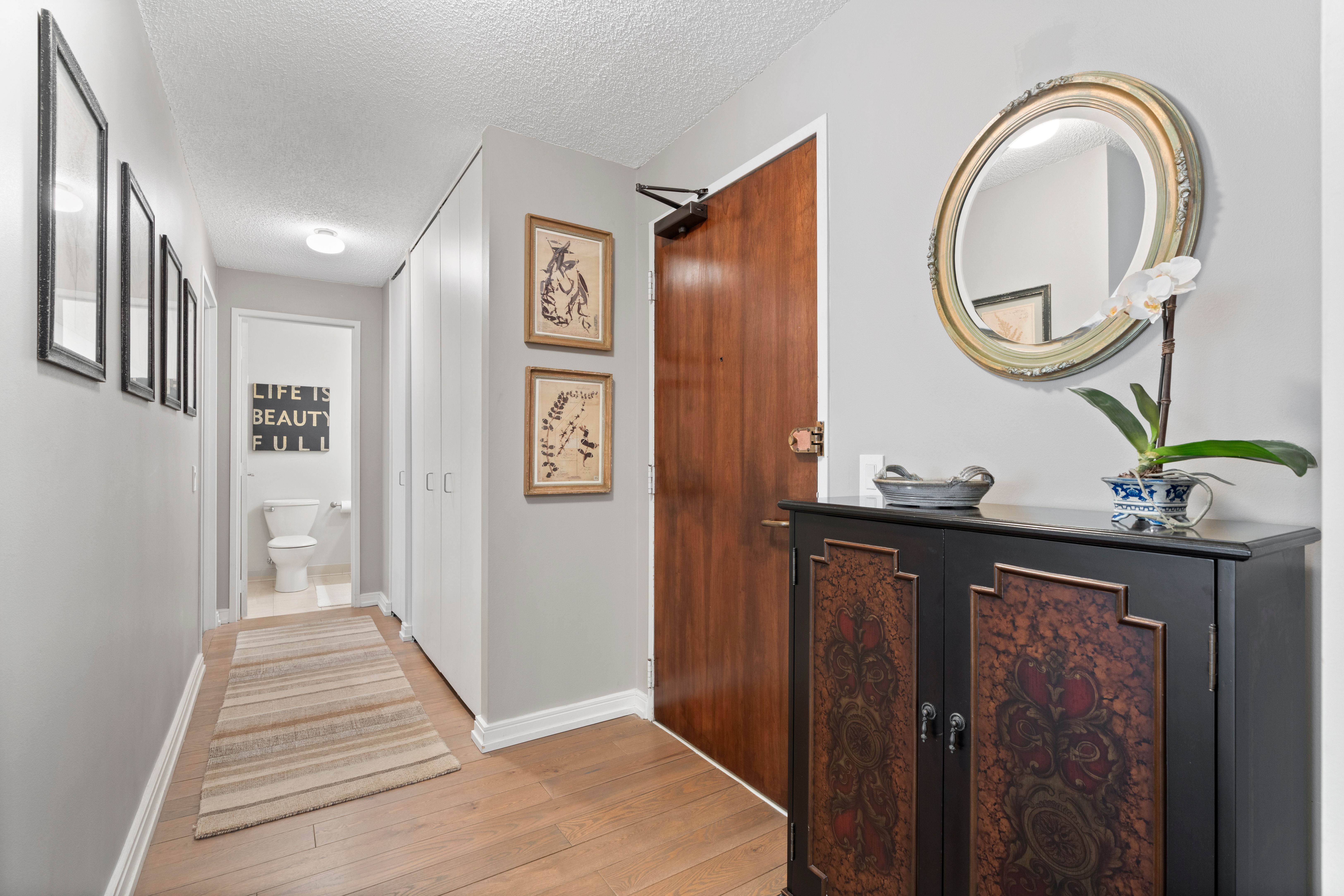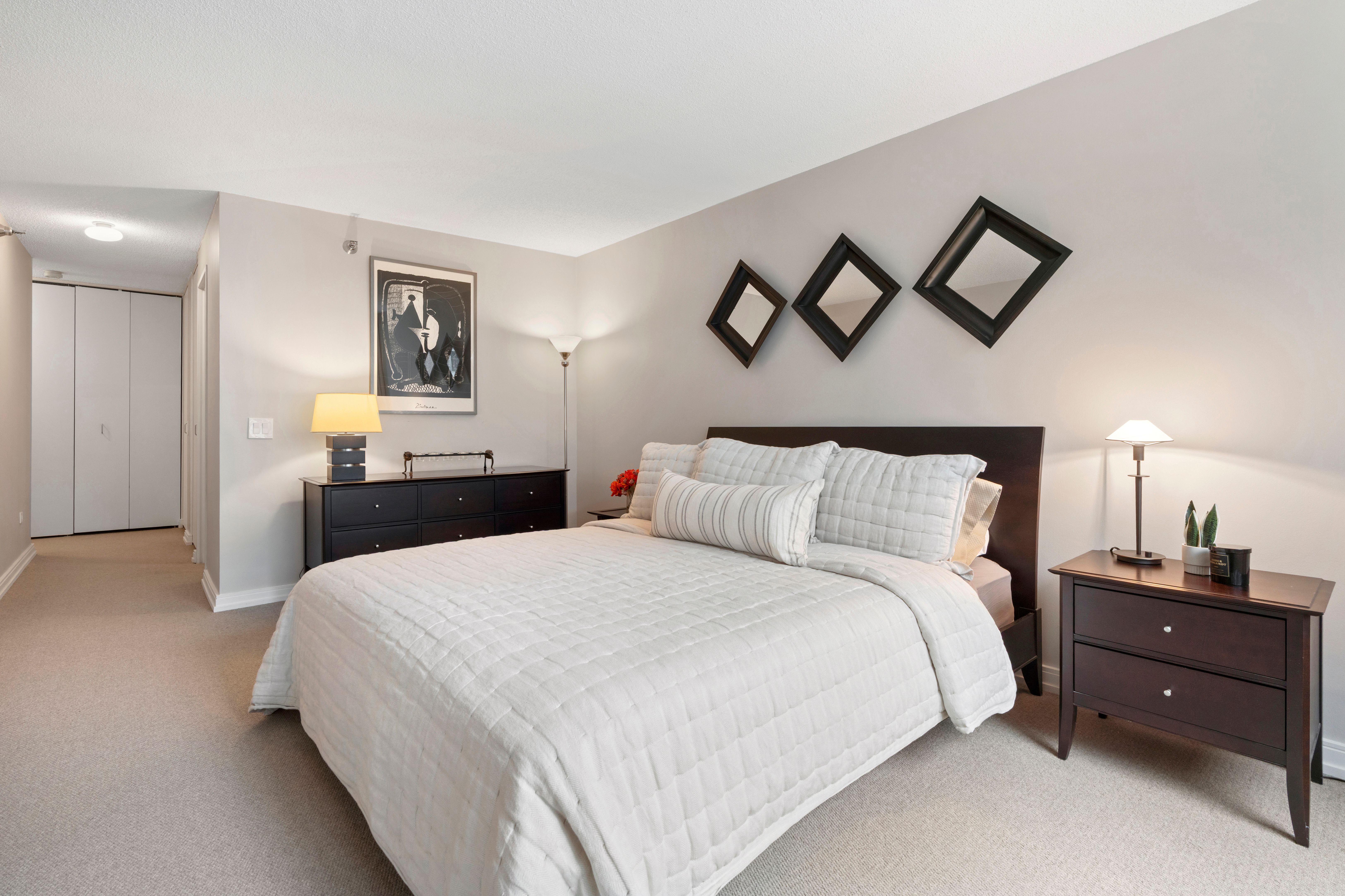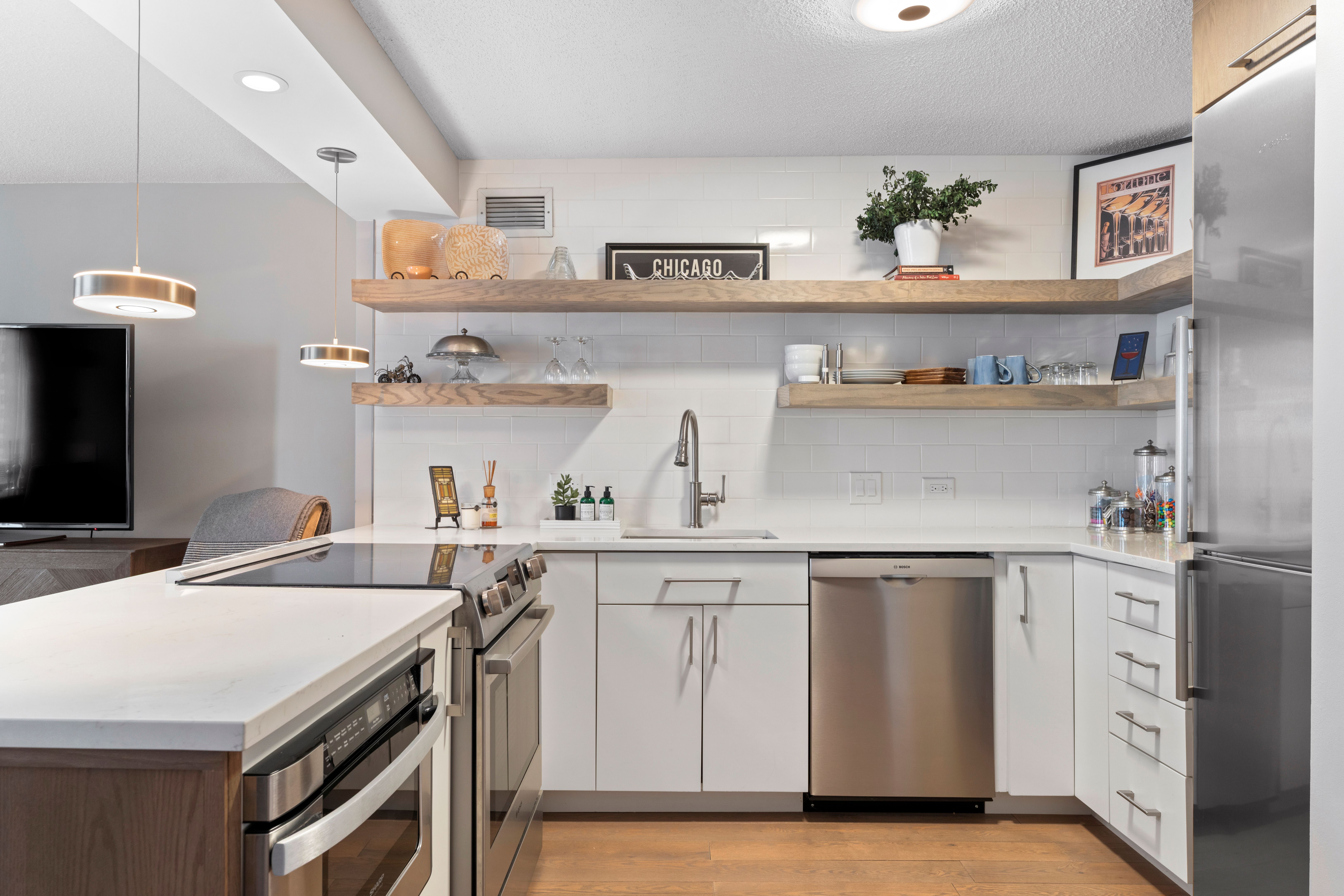 Beautifully Renovated, sunny south-facing 2-bedroom/2-bath residence with a private balcony. The desirable split-bedroom layout offers excellent privacy, both bedrooms large and the same size. The stylish, contemporary kitchen is open to the living room with stainless appliances and quartz counters. New hardwood looking flooring throughout living areas. Baths have been renovated with walk in shower and new vanities. Amazing closet space, 2 walk in closets plus several additional closets! Enjoy this full-service building amenities including a well-equipped fitness center, three landscaped sundecks, bike room, storage lockers, receiving room, on-site management and maintenance, 24-hour door staff, and two laundry rooms. Perfectly located in the heart of the city, just steps from Navy Pier, Target, Starbucks, Whole Foods, AMC Theater, the Riverwalk, lakefront/beach and premier dining and shopping. 2-pipe system, heat, air, cable and internet are included in the monthly assessment. Indoor garage parking is available to rent or purchase from another owner. Furniture can be included, move in ready, turn key!