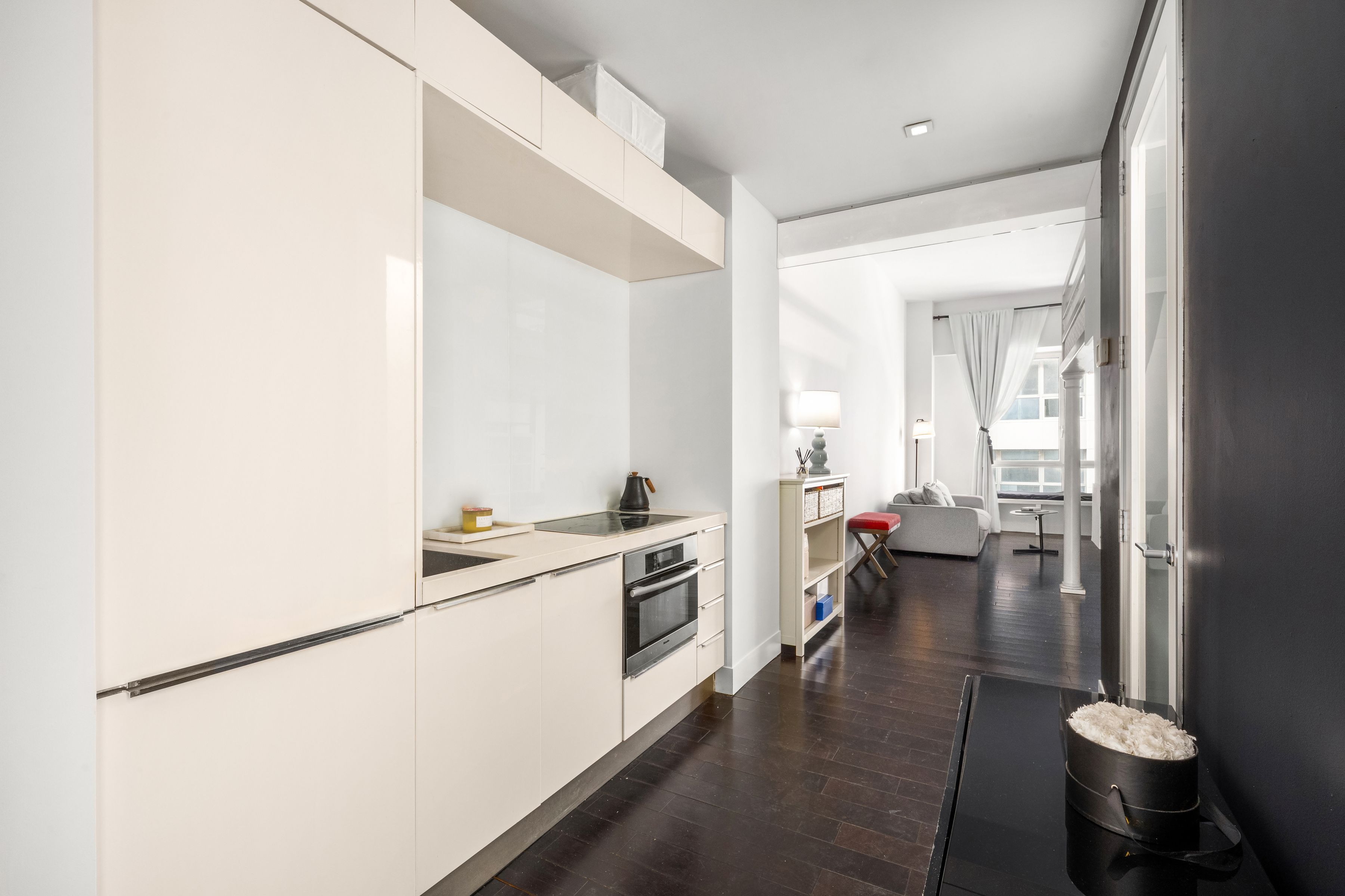 SOPHISTICATED LOFTY STUDIO Apartment #420 at 111 Fulton, in the coveted District Building, is a gem. This south-facing modern studio is half historic loft, half modern showcase home. With 13-foot high ceilings, a pristine chef’s kitchen filled with top-line appliances, and a spa-like bathroom featuring dual sinks and a walk-in rain shower, every detail is designed for refined downtown living. The oversized walk-in closet adds a luxurious sense of space —perfect for a discerning New Yorker who values both style and practicality. Every inch of this immaculate studio has been thoughtfully utilized. Custom window seating extends the living area, while the loft bed opens the space to live more like a one-bedroom than a studio. Add in the new Bosch washer and dryer, and unit #420 may be one of the most efficient downtown studios on the market. "The District" building is one of the best condos in New York, featuring a full-time concierge, robust staff, health club, pool, jacuzzi, cooling tub, sauna, steam room, cinema room, library, and a spectacular roof deck—making it one of downtown’s most impressive lifestyle addresses. Located minutes from both the World Trade Center and South Street Seaport, and adjacent to The Fulton Center Transportation Hub, 111 Fulton sits at the center of Manhattan’s modern downtown renaissance.