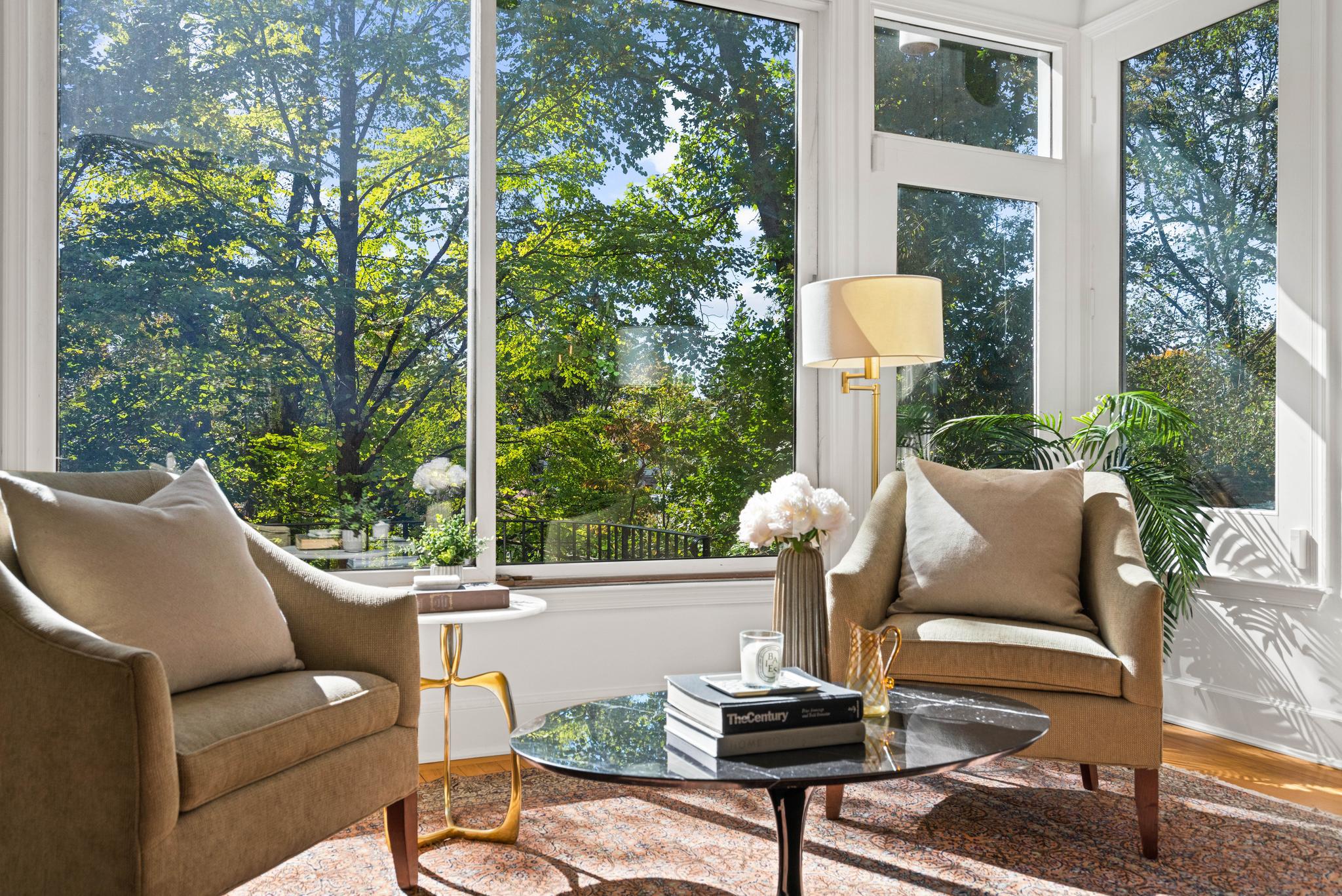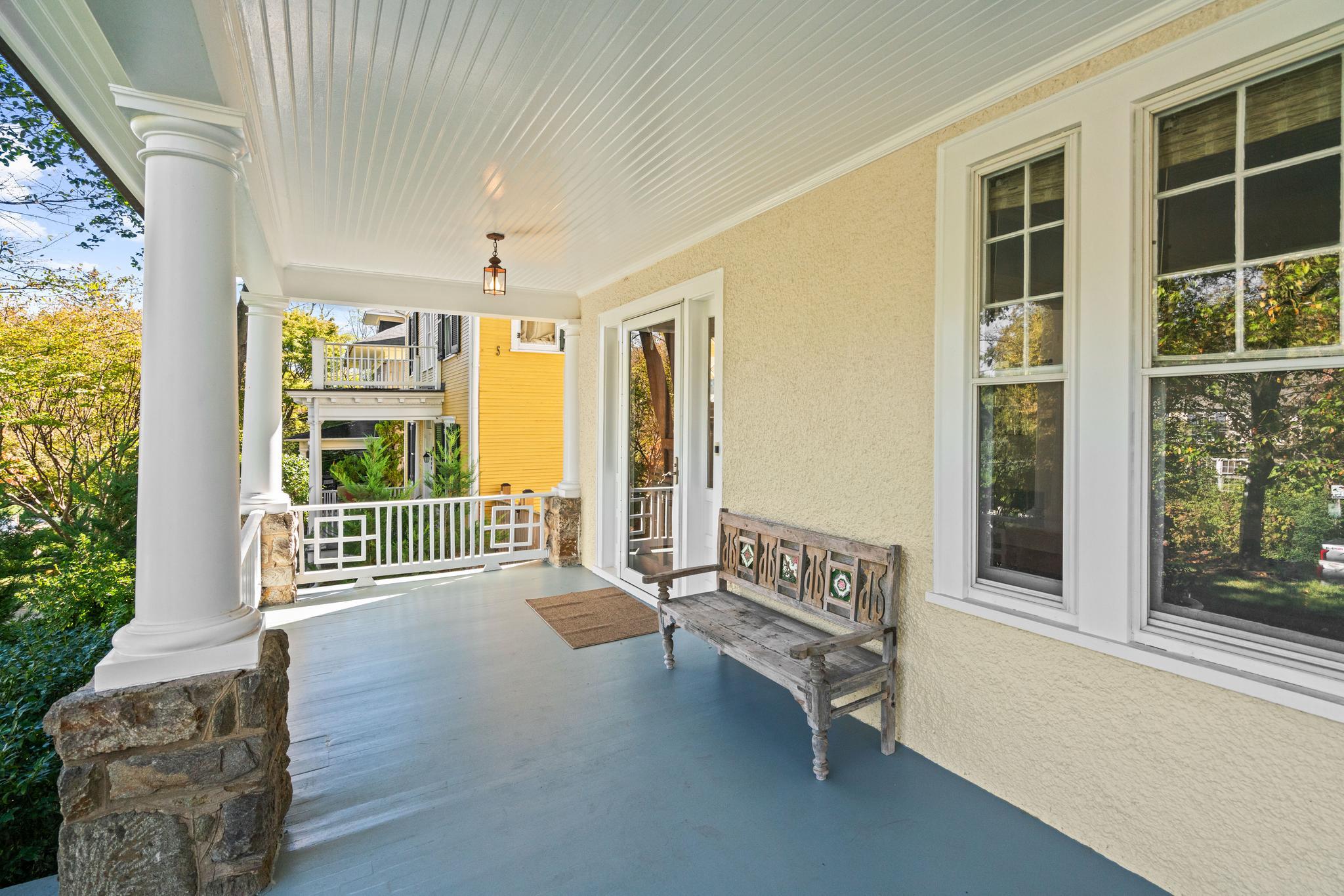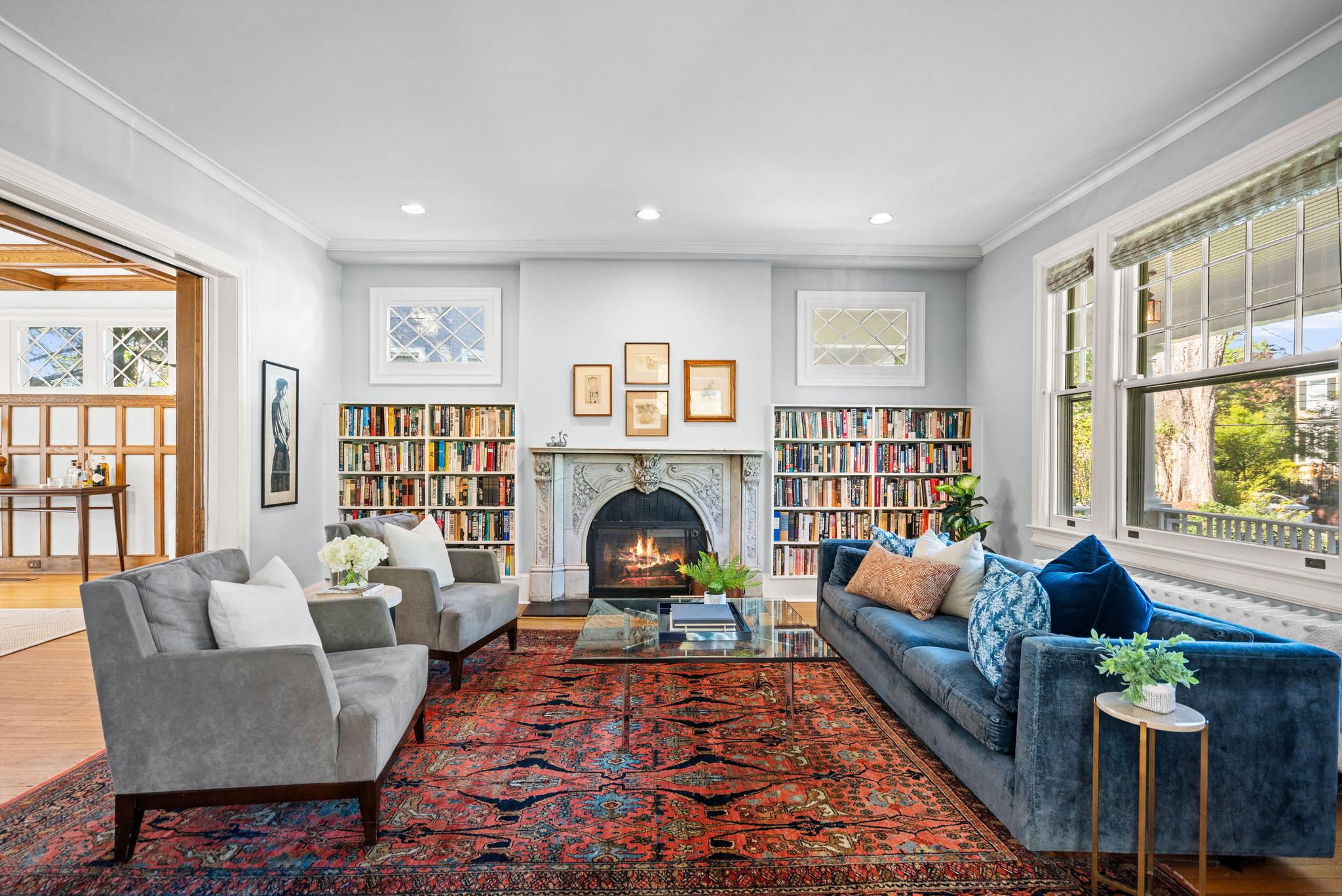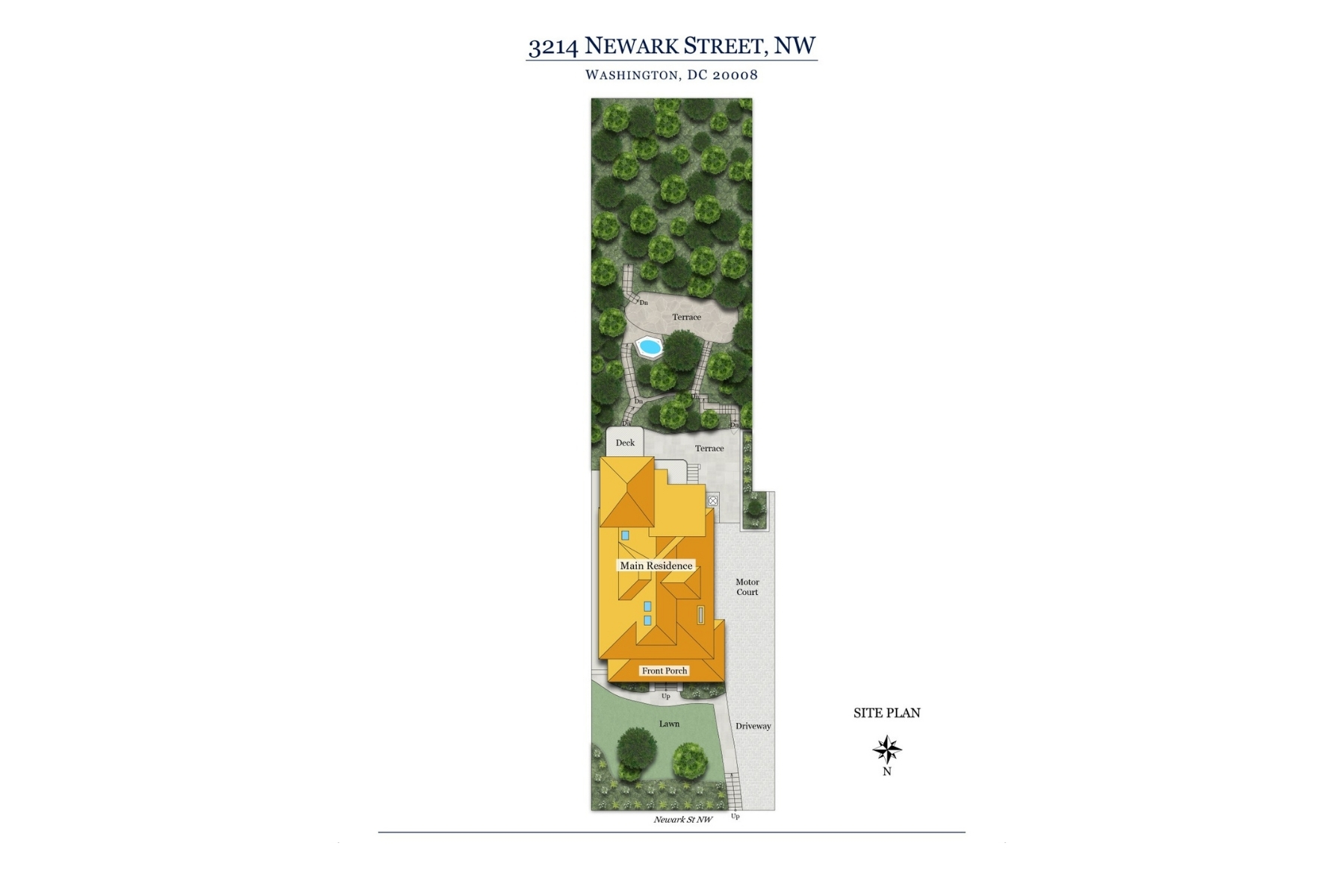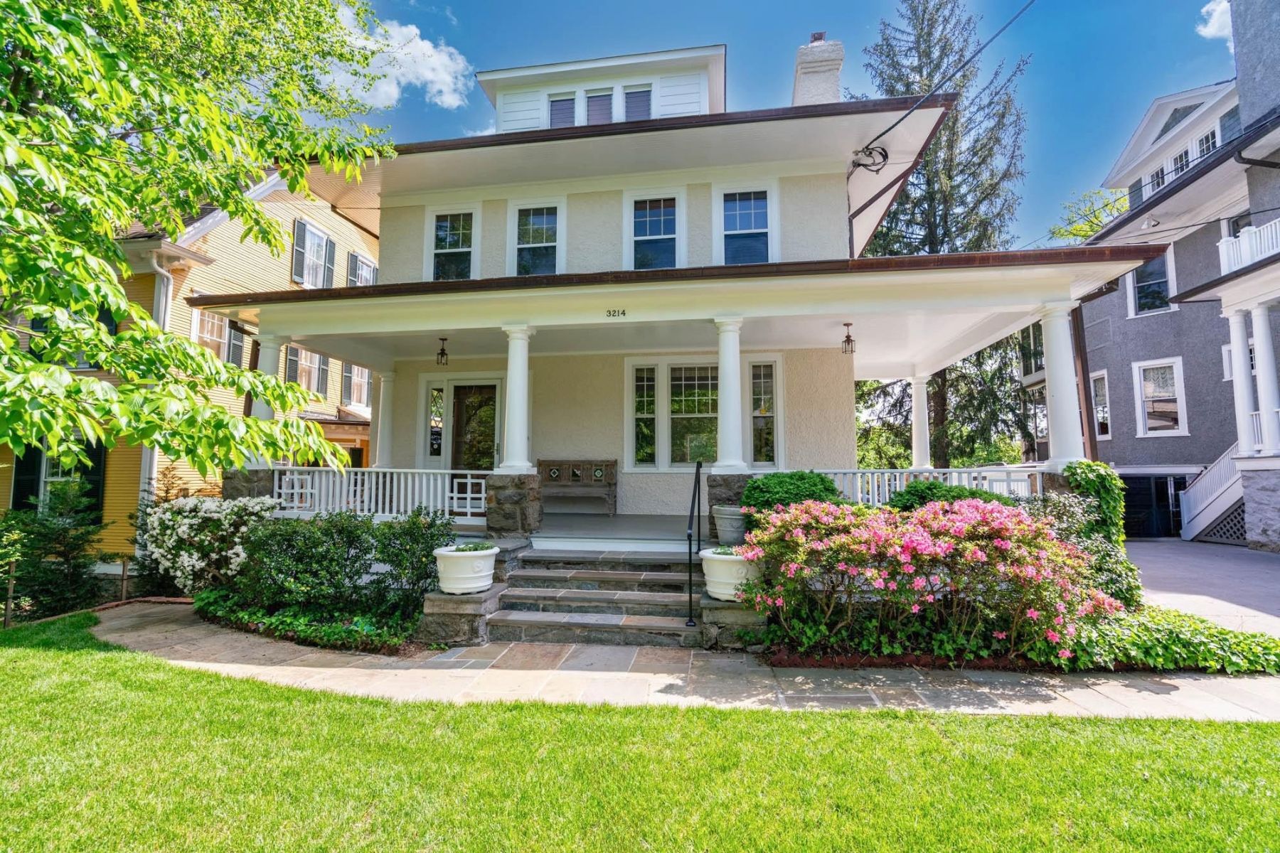 3214 Newark offers two combined lots, totaling .23 acres, and approximately 6,000 sqft of interior space. The house is located on one of Cleveland Park’s most coveted tree-lined streets, embodying classic elegance and historic character. Set gracefully behind a lush front lawn and accessed by a stone walkway, the residence welcomes you with an expansive front porch. Inside, a gracious foyer introduces light-filled, beautifully scaled rooms that showcase the home’s original craftsmanship, including crown moldings, intricate millwork, high ceilings, and preserved hardwood floors. The inviting living room centers on a detailed fireplace and built-ins, opening through pocket doors to a grand dining room distinguished by warm wood paneling and a striking coffered ceiling. An adjoining sitting area overlooks the lush terrace and gardens, creating a seamless connection between indoor and outdoor living. The kitchen offers a suite of stainless steel appliances, generous cabinetry and an inviting breakfast area with access to the rear yard, providing an ideal flow for al fresco dining. A nearby powder room adds convenience and completes the main level. Upstairs, the sun-filled primary suite features floor-to-ceiling built-in bookshelves, a walk-in closet, and an elegant office or sitting room with a fireplace and is further enhanced by an en-suite bathroom. Two additional bedrooms on this level share a hall bathroom, and a dedicated laundry room completes the floor. The third level offers two spacious bedrooms, one with skylights and another with a fireplace and panoramic treetop views, along with a flexible room ideal for a study, playroom, or creative space. The expansive lower level provides exceptional potential for customization with abundant space for a recreation room, gym, wine cellar, or guest suite. Outside, the grounds unfold into a private garden sanctuary. A gracious upper terrace is ideal for entertaining and dining, while a stone staircase leads down to a lower garden surrounded by mature trees, lush plantings, and a tranquil fountain. Perfectly sited within close proximity to Cleveland Park’s cherished amenities, this distinguished residence offers easy access to Rock Creek Park and the Tregaron Conservancy, as well as the shops and restaurants along Connecticut and Wisconsin Avenues, Cathedral Commons, and the Metro. The neighborhood’s proximity to the National Cathedral Schools, John Eaton Elementary, and Sidwell Friends School further enhances its appeal as one of Washington’s most desirable residential settings.