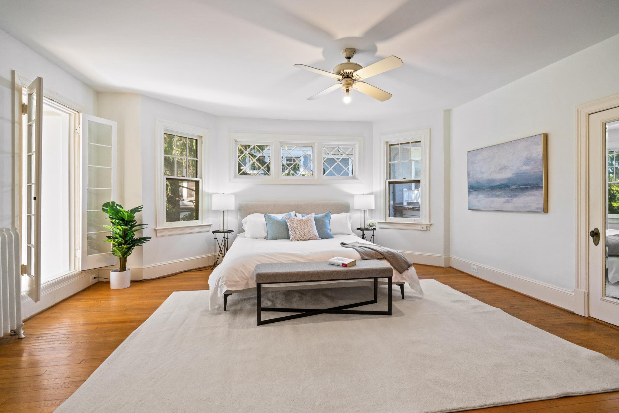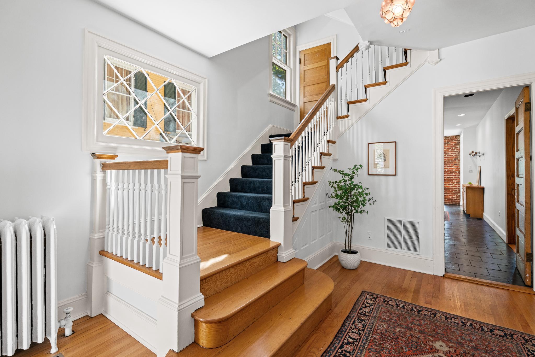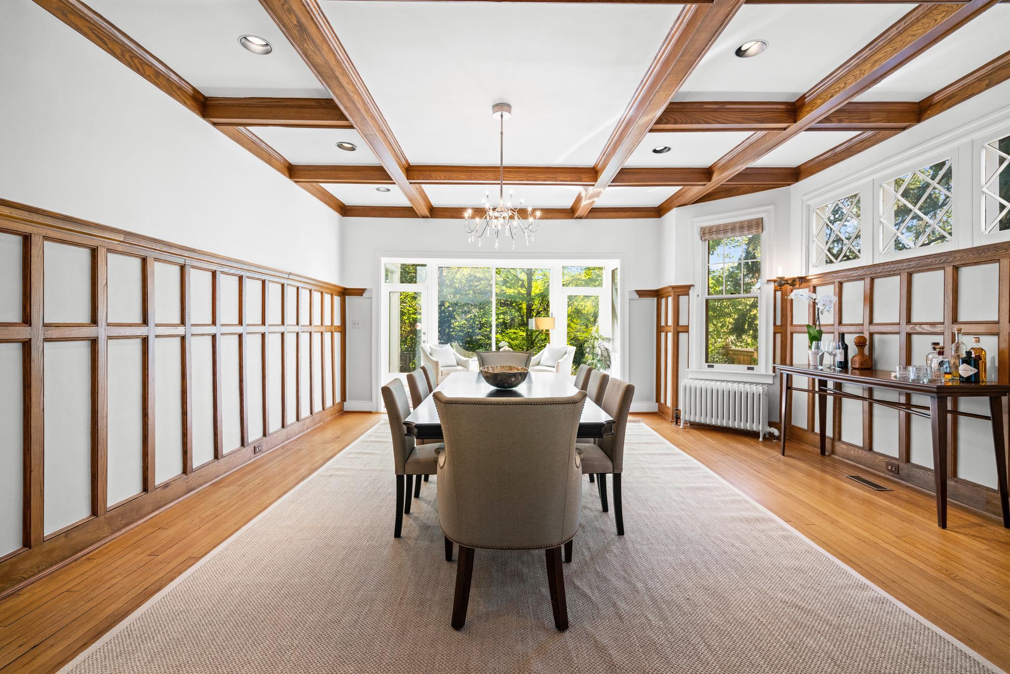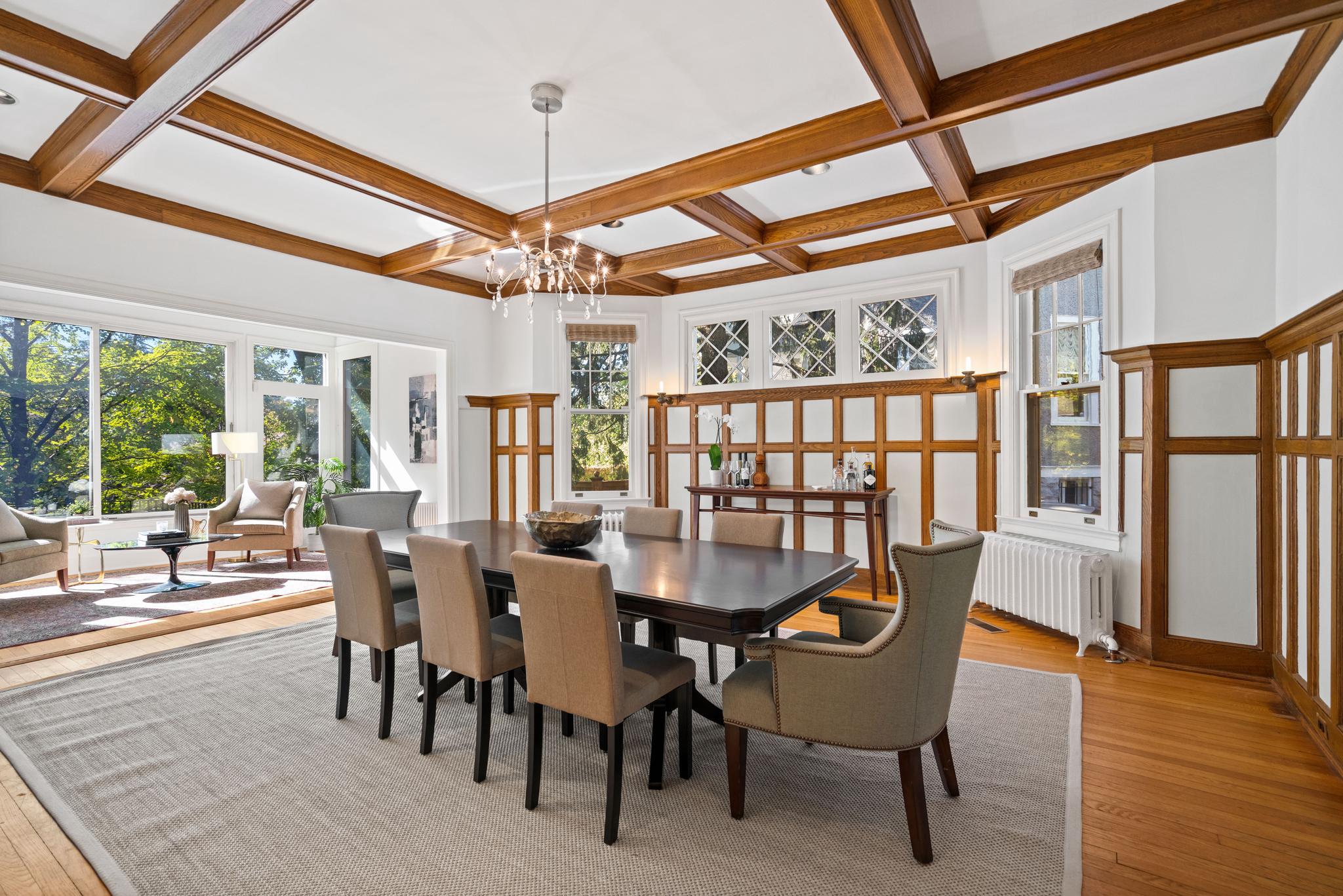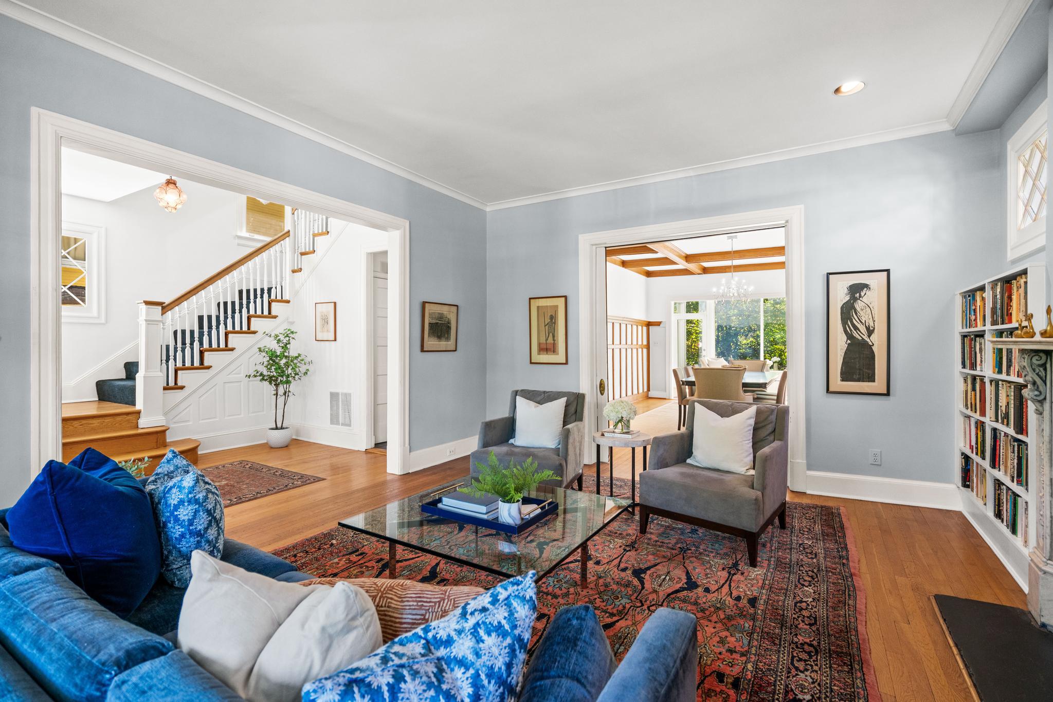 3214 Newark offers two combined lots, totaling .23 acres, and approximately 6,000 sqft of interior space. The house is located on one of Cleveland Park’s most coveted tree-lined streets, embodying classic elegance and historic character. Set gracefully behind a lush front lawn and accessed by a stone walkway, the residence welcomes you with an expansive front porch. Inside, a gracious foyer introduces light-filled, beautifully scaled rooms that showcase the home’s original craftsmanship, including crown moldings, intricate millwork, high ceilings, and preserved hardwood floors. The inviting living room centers on a detailed fireplace and built-ins, opening through pocket doors to a grand dining room distinguished by warm wood paneling and a striking coffered ceiling. An adjoining sitting area overlooks the lush terrace and gardens, creating a seamless connection between indoor and outdoor living. The kitchen offers a suite of stainless steel appliances, generous cabinetry and an inviting breakfast area with access to the rear yard, providing an ideal flow for al fresco dining. A nearby powder room adds convenience and completes the main level. Upstairs, the sun-filled primary suite features floor-to-ceiling built-in bookshelves, a walk-in closet, and an elegant office or sitting room with a fireplace and is further enhanced by an en-suite bathroom. Two additional bedrooms on this level share a hall bathroom, and a dedicated laundry room completes the floor. The third level offers two spacious bedrooms, one with skylights and another with a fireplace and panoramic treetop views, along with a flexible room ideal for a study, playroom, or creative space. The expansive lower level provides exceptional potential for customization with abundant space for a recreation room, gym, wine cellar, or guest suite. Outside, the grounds unfold into a private garden sanctuary. A gracious upper terrace is ideal for entertaining and dining, while a stone staircase leads down to a lower garden surrounded by mature trees, lush plantings, and a tranquil fountain. Perfectly sited within close proximity to Cleveland Park’s cherished amenities, this distinguished residence offers easy access to Rock Creek Park and the Tregaron Conservancy, as well as the shops and restaurants along Connecticut and Wisconsin Avenues, Cathedral Commons, and the Metro. The neighborhood’s proximity to the National Cathedral Schools, John Eaton Elementary, and Sidwell Friends School further enhances its appeal as one of Washington’s most desirable residential settings.