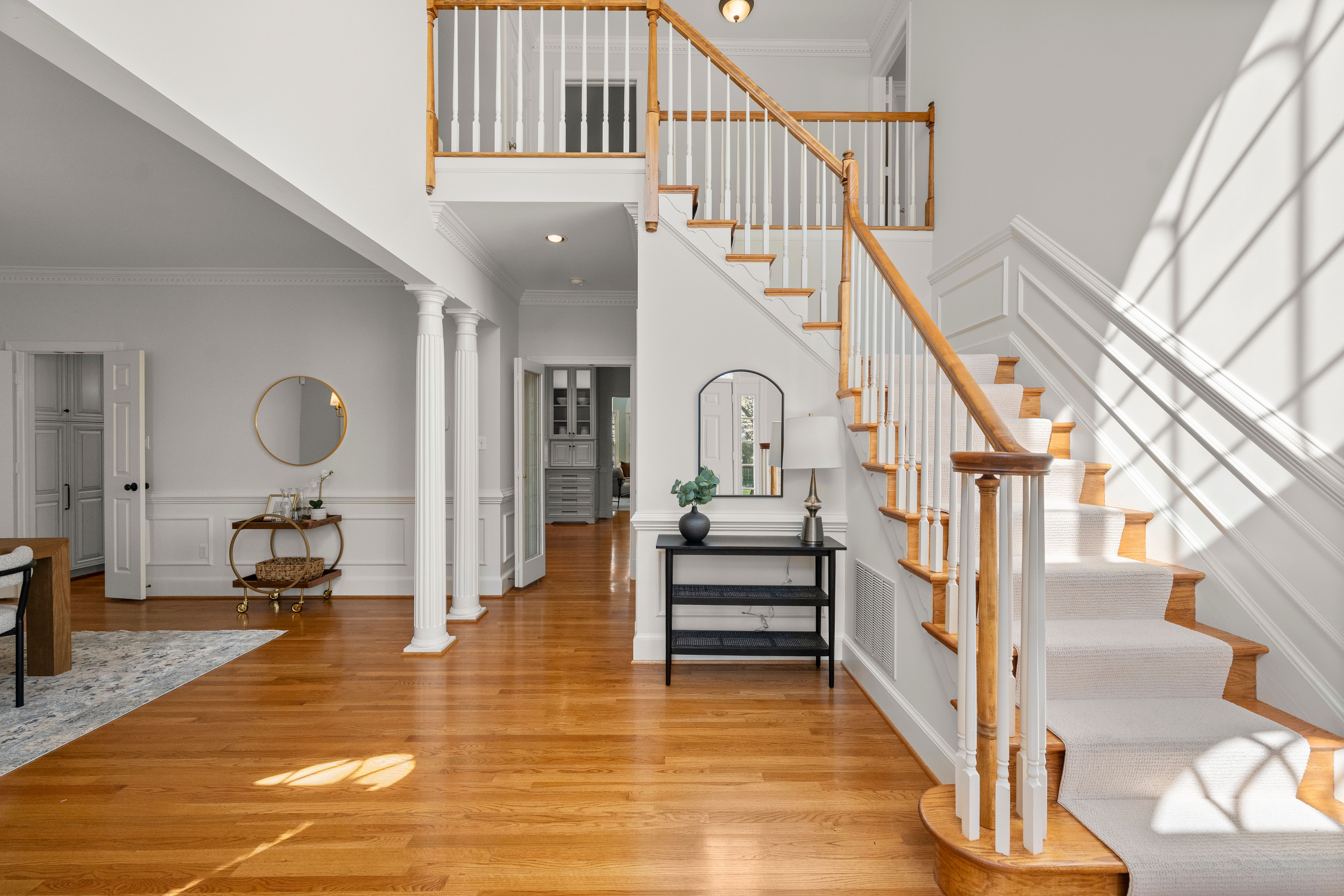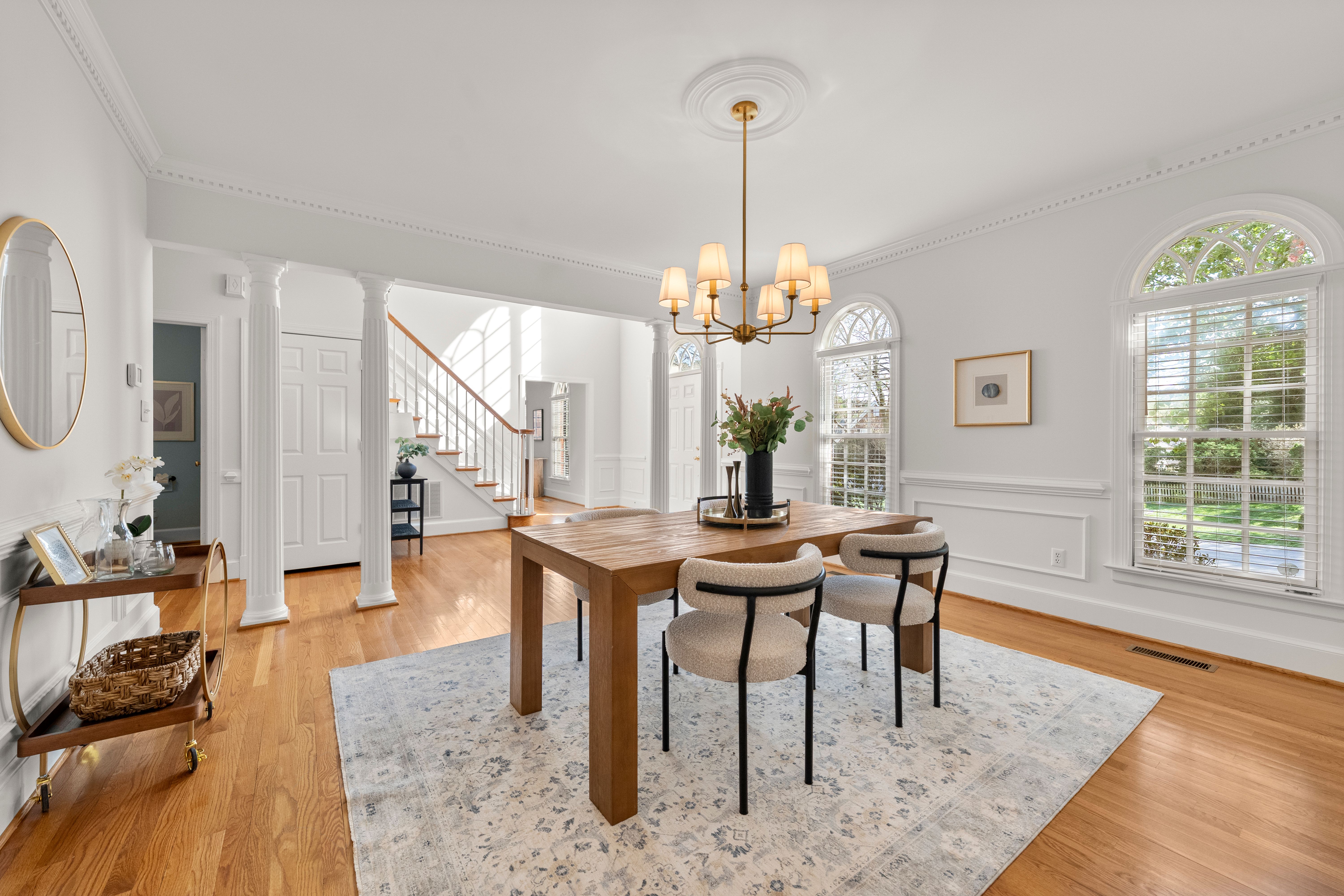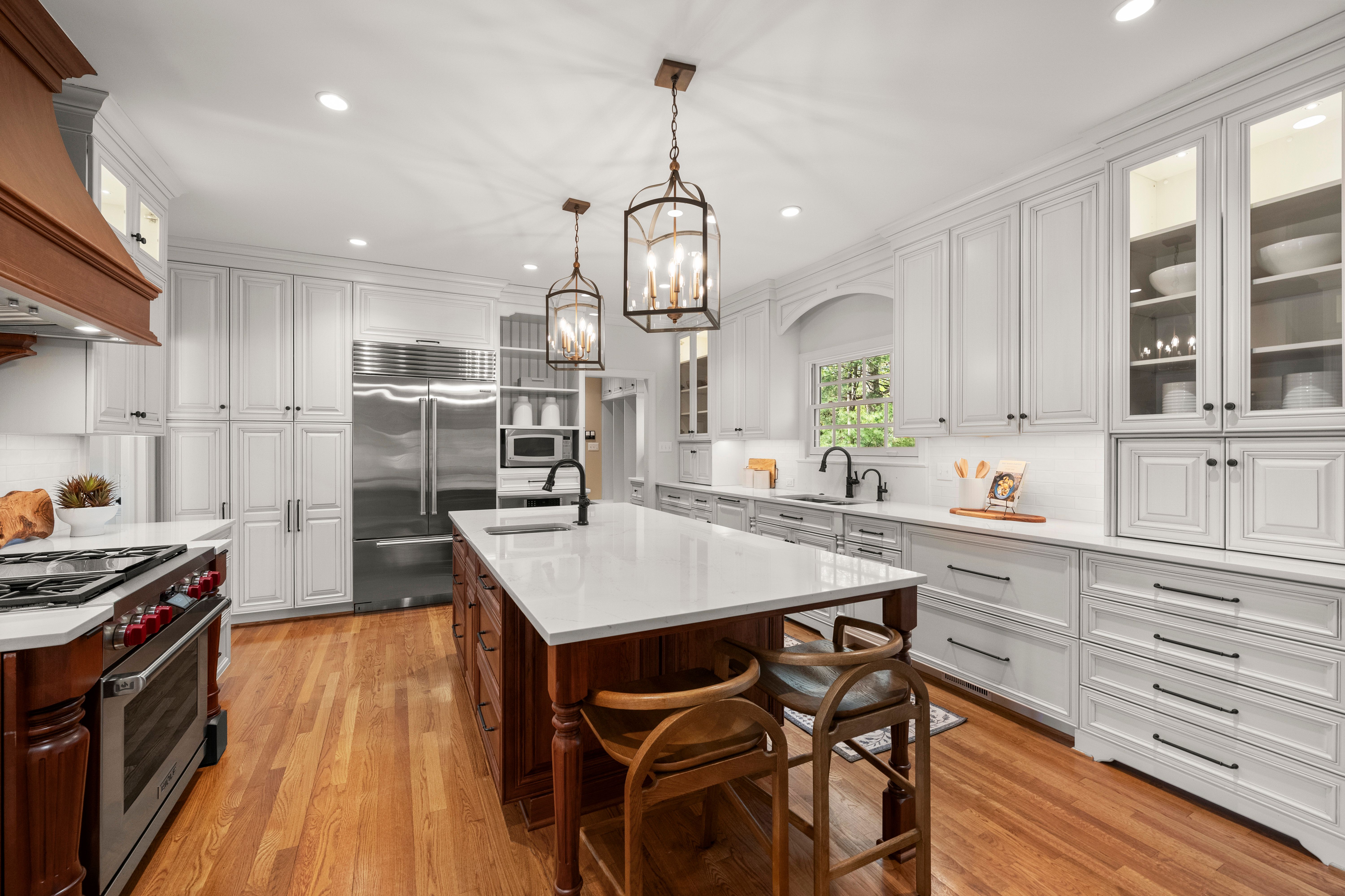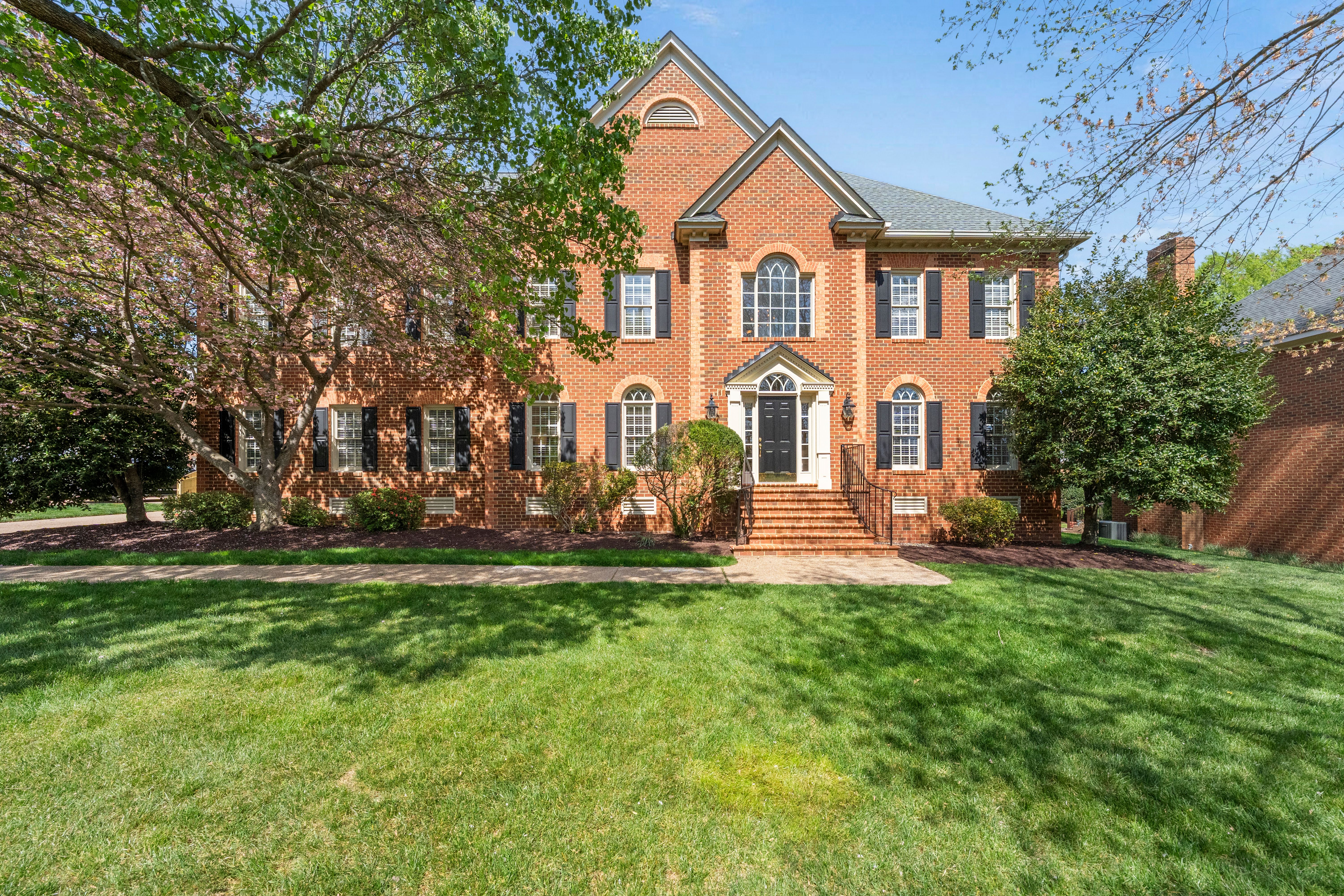 This stately renovated and meticulously maintained 5 bedroom, 4 ½ bath brick home is beautifully sited on an elevated flat lot in the sought-after Barrington neighborhood. The light-filled 2-story foyer with sweeping staircase opens to the formal living and dining rooms featuring timeless architectural details and newly refinished hardwood floors. Renovated in 2022 by Custom Kitchens, the chef’s kitchen is a true focal point, thoughtfully designed with ample custom cabinetry, quartz island/counters and top-of-the-line stainless steel appliances including a Wolf gas range, SubZero refrigerator/freezer, convection wall oven, microwave and Bosch dishwasher. The kitchen opens to the breakfast room and a bright sunroom with vaulted ceiling and skylights.The spacious family room features a gas fireplace and custom-built bookcases. The first floor is completed by a drop zone with custom lockers off of the two-car garage - balancing this home’s elegance with everyday practicality. French doors from the sunroom and family room seamlessly flow to the raised deck overlooking the landscaped yard with mature trees creating a private yet inviting setting for both quiet mornings and evening gatherings. Upstairs, you will find a total of five bedrooms and three full baths - including the luxurious primary suite with two walk-in closets and a newly renovated primary bath with double vanity, freestanding soaking tub, walk-in tiled shower, heated towel rack and heated floors. Three additional bedrooms, two full renovated baths, and a laundry room complete the second level. The third floor adds exceptional versatility with a large recreation room with vaulted ceiling and potential 6th bedroom with built-in workspace, walk-in closest plus a full bath. Significant updates include newer roof, newer aggregate driveway and walkway, newer HVAC systems and water heater. Ideally located just minutes from Short Pump’s premier shopping and dining, top-rated schools, and major highways, this home is truly move-in ready!