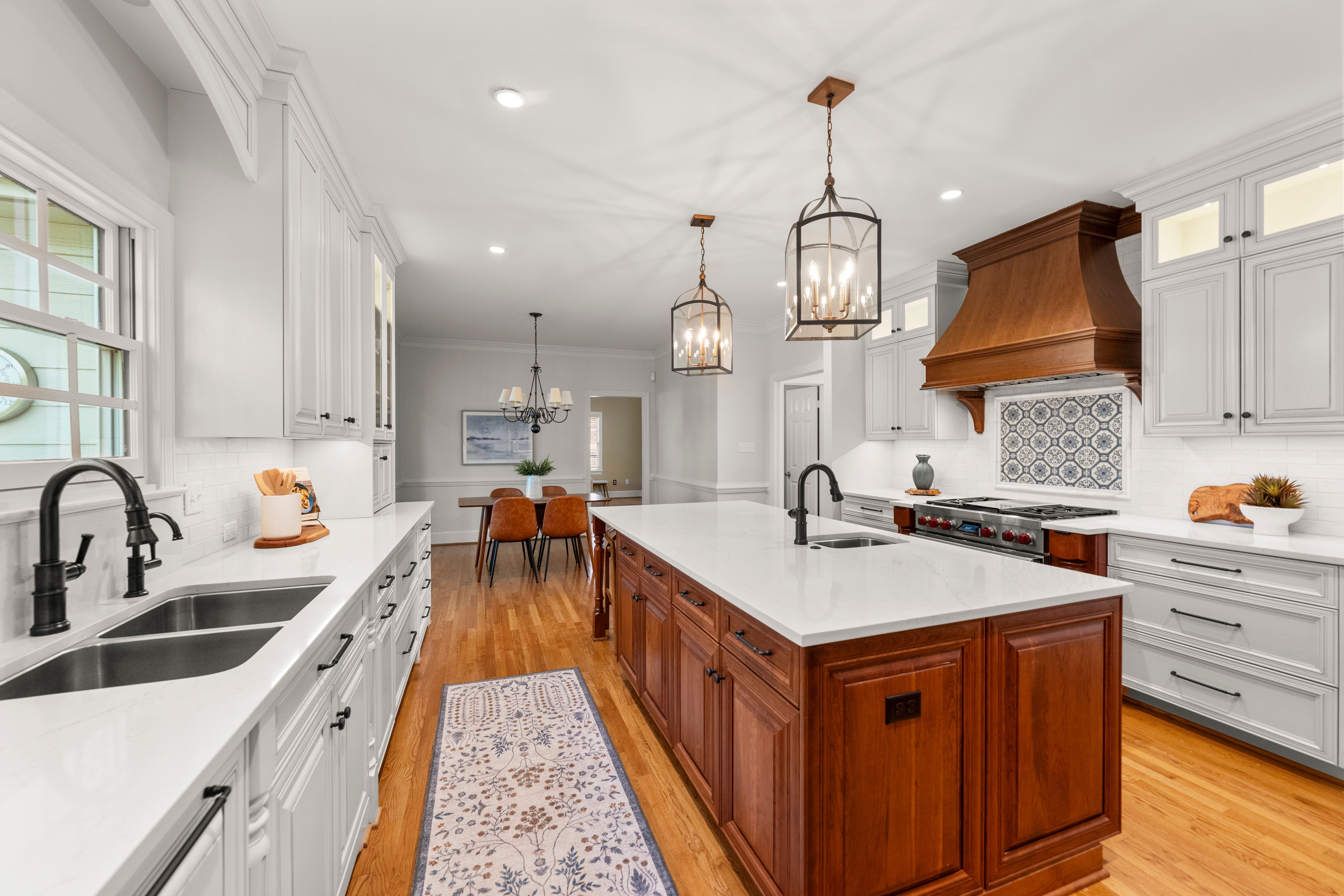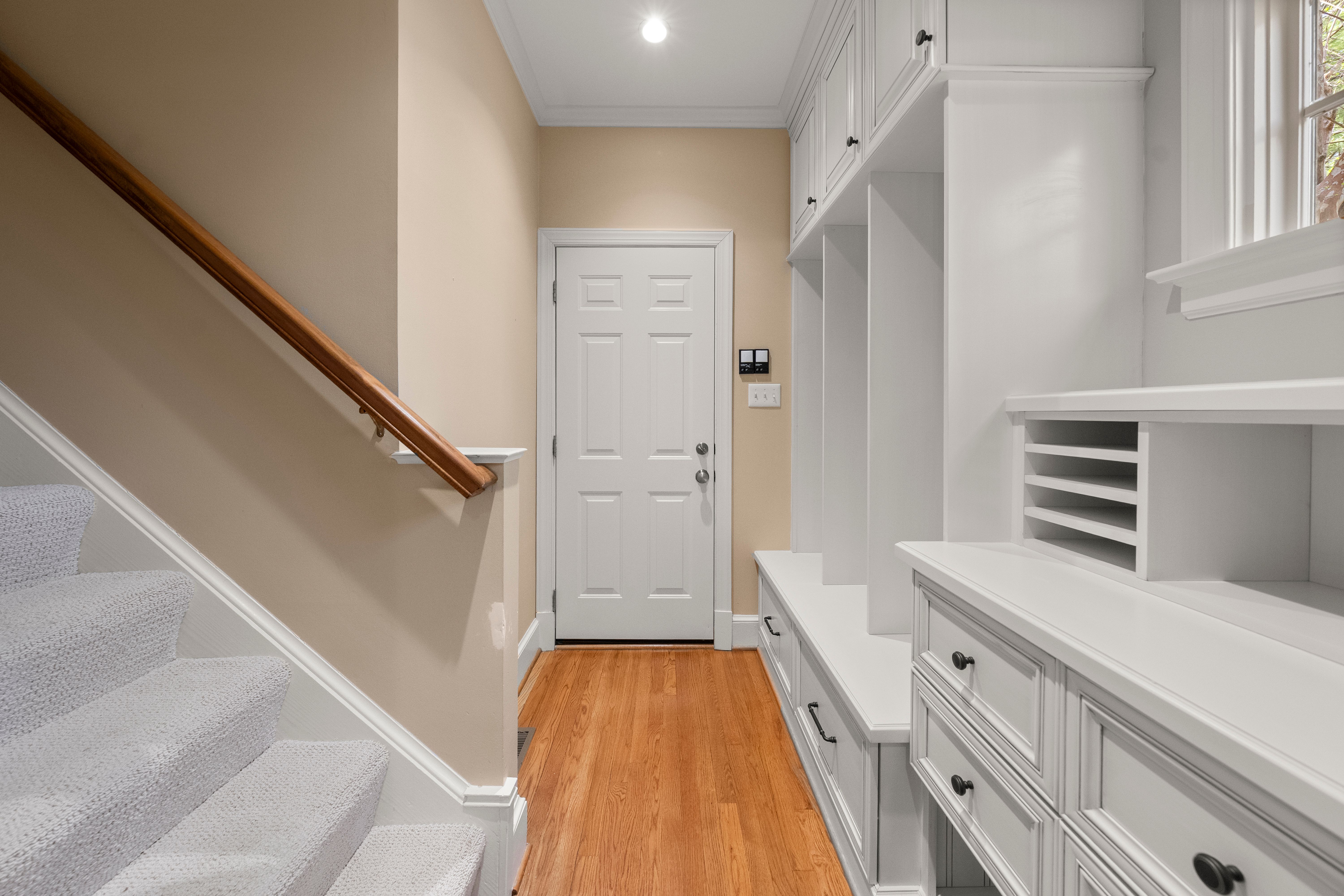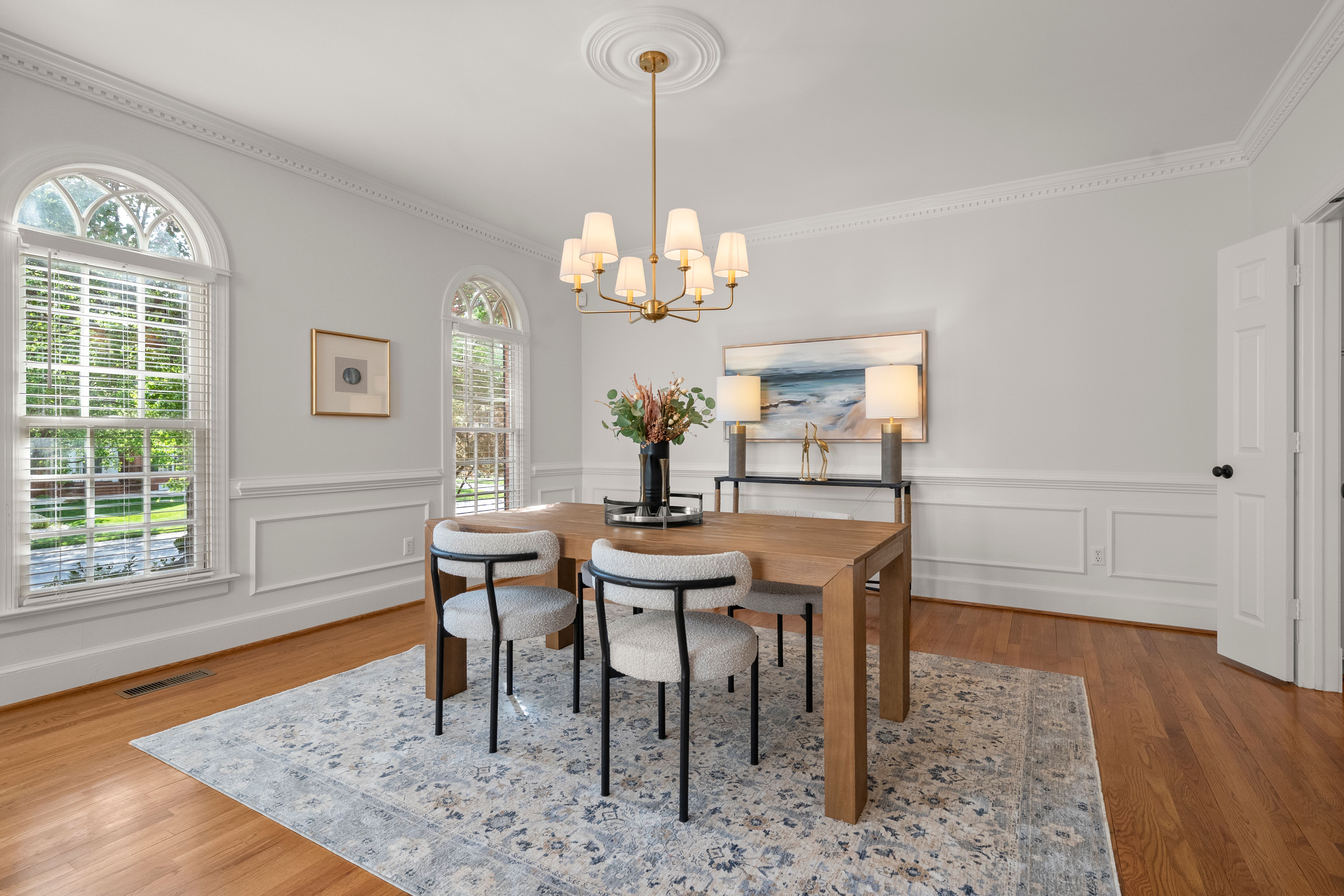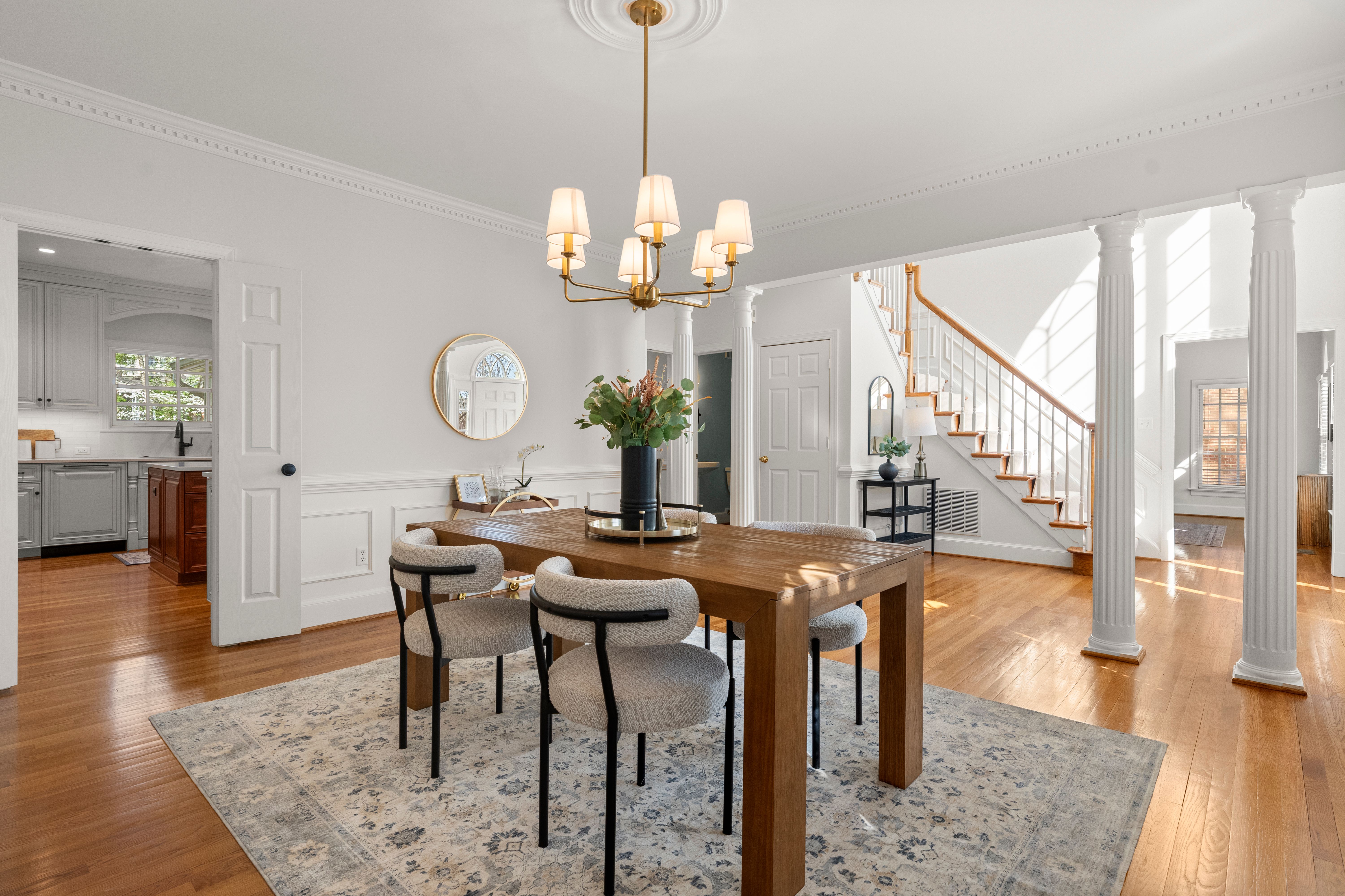 This stately renovated and meticulously maintained 5 bedroom, 4 ½ bath brick home is beautifully sited on an elevated flat lot in the sought-after Barrington neighborhood. The light-filled 2-story foyer with sweeping staircase opens to the formal living and dining rooms featuring timeless architectural details and newly refinished hardwood floors. Renovated in 2022 by Custom Kitchens, the chef’s kitchen is a true focal point, thoughtfully designed with ample custom cabinetry, quartz island/counters and top-of-the-line stainless steel appliances including a Wolf gas range, SubZero refrigerator/freezer, convection wall oven, microwave and Bosch dishwasher. The kitchen opens to the breakfast room and a bright sunroom with vaulted ceiling and skylights.The spacious family room features a gas fireplace and custom-built bookcases. The first floor is completed by a drop zone with custom lockers off of the two-car garage - balancing this home’s elegance with everyday practicality. French doors from the sunroom and family room seamlessly flow to the raised deck overlooking the landscaped yard with mature trees creating a private yet inviting setting for both quiet mornings and evening gatherings. Upstairs, you will find a total of five bedrooms and three full baths - including the luxurious primary suite with two walk-in closets and a newly renovated primary bath with double vanity, freestanding soaking tub, walk-in tiled shower, heated towel rack and heated floors. Three additional bedrooms, two full renovated baths, and a laundry room complete the second level. The third floor adds exceptional versatility with a large recreation room with vaulted ceiling and potential 6th bedroom with built-in workspace, walk-in closest plus a full bath. Significant updates include newer roof, newer aggregate driveway and walkway, newer HVAC systems and water heater. Ideally located just minutes from Short Pump’s premier shopping and dining, top-rated schools, and major highways, this home is truly move-in ready!