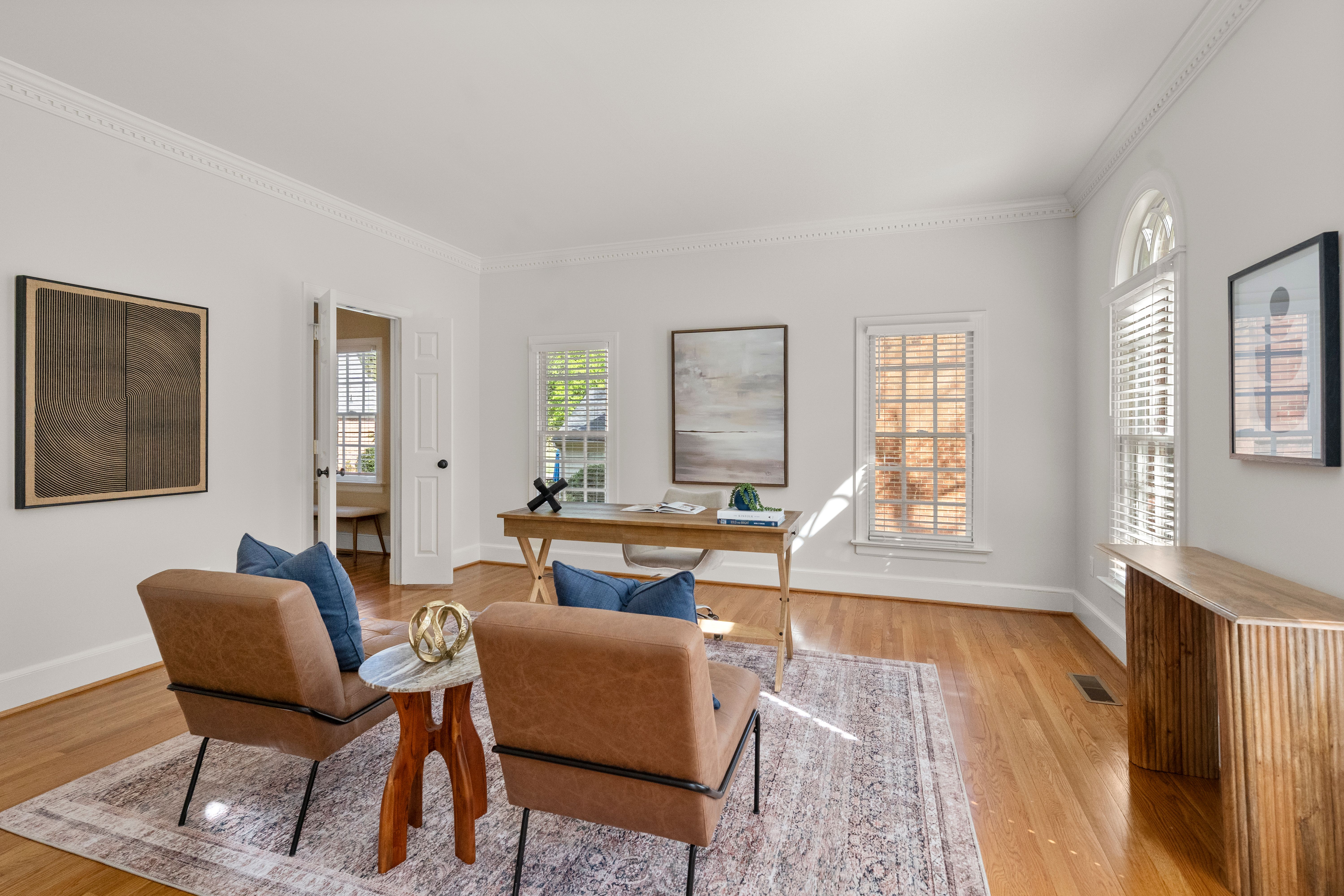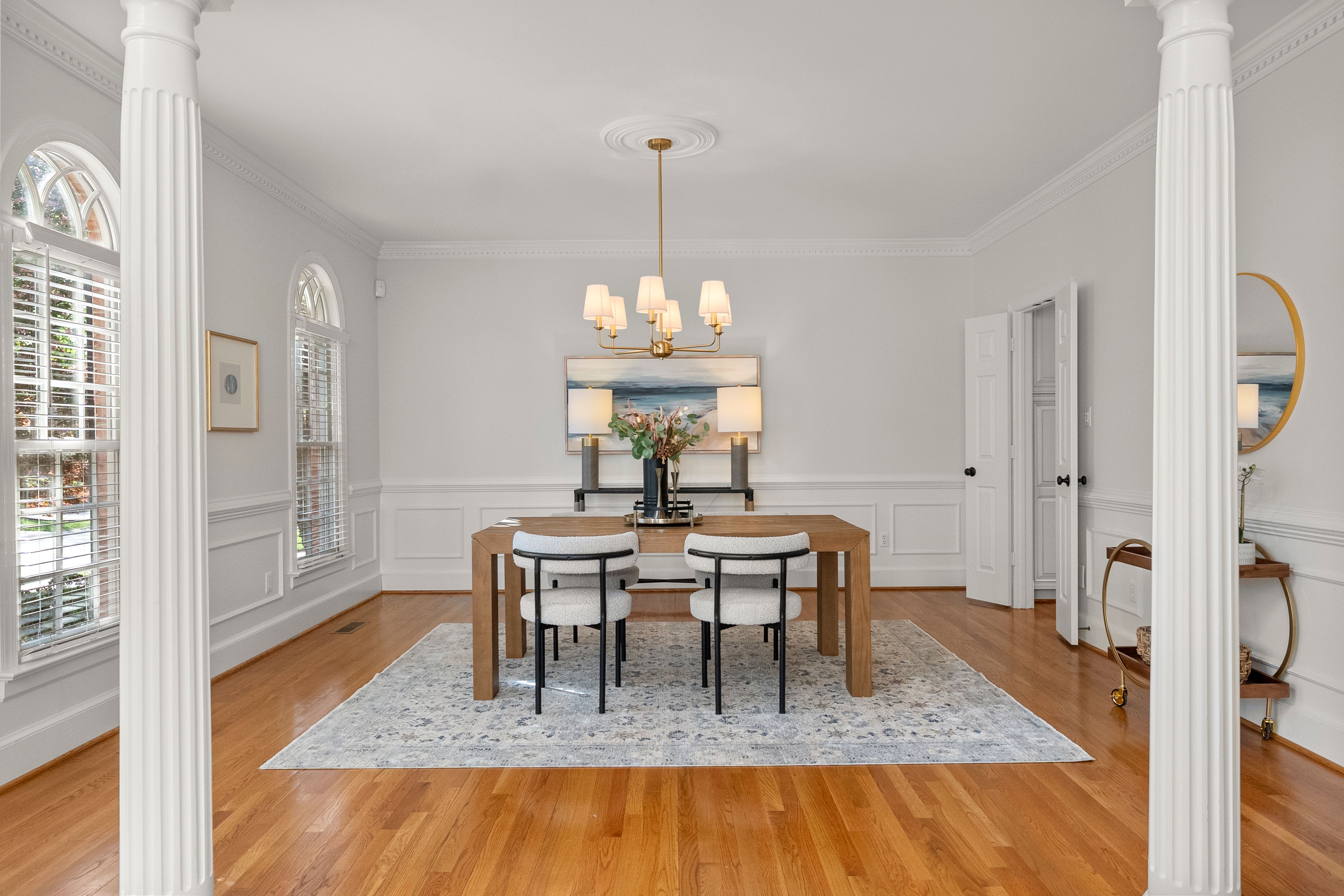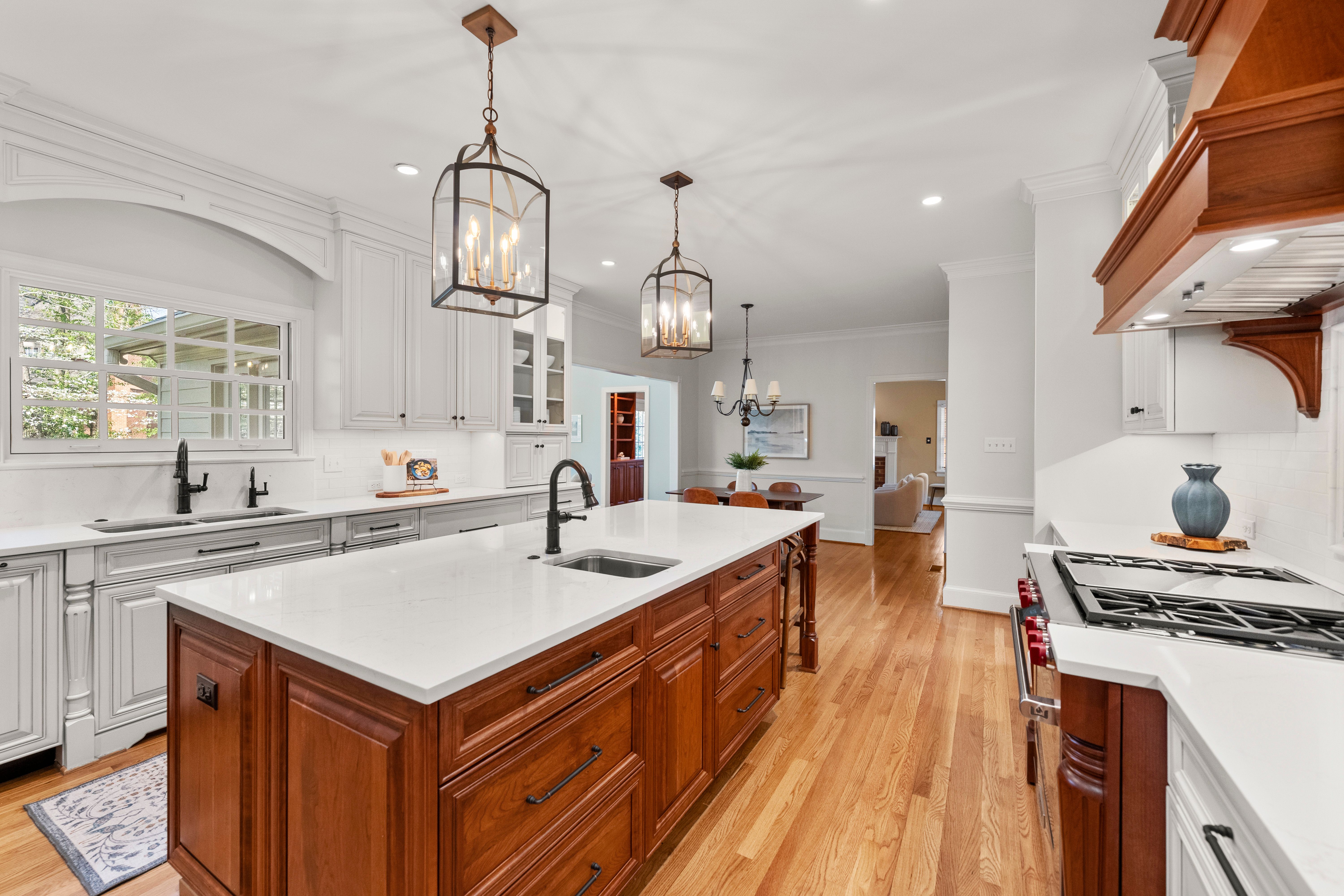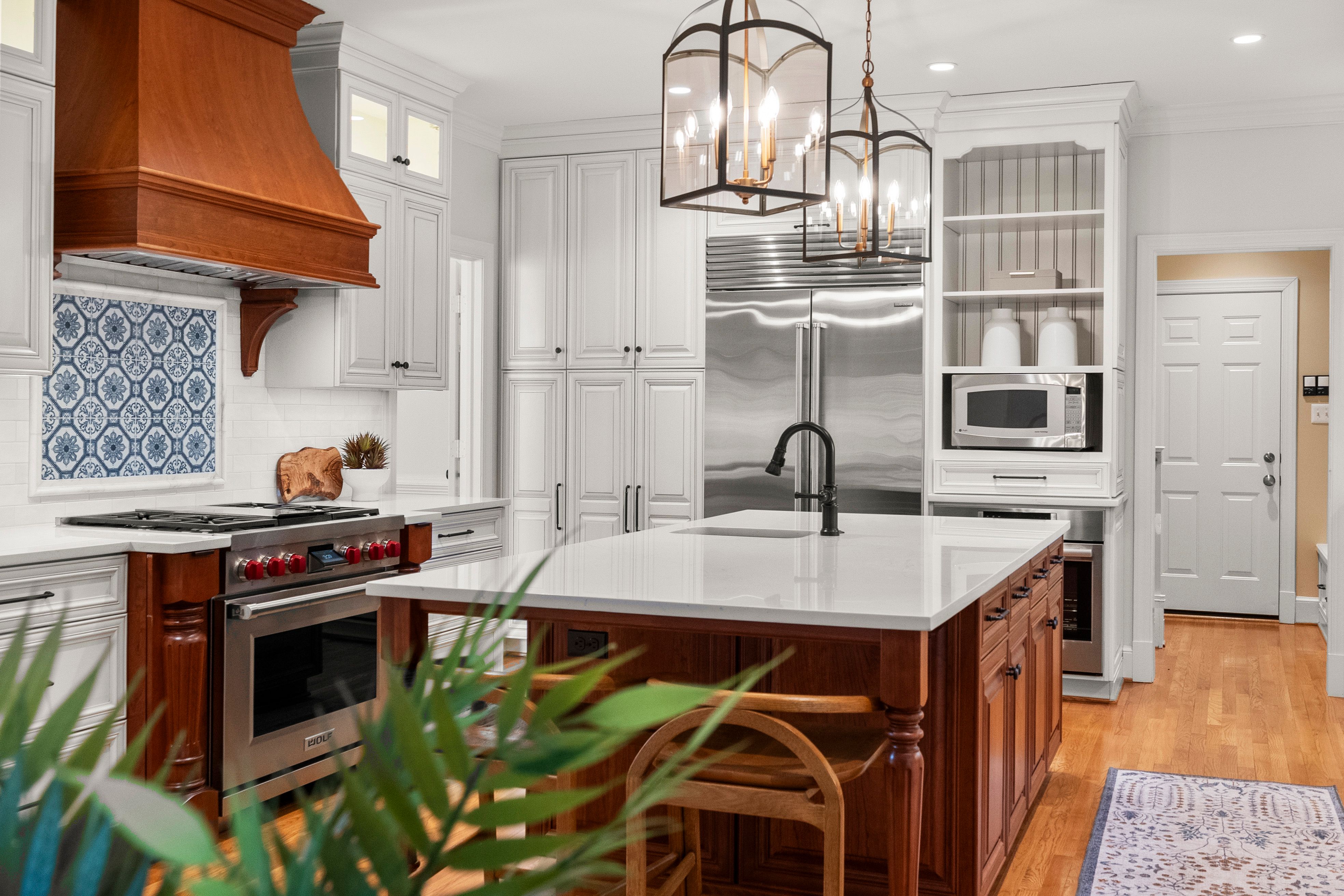 This stately renovated and meticulously maintained 5 bedroom, 4 ½ bath brick home is beautifully sited on an elevated flat lot in the sought-after Barrington neighborhood. The light-filled 2-story foyer with sweeping staircase opens to the formal living and dining rooms featuring timeless architectural details and newly refinished hardwood floors. Renovated in 2022 by Custom Kitchens, the chef’s kitchen is a true focal point, thoughtfully designed with ample custom cabinetry, quartz island/counters and top-of-the-line stainless steel appliances including a Wolf gas range, SubZero refrigerator/freezer, convection wall oven, microwave and Bosch dishwasher. The kitchen opens to the breakfast room and a bright sunroom with vaulted ceiling and skylights.The spacious family room features a gas fireplace and custom-built bookcases. The first floor is completed by a drop zone with custom lockers off of the two-car garage - balancing this home’s elegance with everyday practicality. French doors from the sunroom and family room seamlessly flow to the raised deck overlooking the landscaped yard with mature trees creating a private yet inviting setting for both quiet mornings and evening gatherings. Upstairs, you will find a total of five bedrooms and three full baths - including the luxurious primary suite with two walk-in closets and a newly renovated primary bath with double vanity, freestanding soaking tub, walk-in tiled shower, heated towel rack and heated floors. Three additional bedrooms, two full renovated baths, and a laundry room complete the second level. The third floor adds exceptional versatility with a large recreation room with vaulted ceiling and potential 6th bedroom with built-in workspace, walk-in closest plus a full bath. Significant updates include newer roof, newer aggregate driveway and walkway, newer HVAC systems and water heater. Ideally located just minutes from Short Pump’s premier shopping and dining, top-rated schools, and major highways, this home is truly move-in ready!