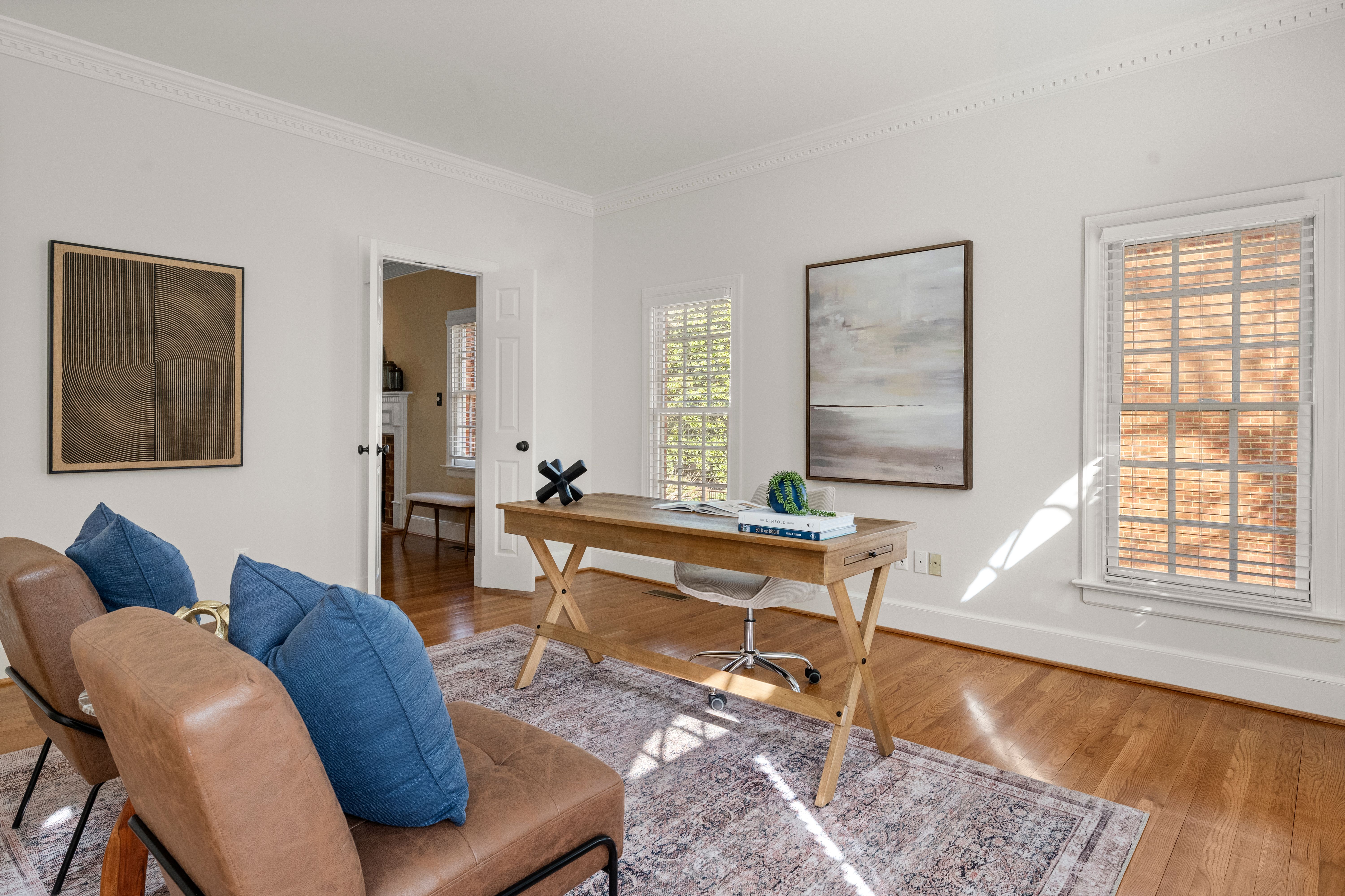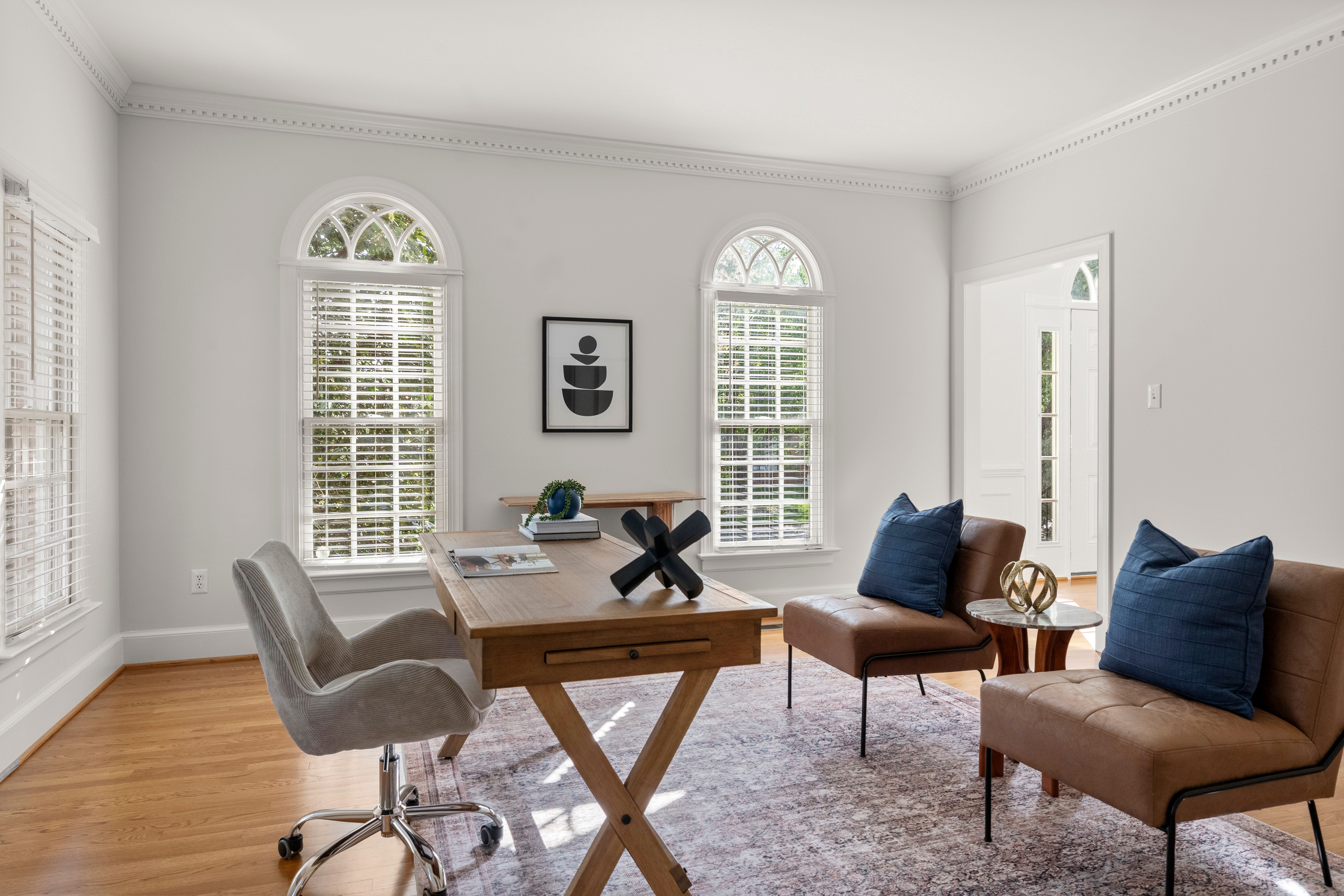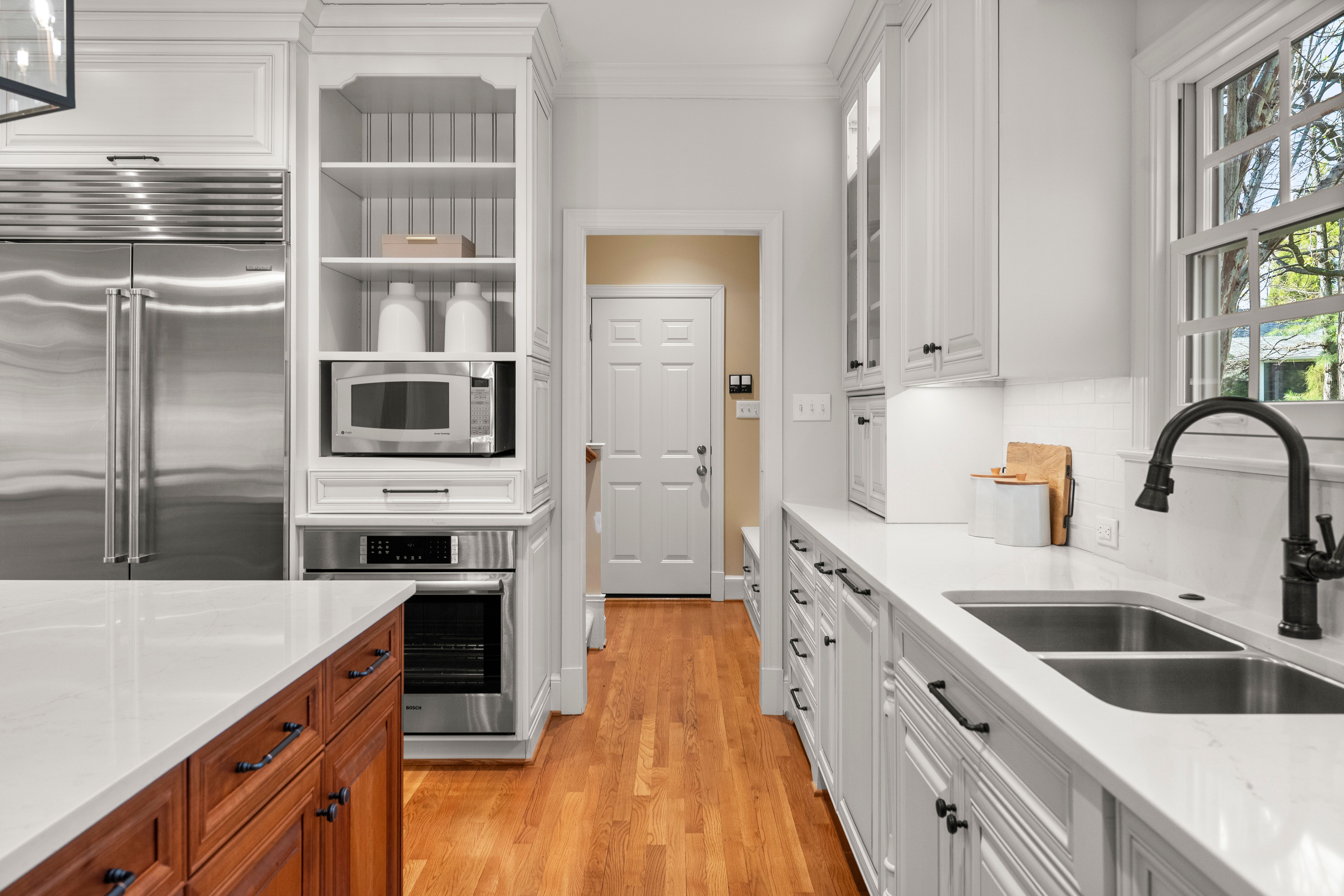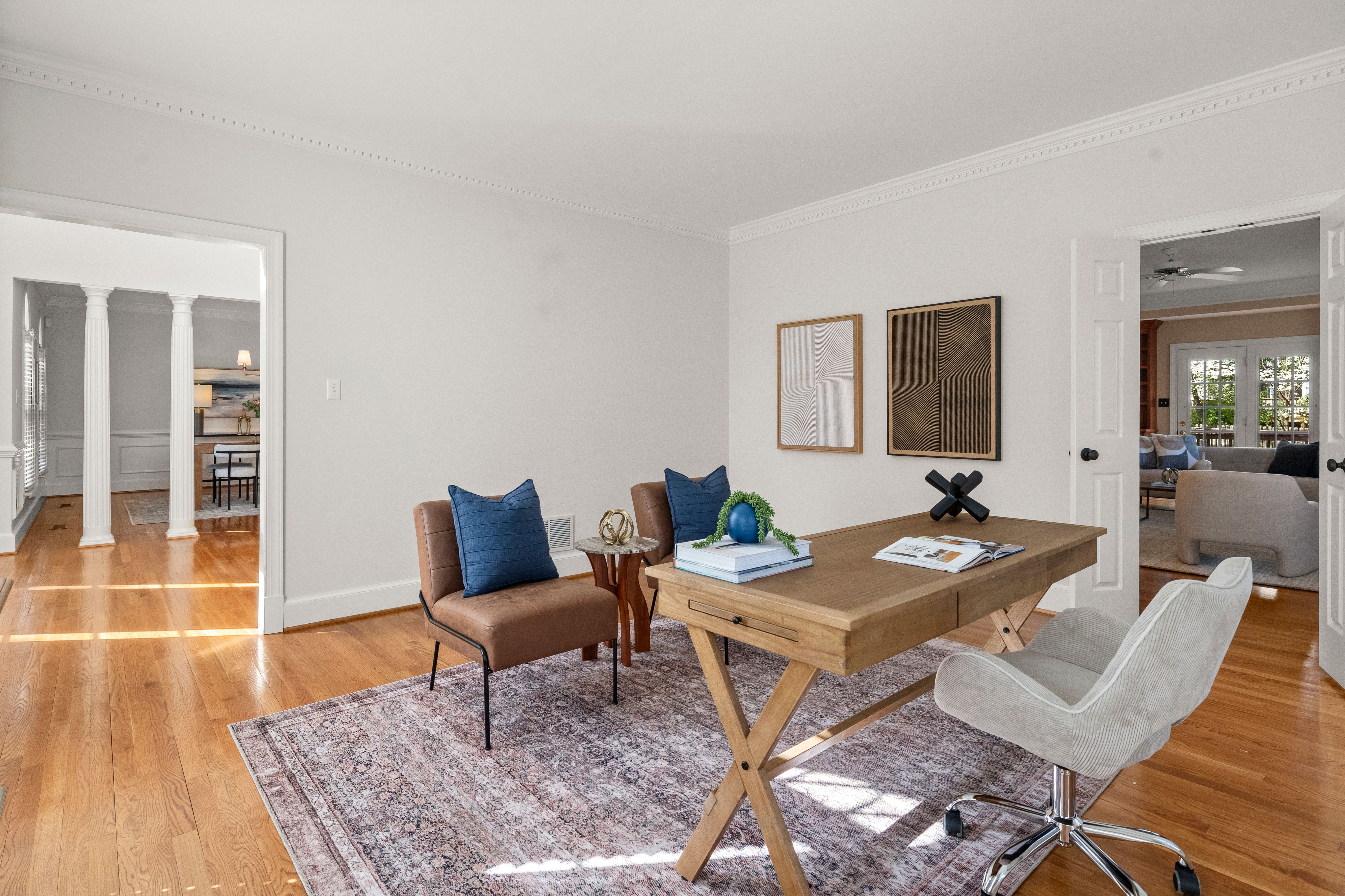 This stately renovated and meticulously maintained 5 bedroom, 4 ½ bath brick home is beautifully sited on an elevated flat lot in the sought-after Barrington neighborhood. The light-filled 2-story foyer with sweeping staircase opens to the formal living and dining rooms featuring timeless architectural details and newly refinished hardwood floors. Renovated in 2022 by Custom Kitchens, the chef’s kitchen is a true focal point, thoughtfully designed with ample custom cabinetry, quartz island/counters and top-of-the-line stainless steel appliances including a Wolf gas range, SubZero refrigerator/freezer, convection wall oven, microwave and Bosch dishwasher. The kitchen opens to the breakfast room and a bright sunroom with vaulted ceiling and skylights.The spacious family room features a gas fireplace and custom-built bookcases. The first floor is completed by a drop zone with custom lockers off of the two-car garage - balancing this home’s elegance with everyday practicality. French doors from the sunroom and family room seamlessly flow to the raised deck overlooking the landscaped yard with mature trees creating a private yet inviting setting for both quiet mornings and evening gatherings. Upstairs, you will find a total of five bedrooms and three full baths - including the luxurious primary suite with two walk-in closets and a newly renovated primary bath with double vanity, freestanding soaking tub, walk-in tiled shower, heated towel rack and heated floors. Three additional bedrooms, two full renovated baths, and a laundry room complete the second level. The third floor adds exceptional versatility with a large recreation room with vaulted ceiling and potential 6th bedroom with built-in workspace, walk-in closest plus a full bath. Significant updates include newer roof, newer aggregate driveway and walkway, newer HVAC systems and water heater. Ideally located just minutes from Short Pump’s premier shopping and dining, top-rated schools, and major highways, this home is truly move-in ready!