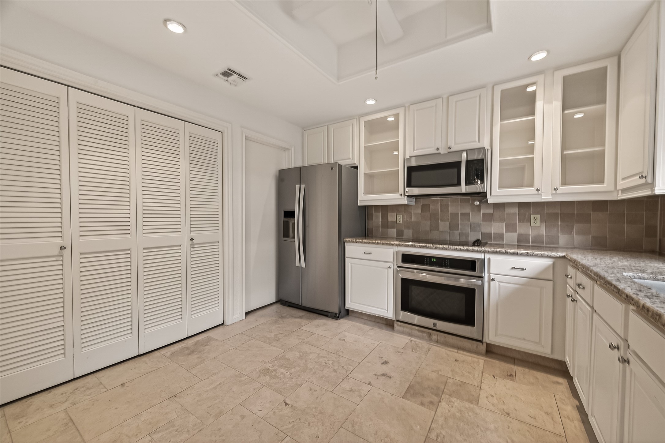 An elegantly updated residence overlooking the pool, this refined 2-bedroom, 2.5-bath home offers a seamless blend of comfort and sophistication. Rich Caribbean Walnut engineered hardwoods, interior paint (2026), plantation shutters, and a wood-burning fireplace create a warm yet elevated living space. The kitchen is thoughtfully appointed with granite countertop, stainless appliances, pantry, and Travertine flooring. The primary suite serves as a private retreat, featuring a balcony, bespoke Elfa closet (2025), and an updated spa-inspired bath (2023) with Hydrosystems soaking tub, frameless glass shower with Coco Canvas matte tile surround in herringbone pattern and Arctic white brushed hex flooring, dual sinks, and marble finishes. A fenced patio with herringbone tile extends the living outdoors. Situated within a gated community with guard and resort-style pool, moments from premier shopping, dining, and major corridors.