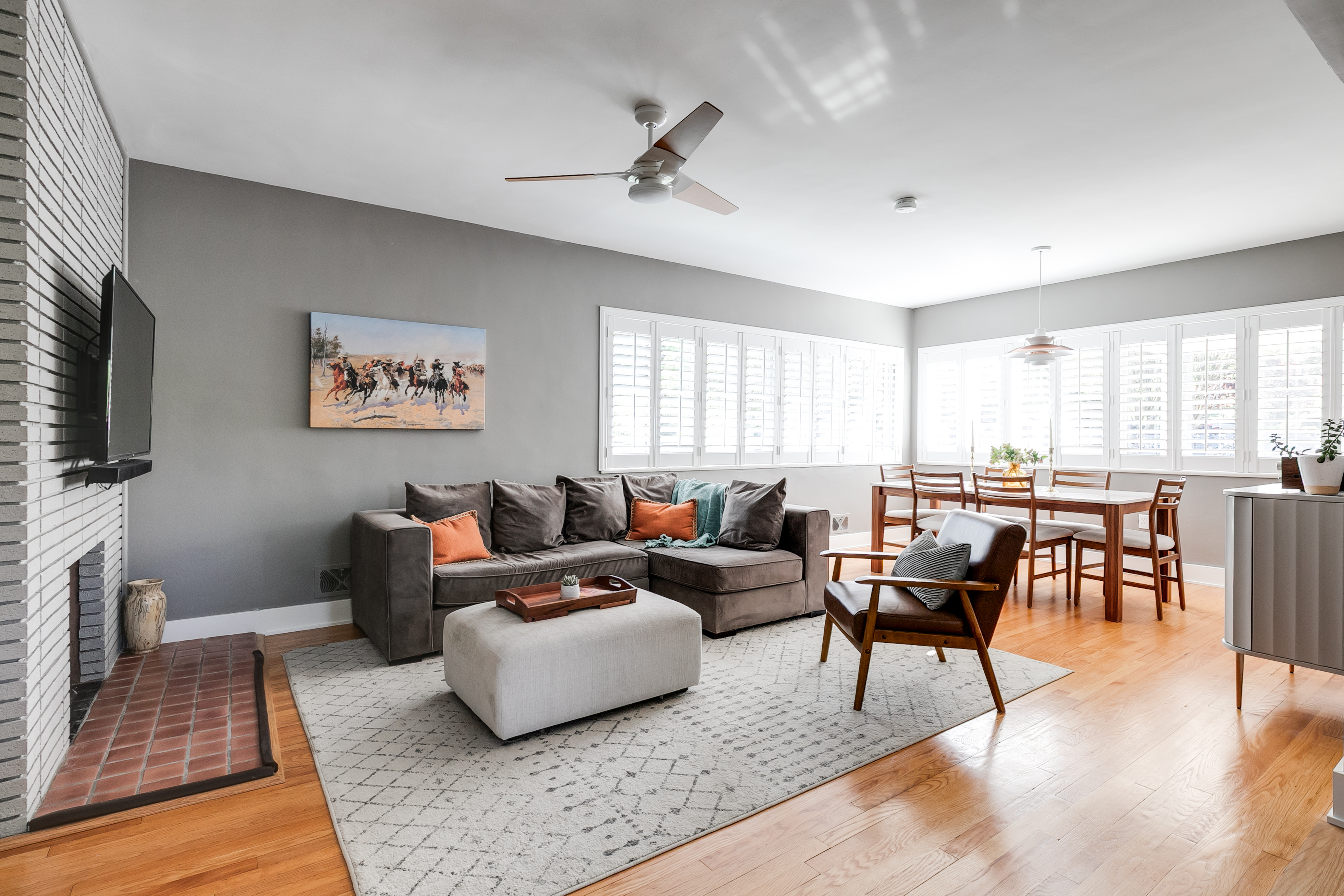 Discover the very picture of midcentury design thoughtfully reimagined to provide every modern amenity in the heart of Willow Lawn. This brick ranch with a finished walk out basement features original refinished hardwood floors, new windows, HVAC (2024 & 2025), water heater (2025), sump pump, electrical panel (2022) and fresh paint throughout. A statement fireplace serves as a stunning focal point from the open kitchen, living and dining room. The kitchen is a showpiece with custom Oxford blue and natural maple cabinetry with interior and under mount lighting, stainless Bosh appliances, induction cooking, Quartzite counters with a large central island and new but period appropriate lighting. The new owner will appreciate all of the thoughtful detail such as the solid core doors, granite window sills, intricate wainscoting and shiplap, new stair tresses, and gutter guards. The all season sunroom with French doors leads out to the Trex deck with retractable awning and fully fenced back yard. Downstairs provides a fully finished media lounge with new carpet, office, renovated half bathroom, laundry room and workshop with new vinyl flooring. This well laid out home is a dream come true. There's nothing left to do but move in and start your new life within blocks from Willow Lawn, Libby/Grove and Carytown's best shopping, groceries and restaurants.