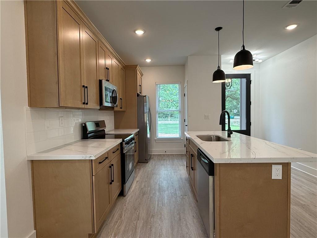Adorable 3-bedroom, 2-bathroom home for lease in the heart of Folsom! Move-in ready and offered at $2,000 per month with a $2,000 security deposit. LAWN CARE INCLUDED!! The open floor plan provides a comfortable layout for everyday living. The kitchen features a spacious island, stainless steel appliances, and a REFRIGERATOR IS INCLUDED. No carpet throughout makes for easy maintenance. The primary suite includes a walk-in closet, dual sinks, soaking tub, and separate walk-in shower. Enjoy a FULLY FENCED YARD, carport parking, and a back patio. Blinds are already installed. Located in a quiet setting while still being just minutes to Covington. Apply Here: https://apply.link/MvmsqPq