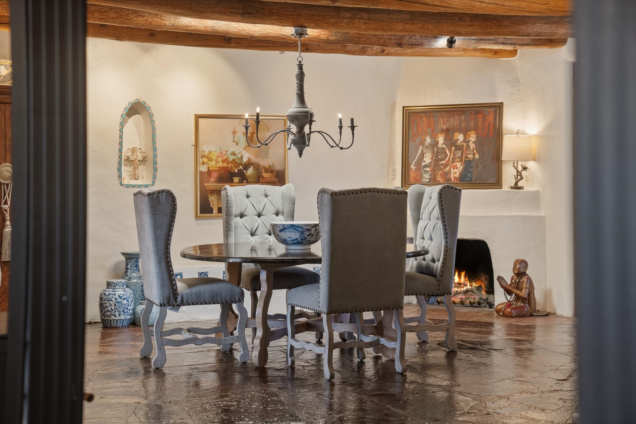 222 State Road 240 -Timeless charm and modern luxury in this stunning 4,030 sq. ft. adobe hacienda is a rare find in the highly desirable historic and agricultural Cordillera area of Ranchos de Taos. This serene setting is just 2 miles from Taos Plaza and 16 miles from the world class skiing of Taos ski valley. Spanish architecture has been blended with the influence of Taos Pueblo, (a Unesco world heritage site), and is reflected in the natural building materials , skylights, vigas, nichos, fireplaces and color palette. Original portion of the building is said to have been built in the 1800's several additions have followed, the largest in 1949 and 1977. This 3-bedroom, 3.5-bathroom hacienda sits on 3.34 serene acres, surrounded by mature trees, a traditional low adobe wall, and the natural beauty of the high desert. The acequia flows just near the back porch allowing for the tranquil sound of water to be enjoyed and used to keep the land lush. The outdoor living spaces have been carefully curated and invite entertaining or simple meditative space. From the moment you step inside, the home's character is unmistakable. Thick adobe walls, built-in storage, nichos, and five fireplaces infuse warmth and tradition throughout. The primary suite is a true retreat, complete with its own fireplace, an ensuite bathroom with a walk-in shower and separate tub, and an oversized closet with built-in storage. The home has undergone extensive updates while maintaining its historic integrity, making it a perfect property for short term rental. Turn key option is available, as well as a vintage Jaguar. The property has also received significant roof improvements, ensuring its longevity and durability. Beyond the main residence, an original studio with electricity offers endless possibilities as a creative workspace or private office. Additional outbuildings provide storage and functionality, while the sprawling acreage offers ample space for horses or future expansion. This extraordinary home embodies the essence of New Mexico's history, craftsmanship, and timeless appeal. If you've been searching for an authentic adobe estate with character, history, and modern conveniences, look no further - this is the one.