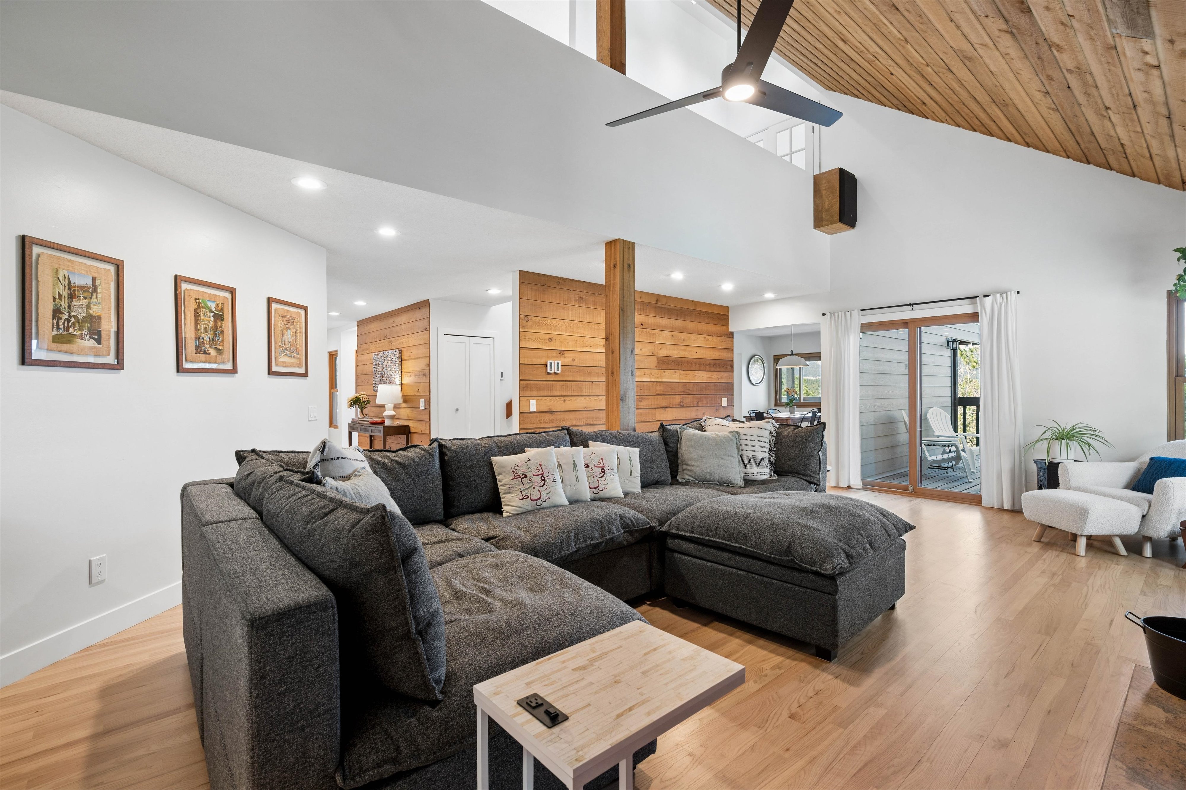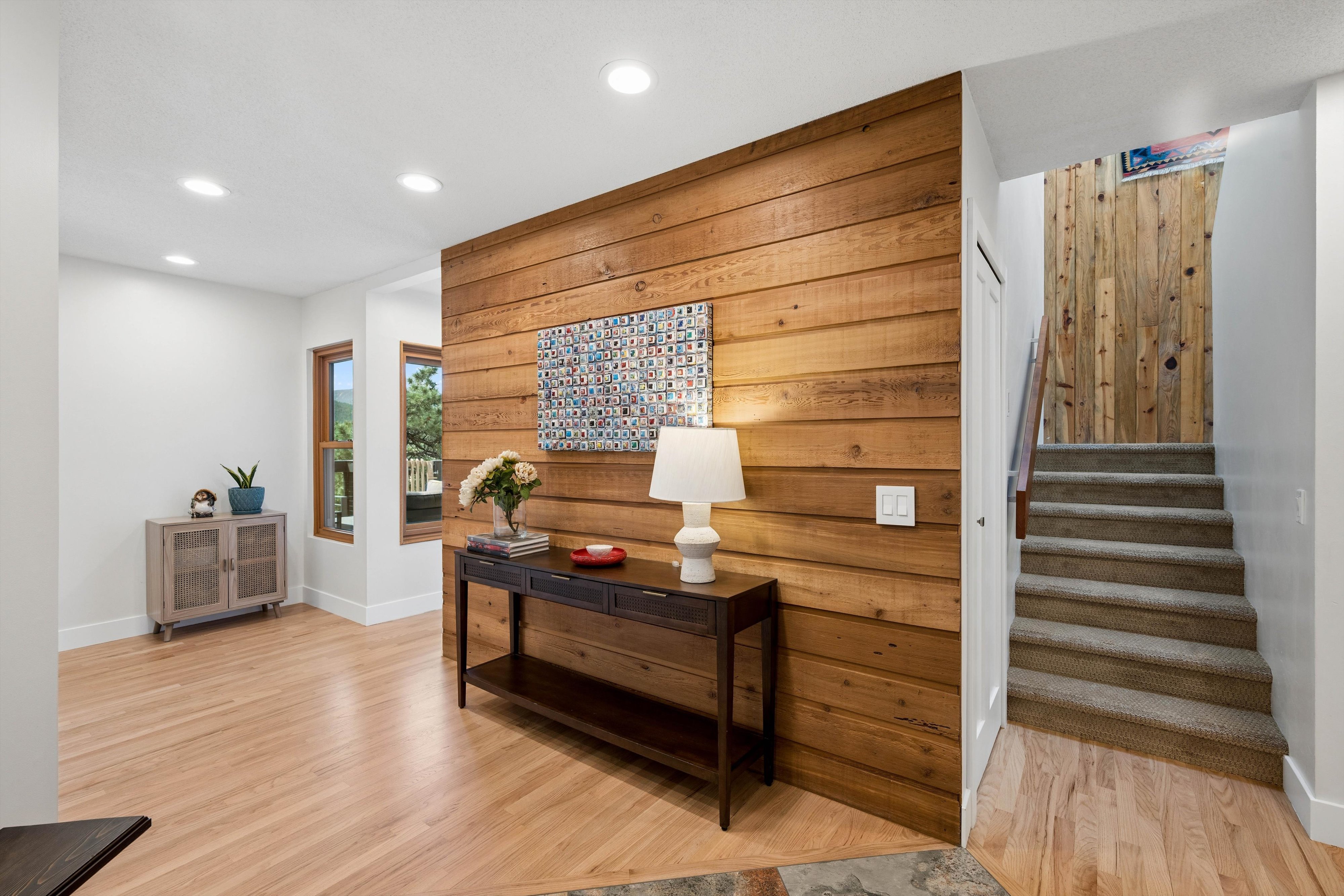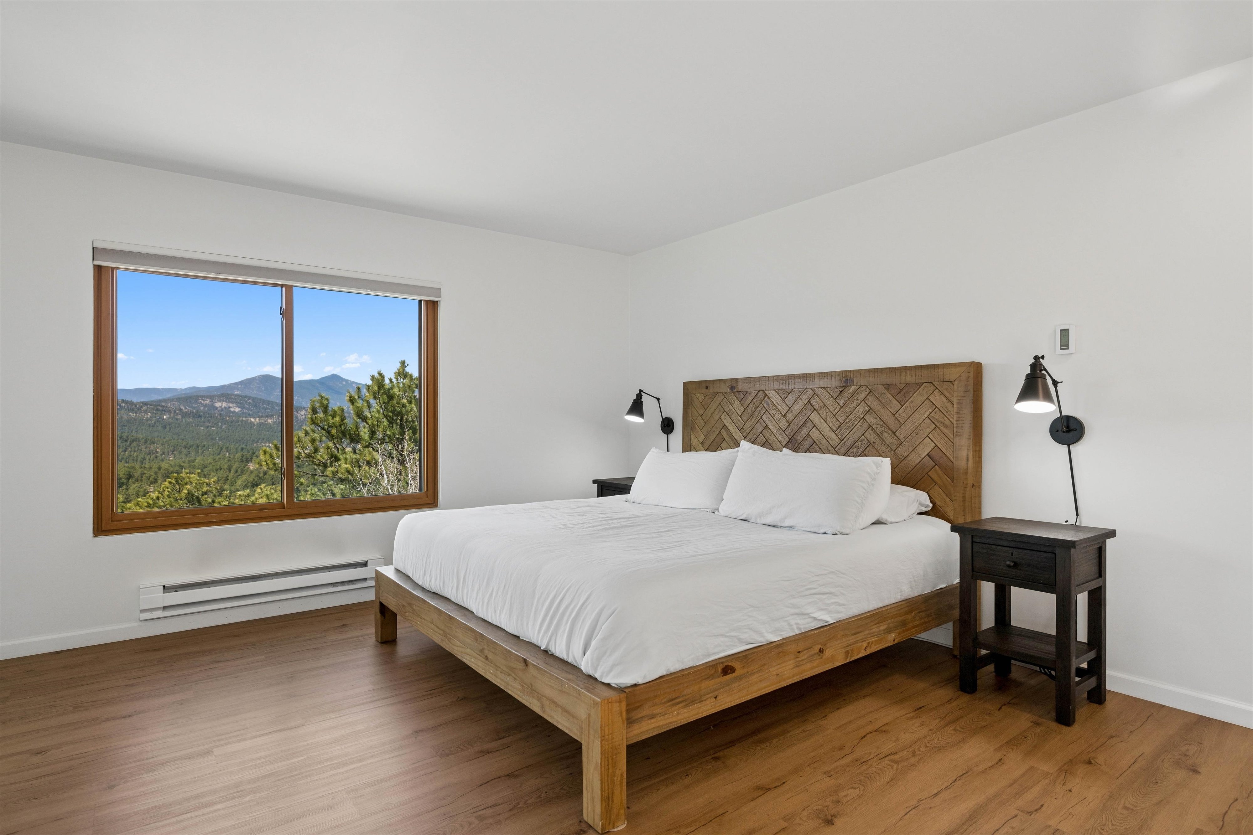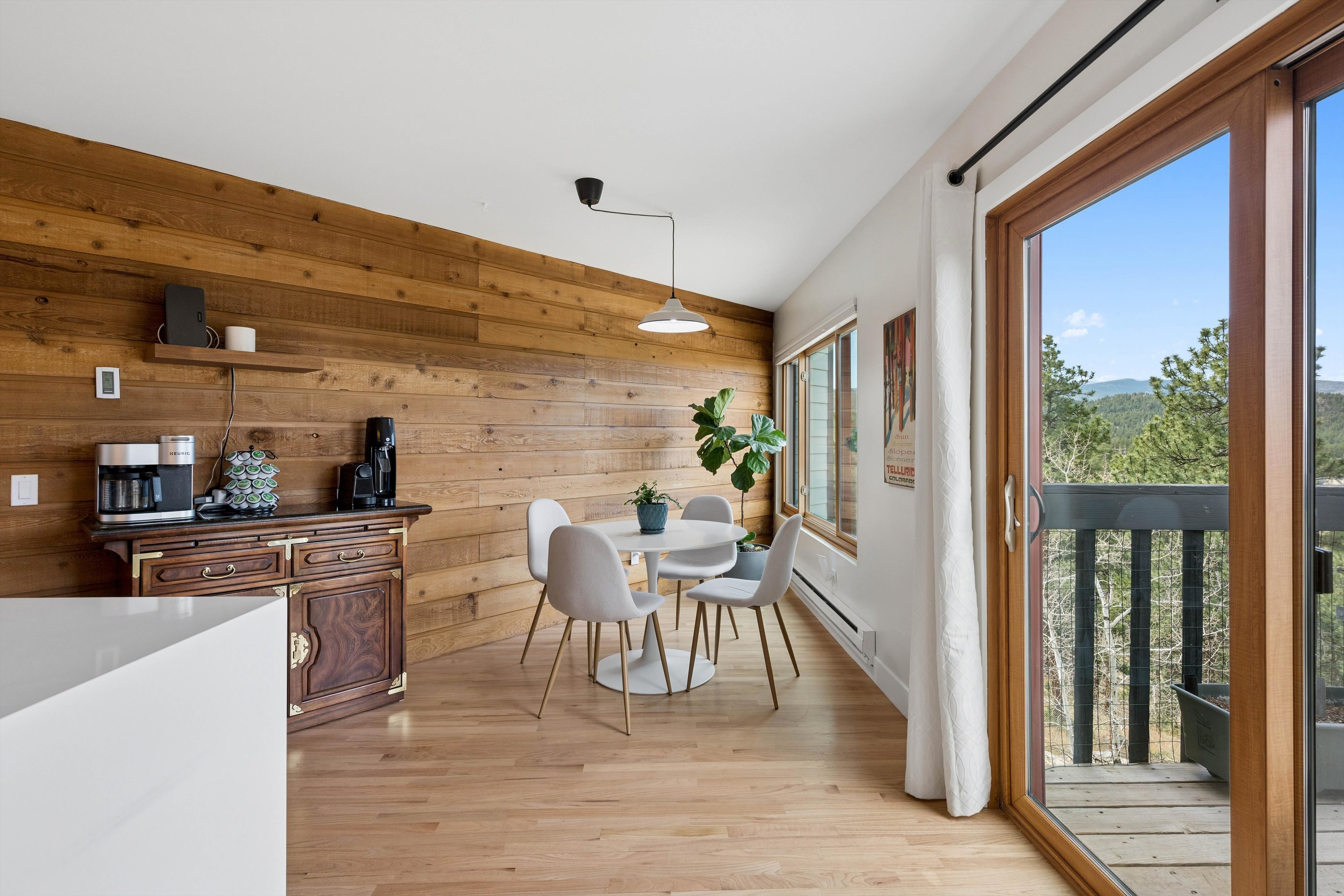 OPEN HOUSE Saturday, April 11, 11:00am-1:00pm. Experience refined mid-century inspired mountain living in this beautifully reimagined residence, privately set on 3.37 acres with sweeping panoramic views and a setting adjacent to open space. Thoughtfully updated while honoring its architectural character, the 3,769 sq ft home seamlessly blends rich natural textures, tongue-and-groove detail, and elevated modern finishes to create a warm yet sophisticated retreat. The designer kitchen serves as the centerpiece of the home, appointed with quartz countertops, an expansive island, stainless steel appliances, a sunlit breakfast nook, and fresh interior paint, all flowing effortlessly to multiple decks that invite indoor-outdoor living. The formal dining room is framed by breathtaking vistas, offering an unforgettable setting for elevated entertaining. The primary suite is a true sanctuary, featuring a spa-inspired en suite with stone surfaces, custom cabinetry, lighted mirrors, an oversized walk-in shower, and a spacious walk-in closet. A secondary bedroom and bath on the main level provide convenience for guests, while the upper-level loft offers a flexible space ideal for a private office or studio. Outdoor living is exceptional, with six distinct decks designed to capture the surrounding landscape and ever-changing mountain views. A separate lock-off studio with private entrance offers versatile use, complete with a kitchenette, lofted sleeping area with walk-in closet, living and dining space, and a ¾ bath—perfect for extended stays, creative pursuits, or private guest accommodations. Extensive upgrades include triple-pane windows, durable Hardie board siding, and thoughtfully integrated built-ins throughout. The property is further enhanced by a 3-car attached garage, generous off-street parking, and a rare combination of privacy and accessibility just minutes from the heart of Evergreen and Evergreen Lake.