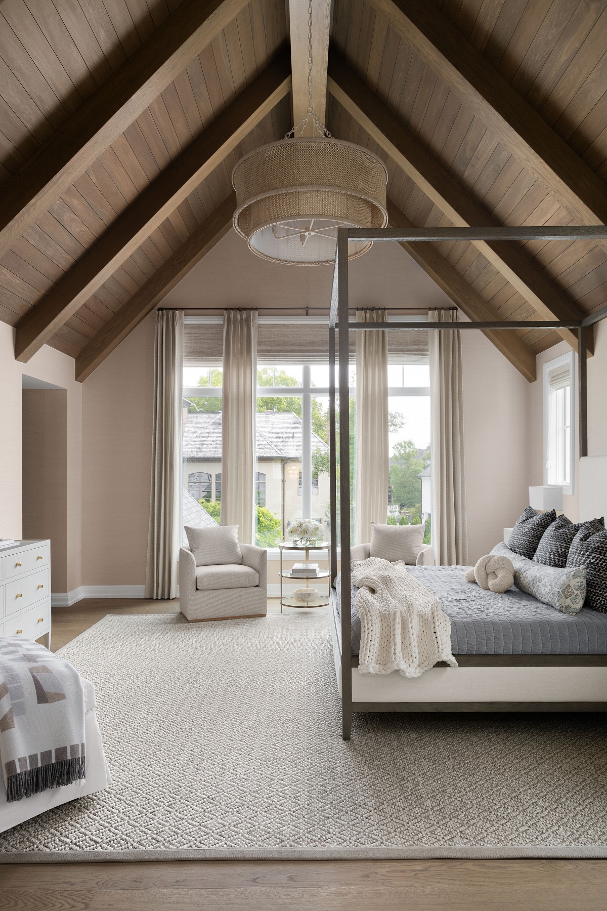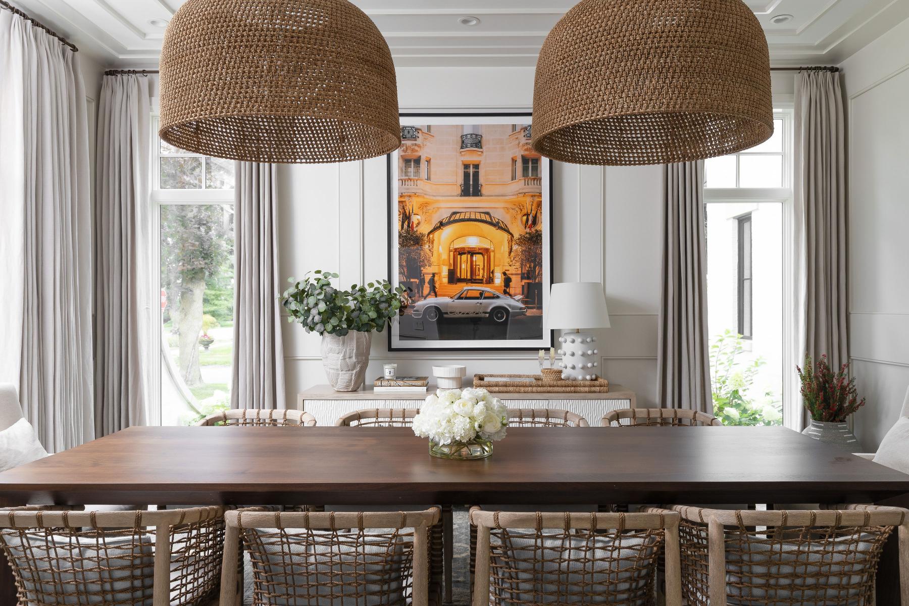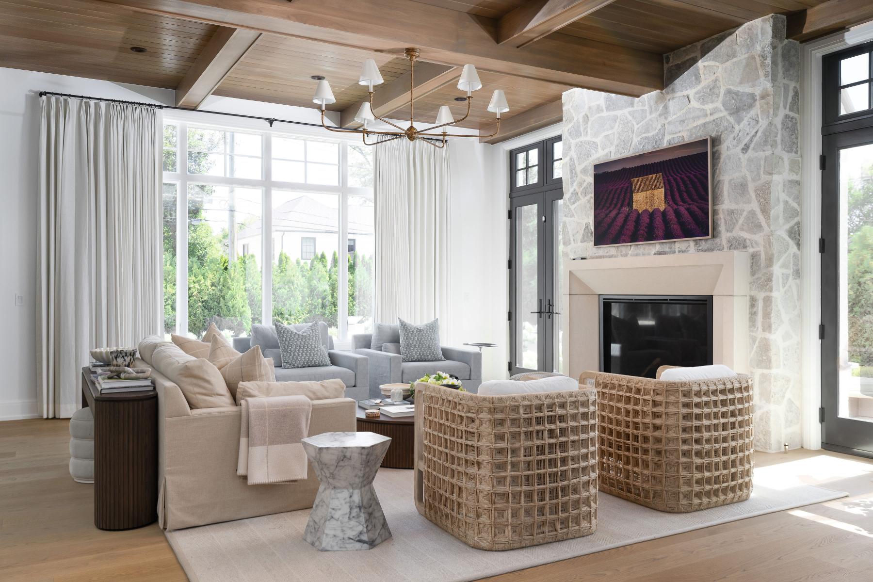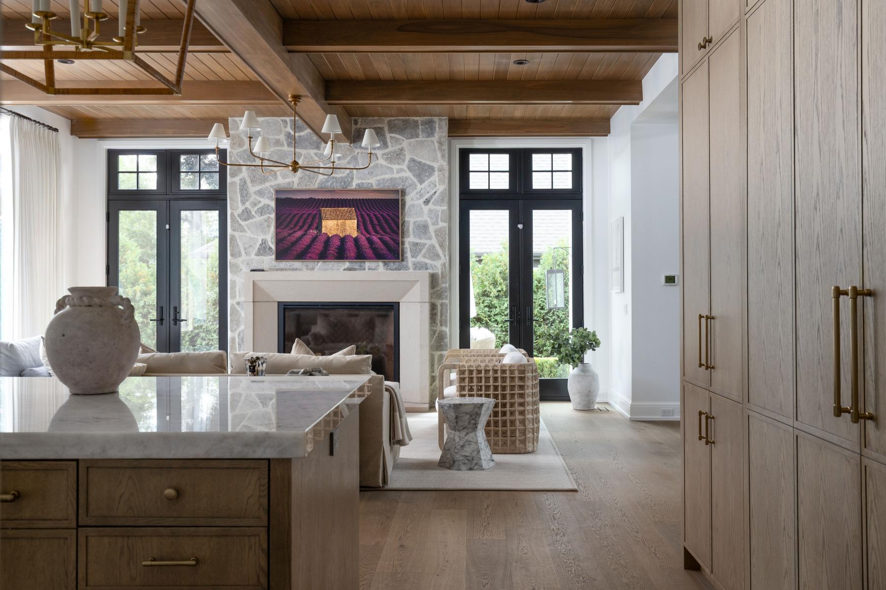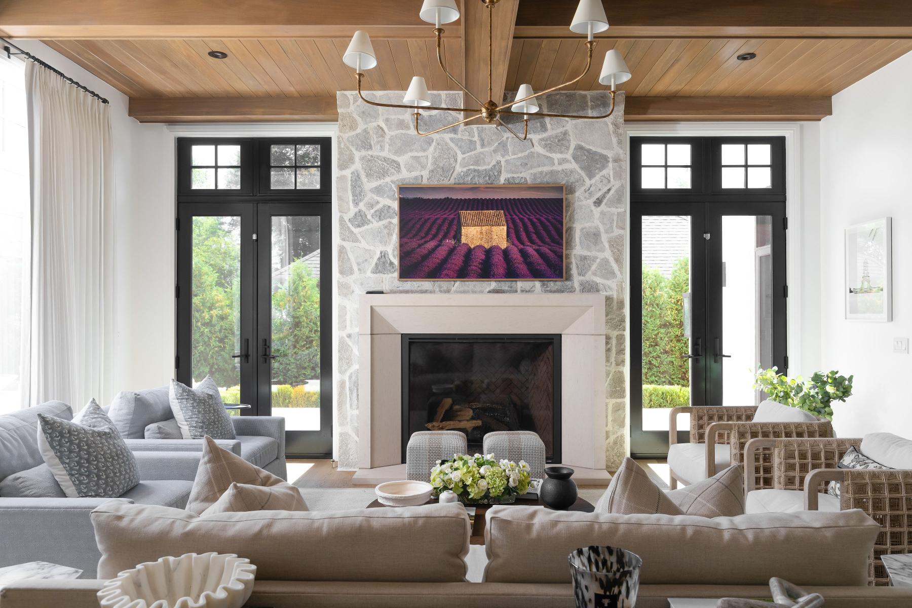 Built in 2023 by renowned builder Hunter Roberts, this 6-bedroom, 7.1-bath home spans over 8,000 square feet including the finished lower level, and was designed by award-winning architect Brian Neeper with interiors by Jessica Neeper. Featured in Twenty Magnificent Homes by Midwest Architects and recognized with multiple Detroit Design awards, the home reflects a balance of modern design and timeless craftsmanship, tailored for both everyday living and refined entertaining. A thoughtfully executed layout unfolds with intention, beginning with a distinctive circular entry that sets the tone for the home’s architectural flow. Expansive living spaces are defined by layered ceiling details, curated materials, and designer fixtures. The kitchen anchors the main level with quartzite surfaces, custom cabinetry, and premium appliances, seamlessly connected to the formal dining room through a butler’s hall. The living room is elevated by a striking stone fireplace with a full-height fieldstone chimney and wood-paneled coffered ceilings, while a detailed library offers a more intimate retreat. Upstairs, the primary suite features vaulted ceilings with exposed beams and oak detailing, paired with a spa-like bath and spacious dual closets. Additional ensuite bedrooms, a loft with integrated workspace, and a dedicated laundry room with dual washer and dryer units enhance functionality. The lower level extends the living space with a recreation area, wet bar, temperature-controlled wine room, fitness room, and guest suite. The exterior living is as compelling as the interior. A resort-style backyard features a pool with stone surround, lush landscaping, and a covered outdoor kitchen. Positioned within Quarton Lake Estates, just minutes from downtown Birmingham, parks, and everyday amenities, this home offers a connected lifestyle without compromising privacy.