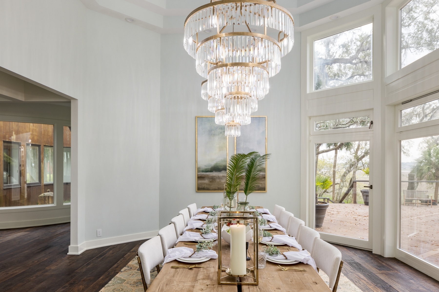 A private dock extends into the tidal creek, opening the door to boating, fishing, and days spent exploring the surrounding waterways of the Lowcountry.