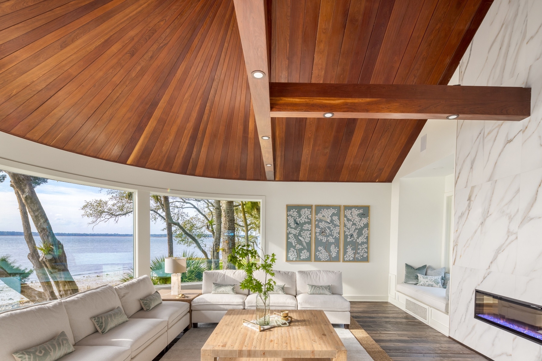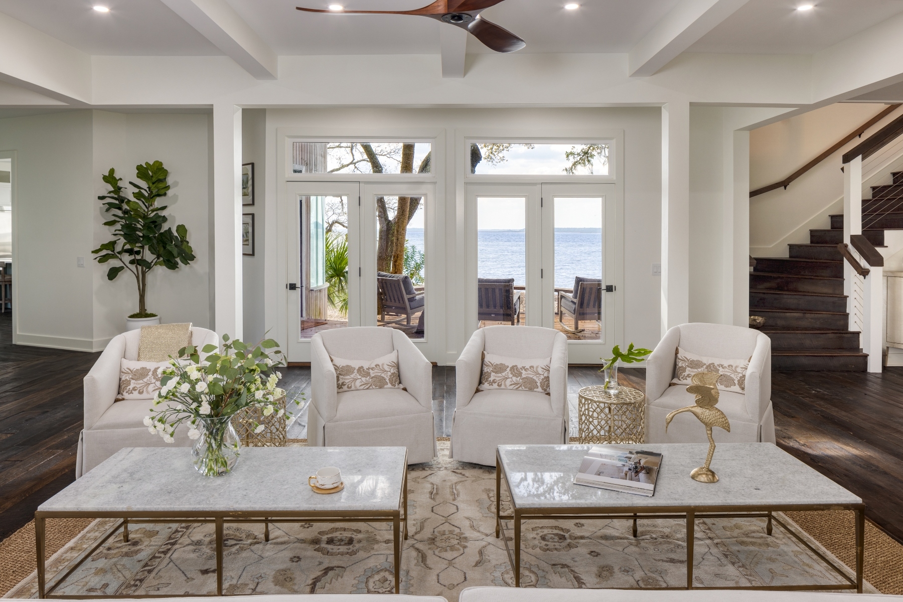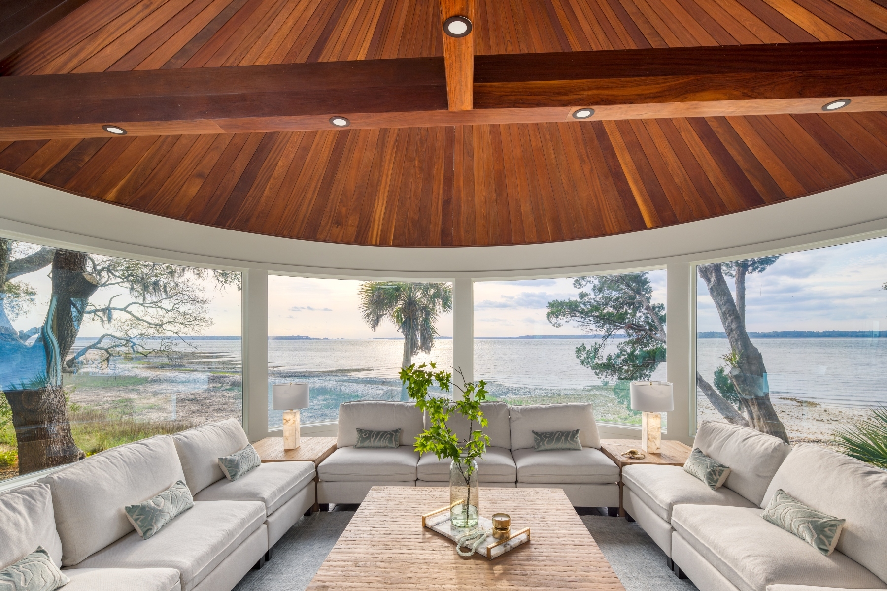 The main residence offers five beautifully appointed bedroom suites and expansive living spaces framed by walls of glass, allowing natural light to pour in while capturing uninterrupted views of marsh and water. The interiors strike a thoughtful balance - elevated yet relaxed, refined without ever feeling formal.