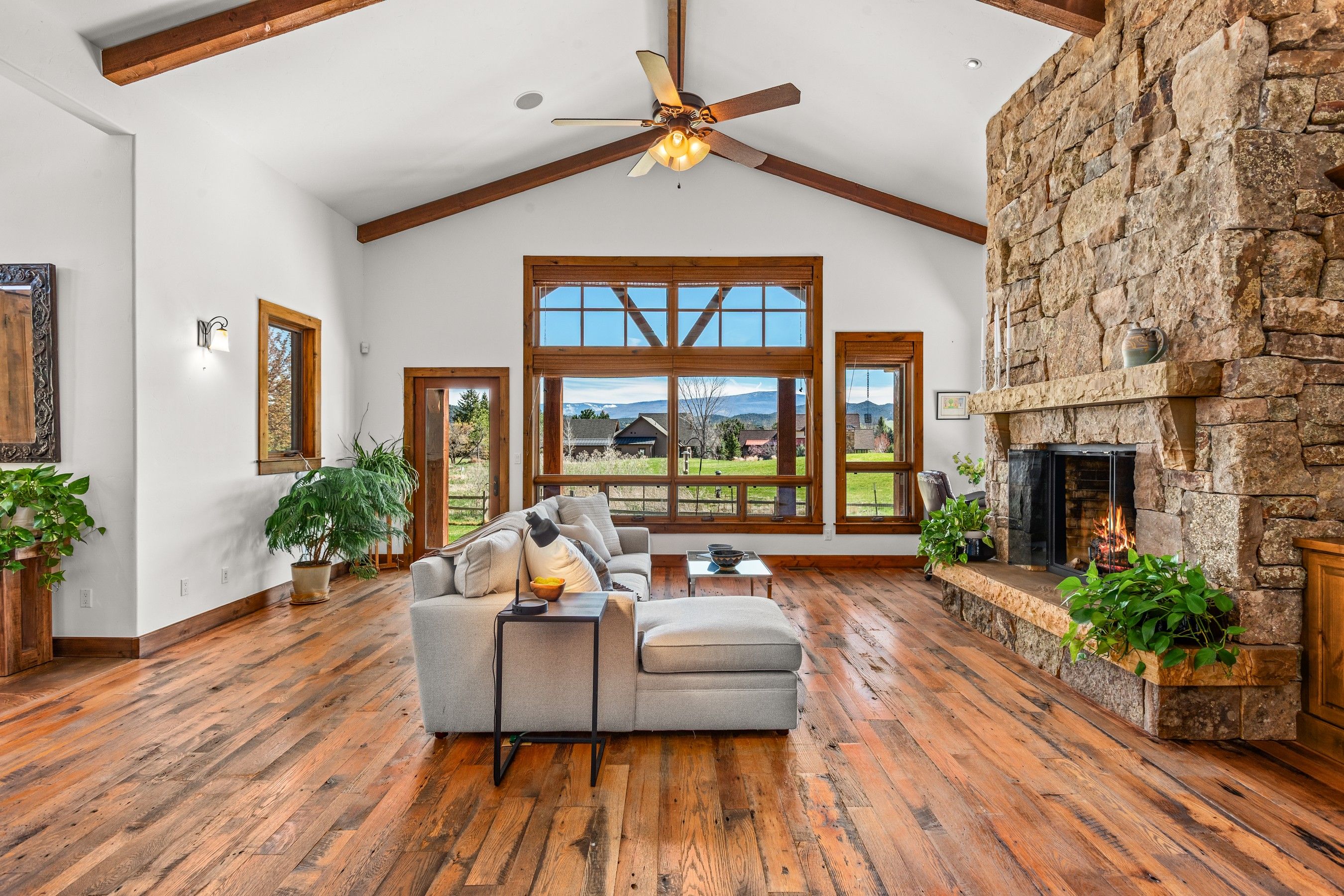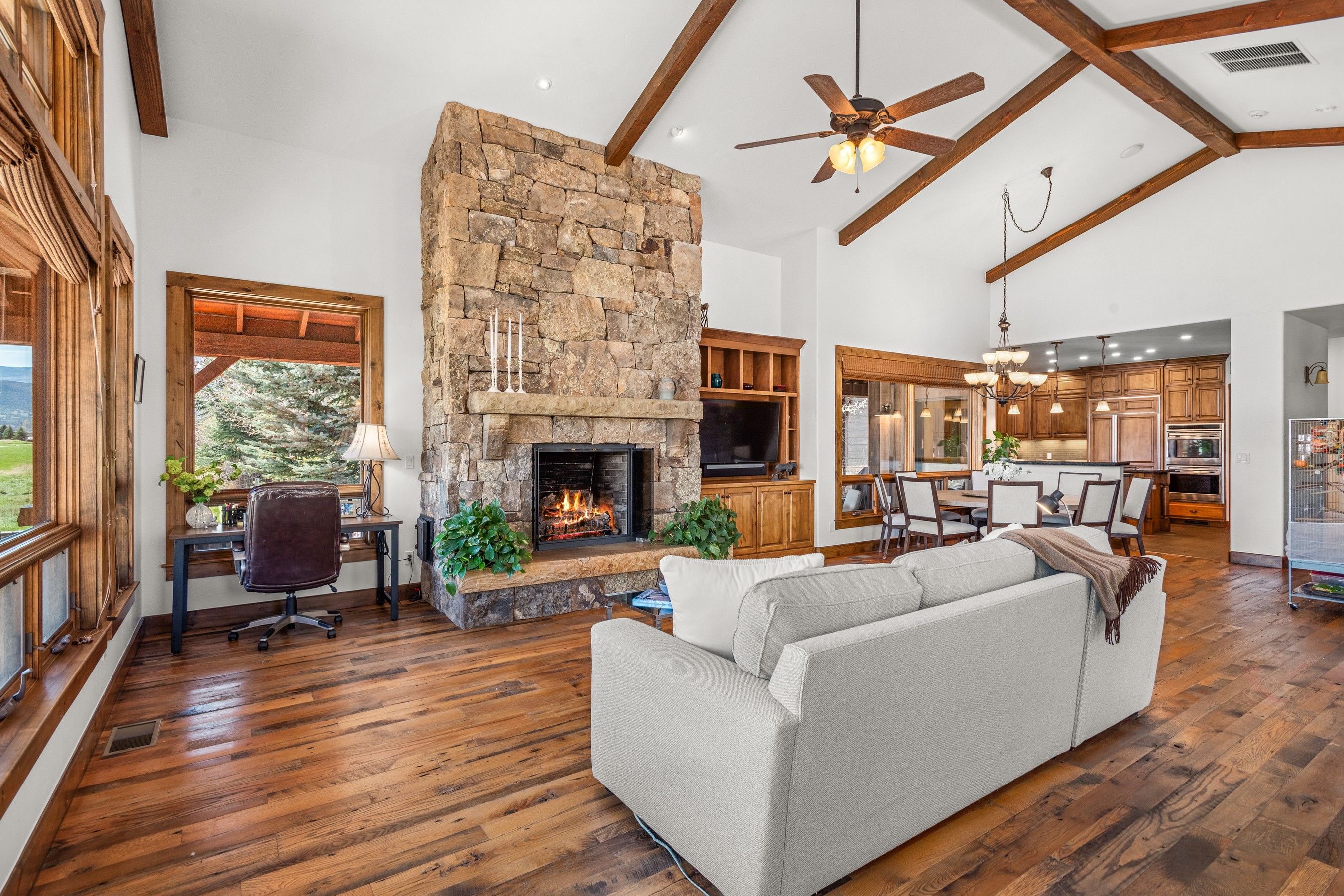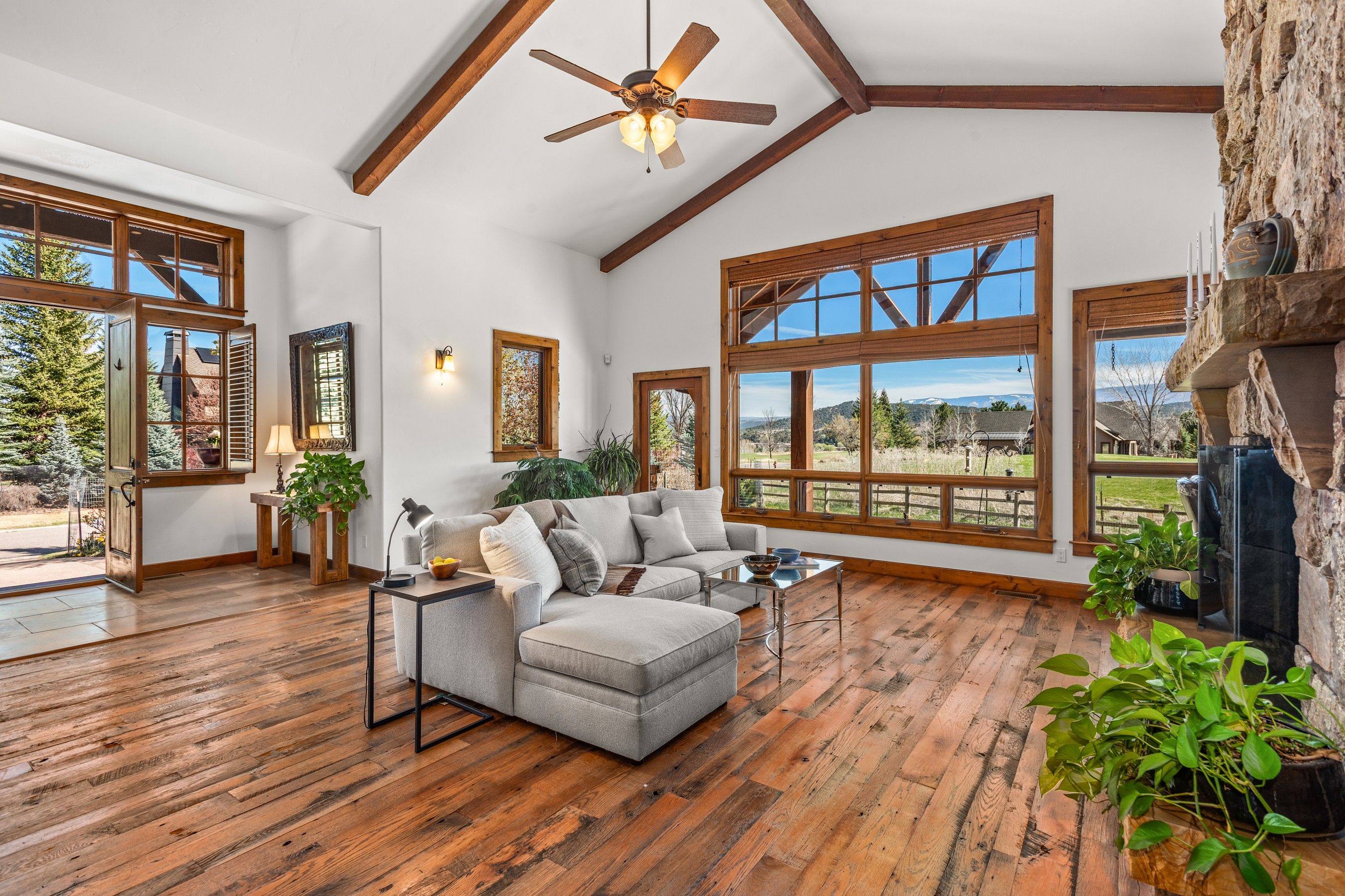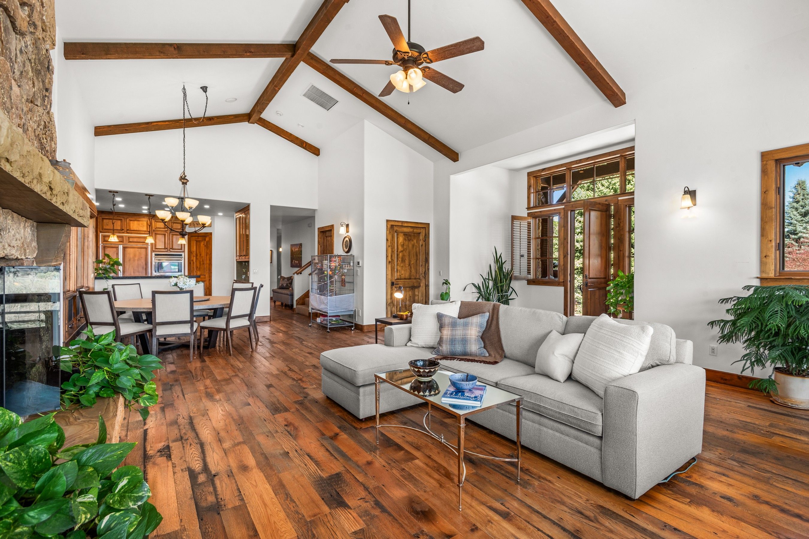 Timeless custom home located on a corner homesite overlooking the 14th green of the River Valley Ranch golf course. Inviting custom wood flooring, built-in cabinets, and exquisite stonework throughout. Elegantly constructed with 5 bedrooms, 5 bathrooms, office, and an open floor plan with a main level primary bedroom. Stunning views of Prince Creek Meadows, Basalt Mountain, Mt. Sopris, and Red Hill.