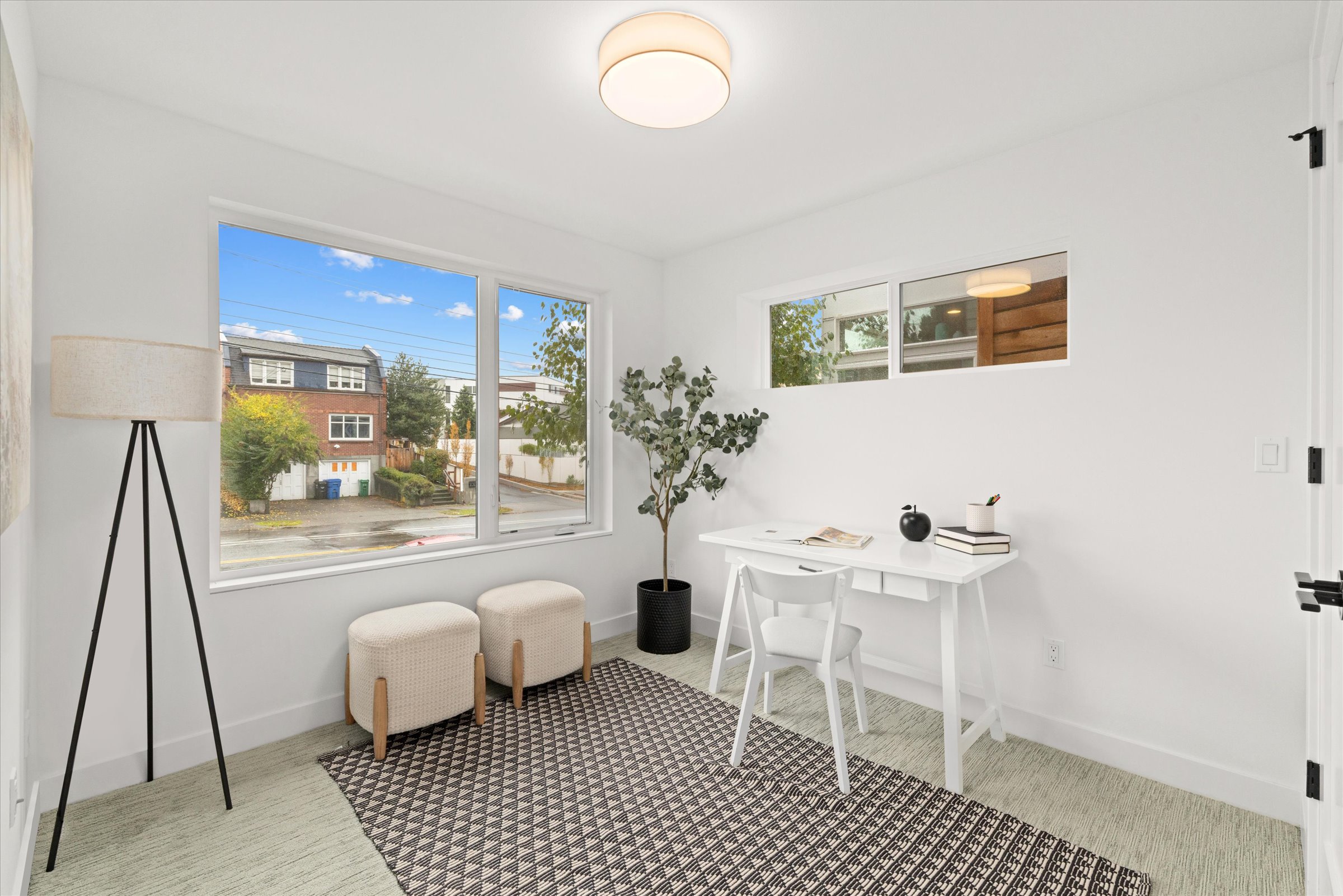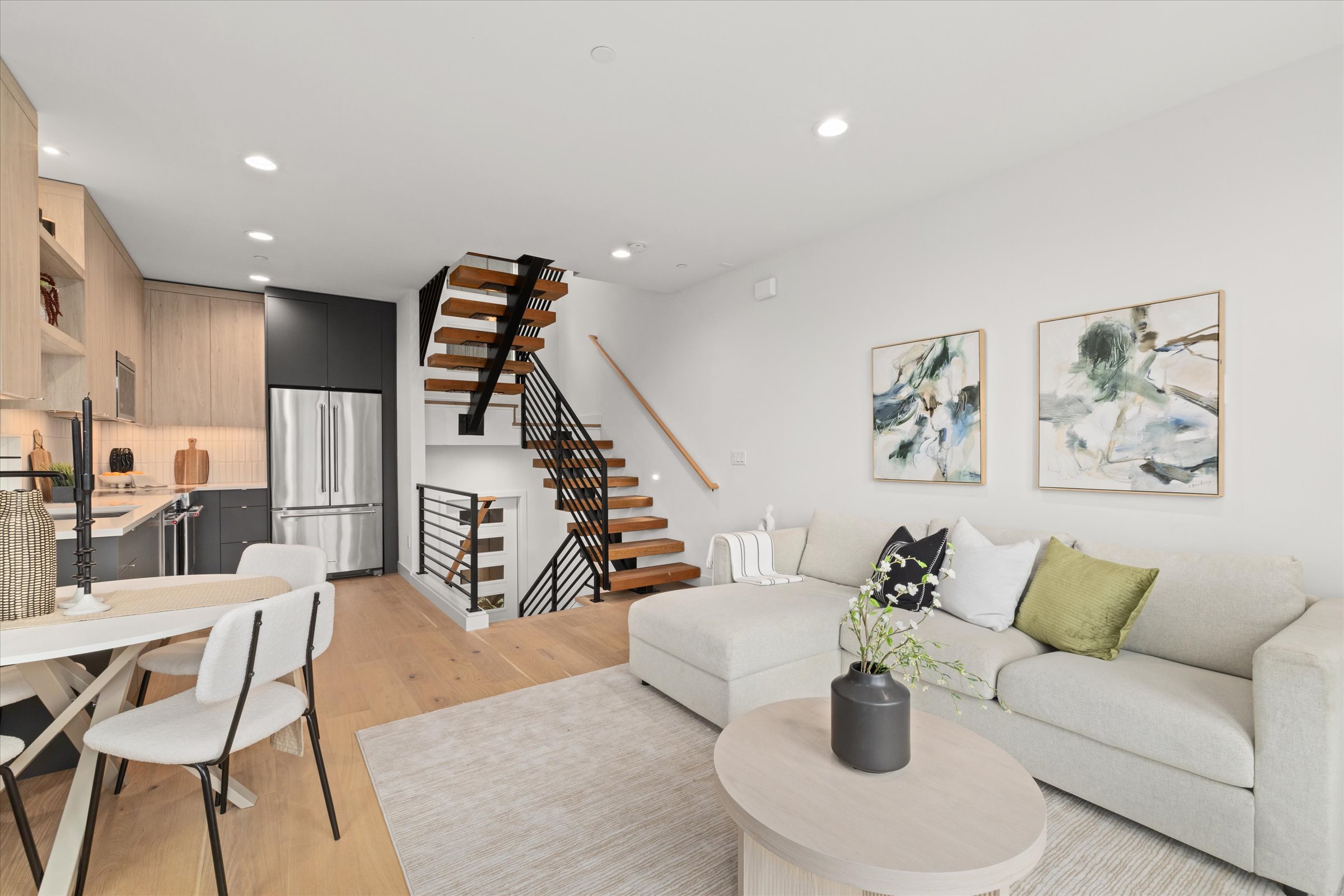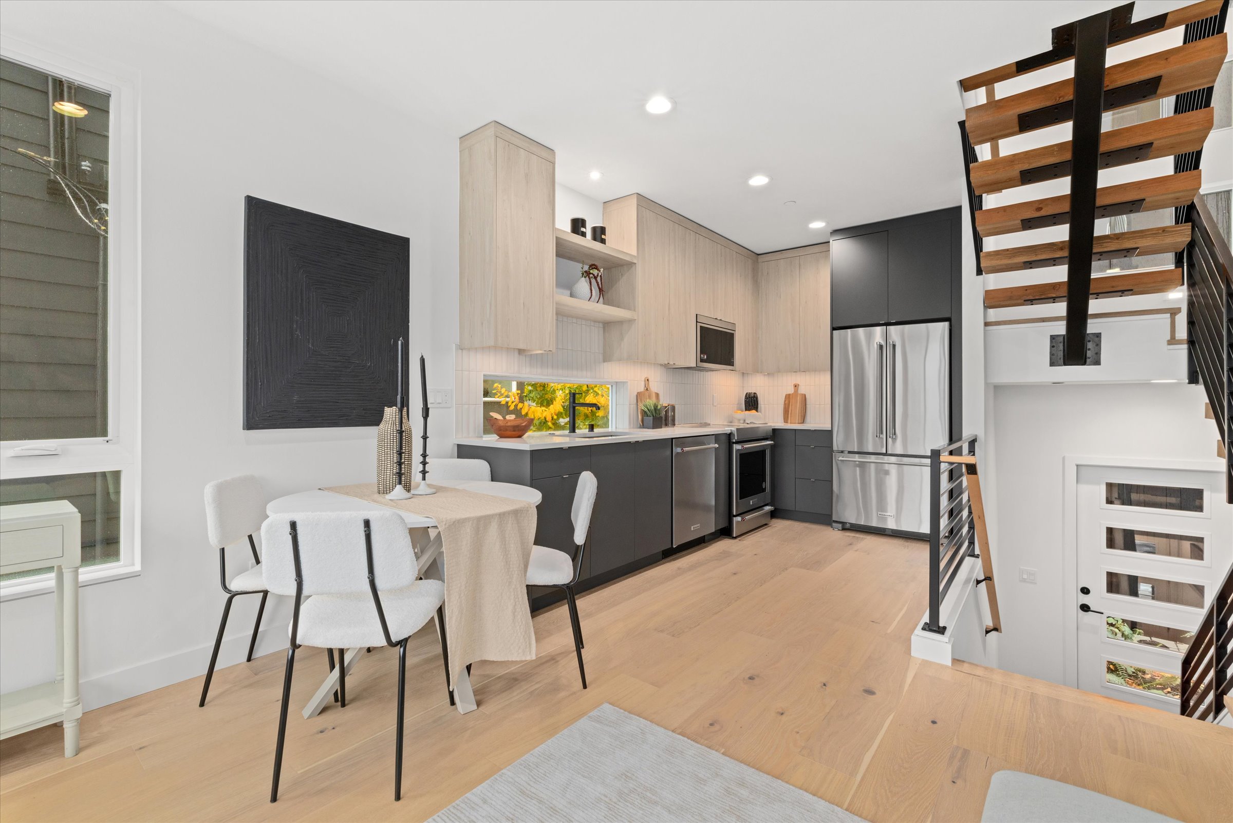 Right where Westlake hits its stride, this home puts you minutes from Lake Union, SLU, and the neighborhood’s go-to cafés and waterfront paths. Head up to your private rooftop deck for front-row views of the lake and skyline—sunsets, city lights, and long summer nights built for hosting. Inside, the layout is open, bright, and dialed for real life. Three well-sized bedrooms pair with a connected main level that keeps everything flowing. The kitchen is clean and modern with a social feel, while the floating open-tread staircase adds a sharp architectural edge. A flexible den gives you options—WFH, workout space, or reading nook. Comfort is handled with zoned heating and A/C, and the rest is just easy: covered EV-ready parking, WA/DR included, engineered hardwoods, and smart storage throughout. Clean design, strong location, and a Westlake lifestyle that speaks for itself.