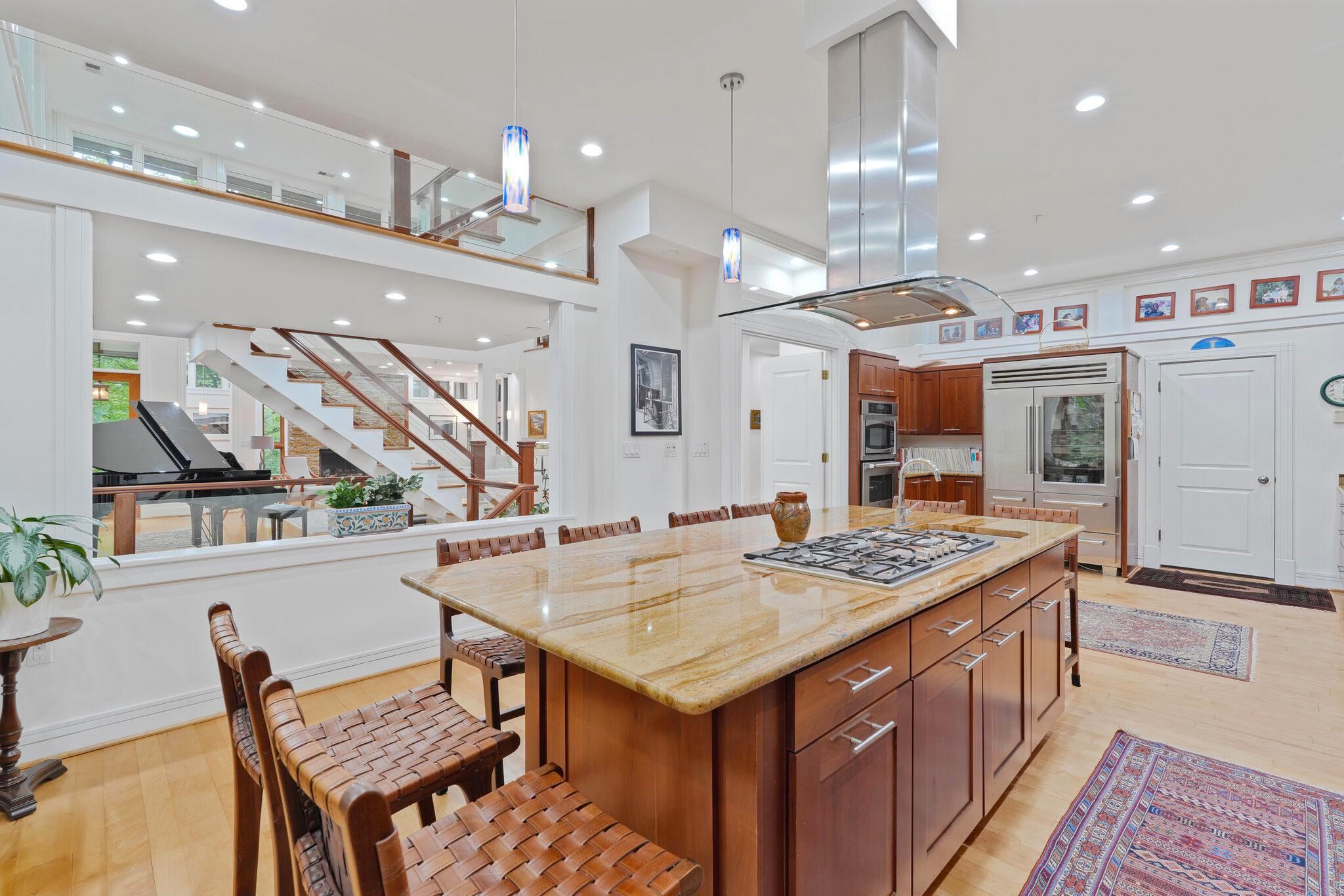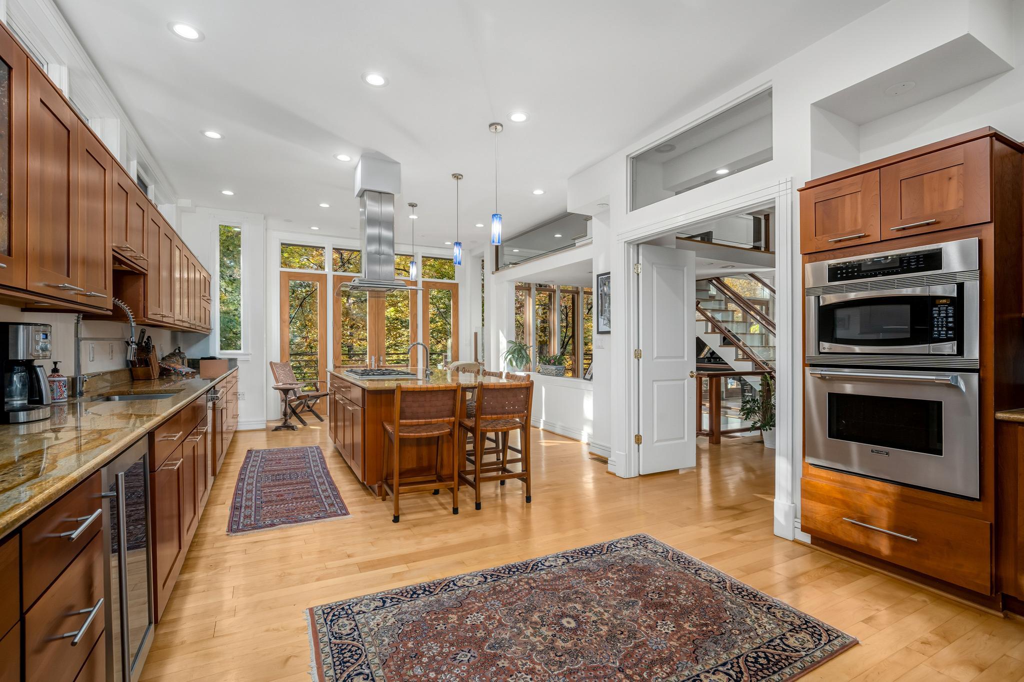 Open House, Sunday [4/12], from 1pm to 3pm Now positioned at $3,995,000, this masterfully designed residence at the quiet end of a cul-de-sac bordering Rock Creek Park appears to emerge from the landscape itself. From the front approach, its restrained roofline, horizontal brickwork, and natural materials convey a calm order, an urban reflection of the organic principles advanced by Frank Lloyd Wright, and it features an elevator to all levels. The home feels timeless and assured, grounded in Washington’s built tradition yet oriented to the forest beyond.At the rear, the façade becomes a masterclass in the fusion of dwelling and wooded landscape. Expanses of glass and carefully scaled terraces dissolve the boundary between structure and setting, allowing nature to animate the interior throughout the day.Inside, the design by Travis Price, FAIA unfolds as a study in movement and light. A double-height great room anchors the plan, framed by floating landings and structural glass that draw natural light through every level. The arrangement creates a seamless progression from open gathering spaces to quieter moments of retreat, each revealing a distinct relationship to the wooded setting. Rooms adapt in purpose and scale, including a study or studio, a guest suite, a den that opens to a terrace, or a lower level designed for wellness and work.Throughout, materials remain honest and enduring, with brick, glass, steel, and wood in balanced proportion. Every element serves the experience of living within the space rather than beside it.The result is a home of enduring calm and presence, modern in spirit, profoundly connected to nature, and perfectly situated along one of the city’s most treasured park-front settings.