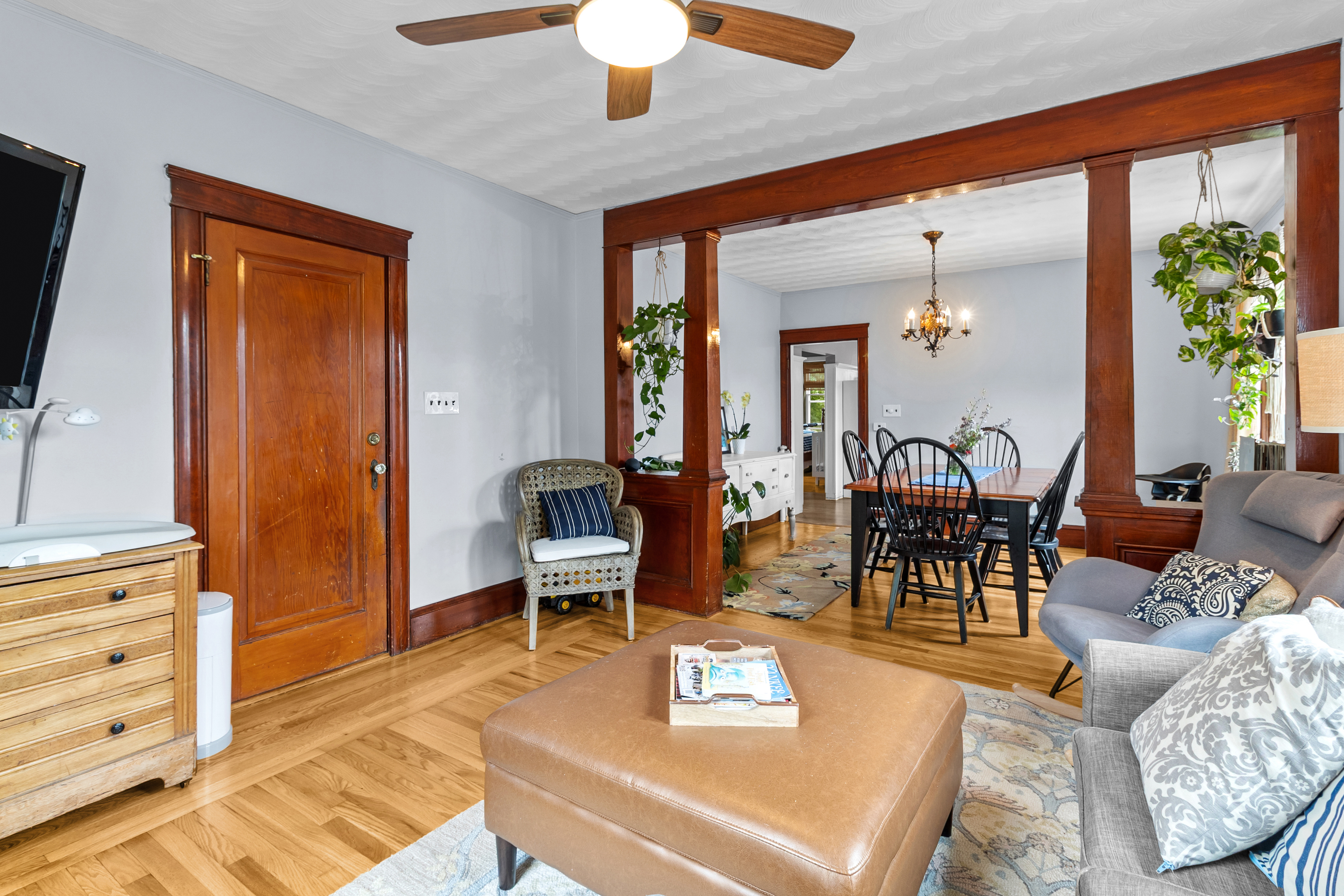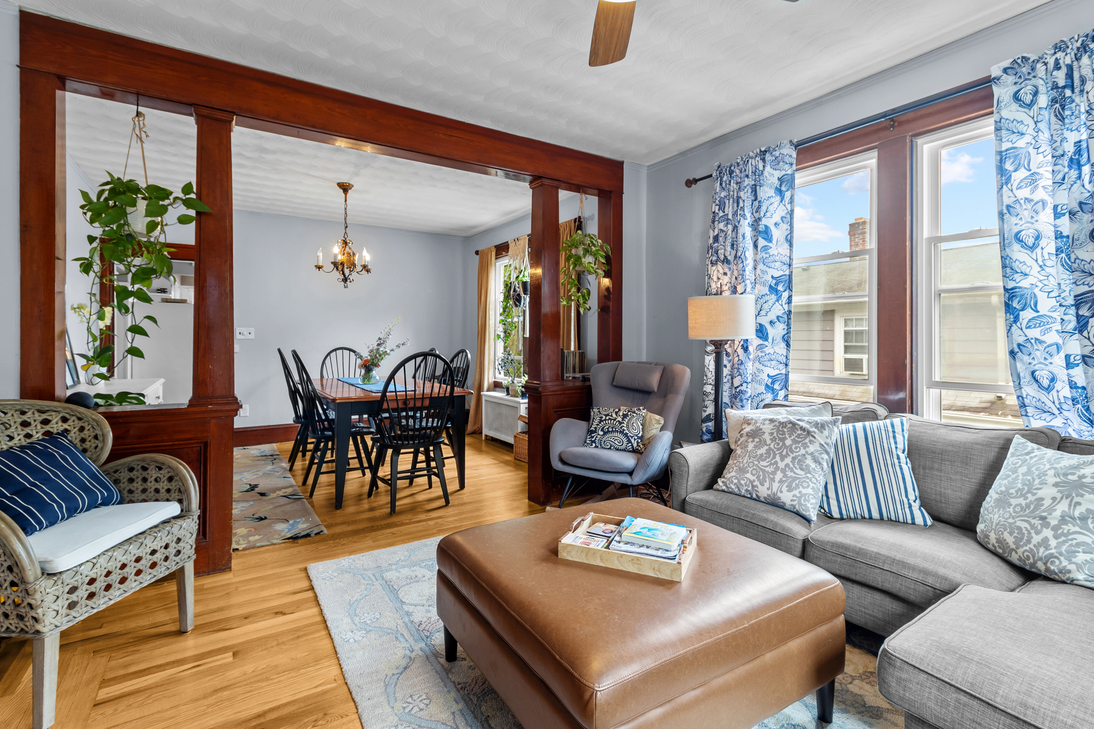 Located in the desirable Elmhurst section of Providence, this well-maintained two-family home on Pleasant Valley Parkway offers charm, character, and excellent owner-occupant or investment potential. Both units feature beautiful original details that reflect the home's timeless craftsmanship, along with enclosed porches that provide additional living space and year-round enjoyment. Each unit offers 2 spacious bedrooms and 1 full bath, complemented by gleaming hardwood floors and abundant natural light throughout. Additional highlights include 2 gas heating systems, separate laundry and storage space in the basement and a detached 2-car garage. Updates within the last 3 years include new butcher block countertops in the 1st floor, fresh paint throughout interior and the exterior and new LVP flooring in the kitchens. Fantastic opportunity in one of Providence's most sought-after neighborhoods.