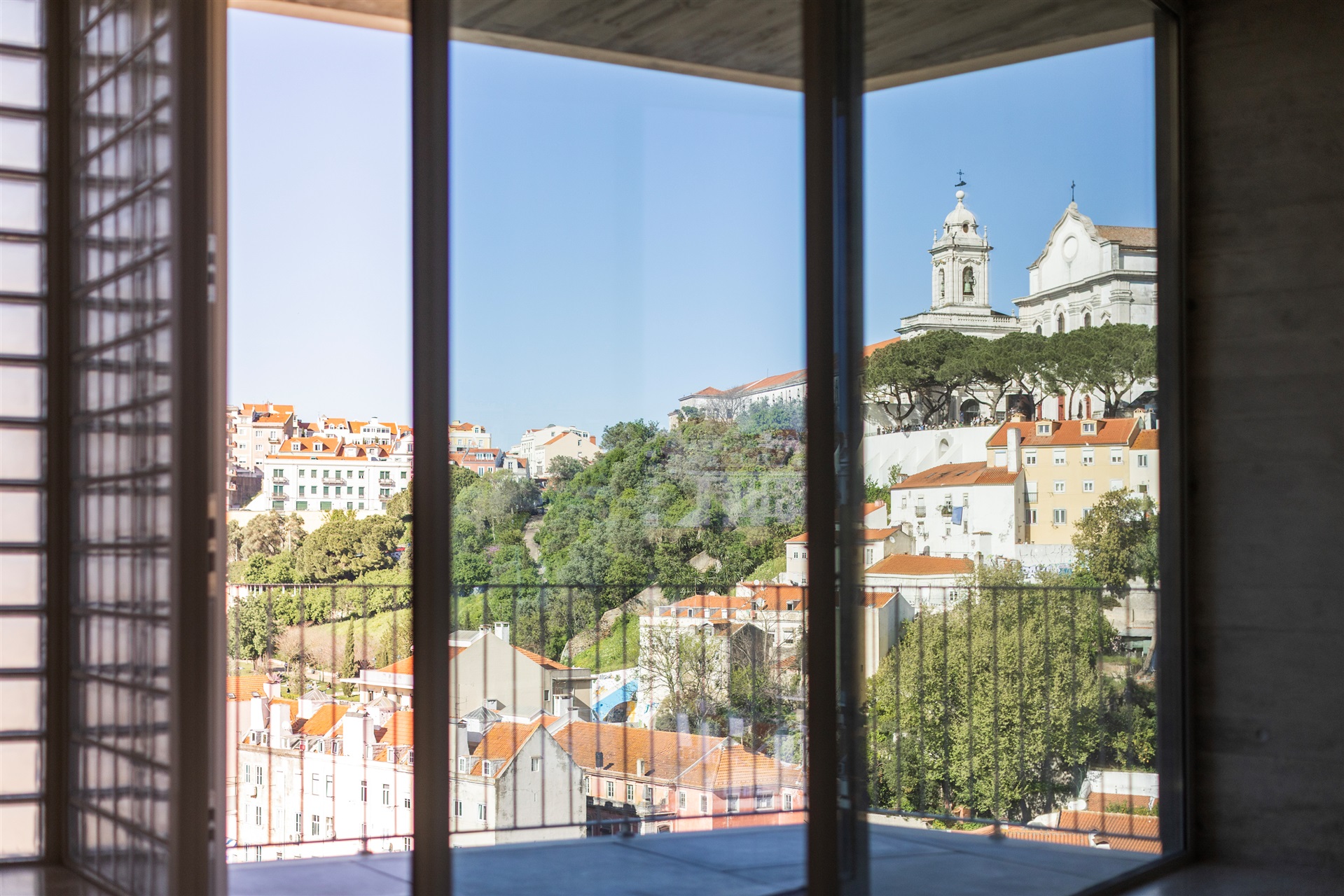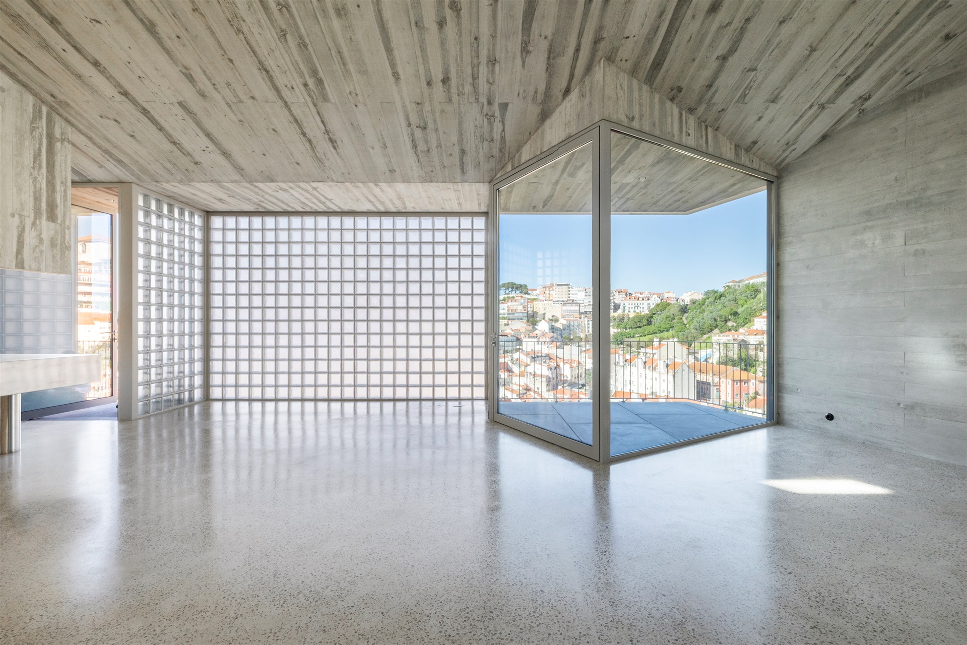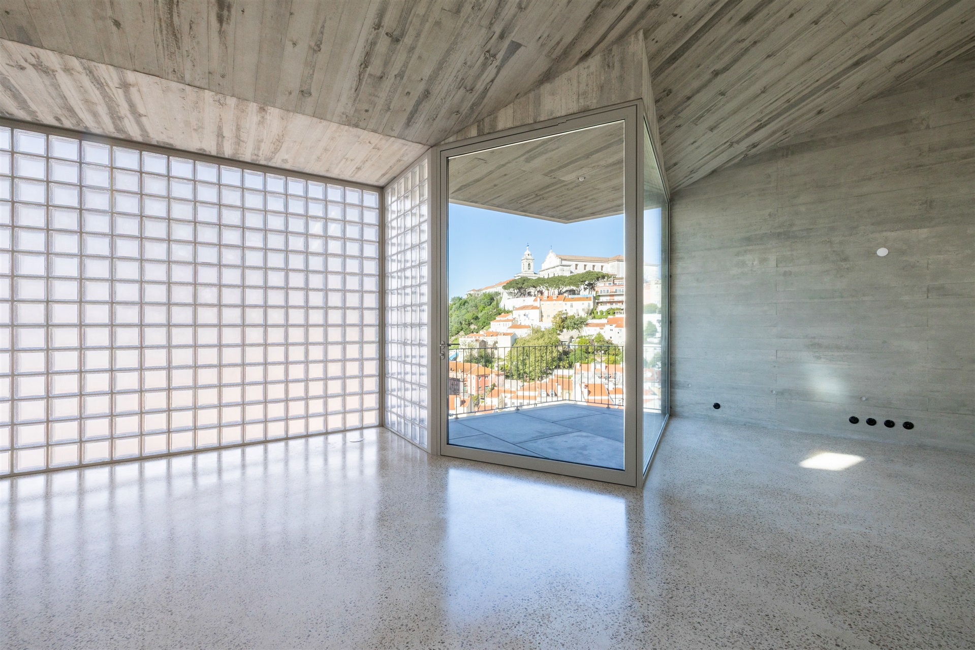 At the heart of one of Lisbon’s most emblematic neighborhoods, this exceptional two-bedroom apartment offers a rare fusion of architectural boldness and contemporary elegance. Set along a historic street tracing the ancient walls of São Jorge Castle, and just moments from the iconic Graça Church, the property forms part of an exclusive and intimate development of only three independent residences — each conceived as a private home of singular character. Fully reimagined under the direction of architect Pedro Domingos, the building expresses a strong architectural identity, where geometric forms meet a refined brutalist aesthetic. A curated palette of noble materials — exposed concrete, natural pine wood, Carrara marble, marmorite, and iron — is presented in its purest and most sophisticated expression. Bathed in natural light, the apartment benefits from meticulously designed openings and skylights that sculpt the interior volumes throughout the day. Expansive metal-framed windows extend the living spaces onto a balcony, revealing breathtaking panoramic views over Lisbon’s rooftops. From sunrise to sunset, the scenery transforms into a living masterpiece, with the silhouette of Graça and the vibrant rhythm of the city as a constant backdrop. Located just steps from Teatro Taborda, the property enjoys a setting that is both culturally rich and authentically serene. The street’s restricted access ensures privacy, tranquility, and an exclusive residential atmosphere. A truly rare opportunity — offering a distinctive lifestyle in one of Lisbon’s most sought-after locations.
