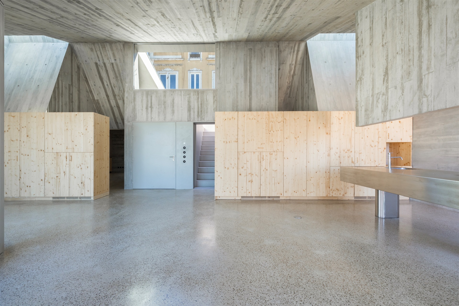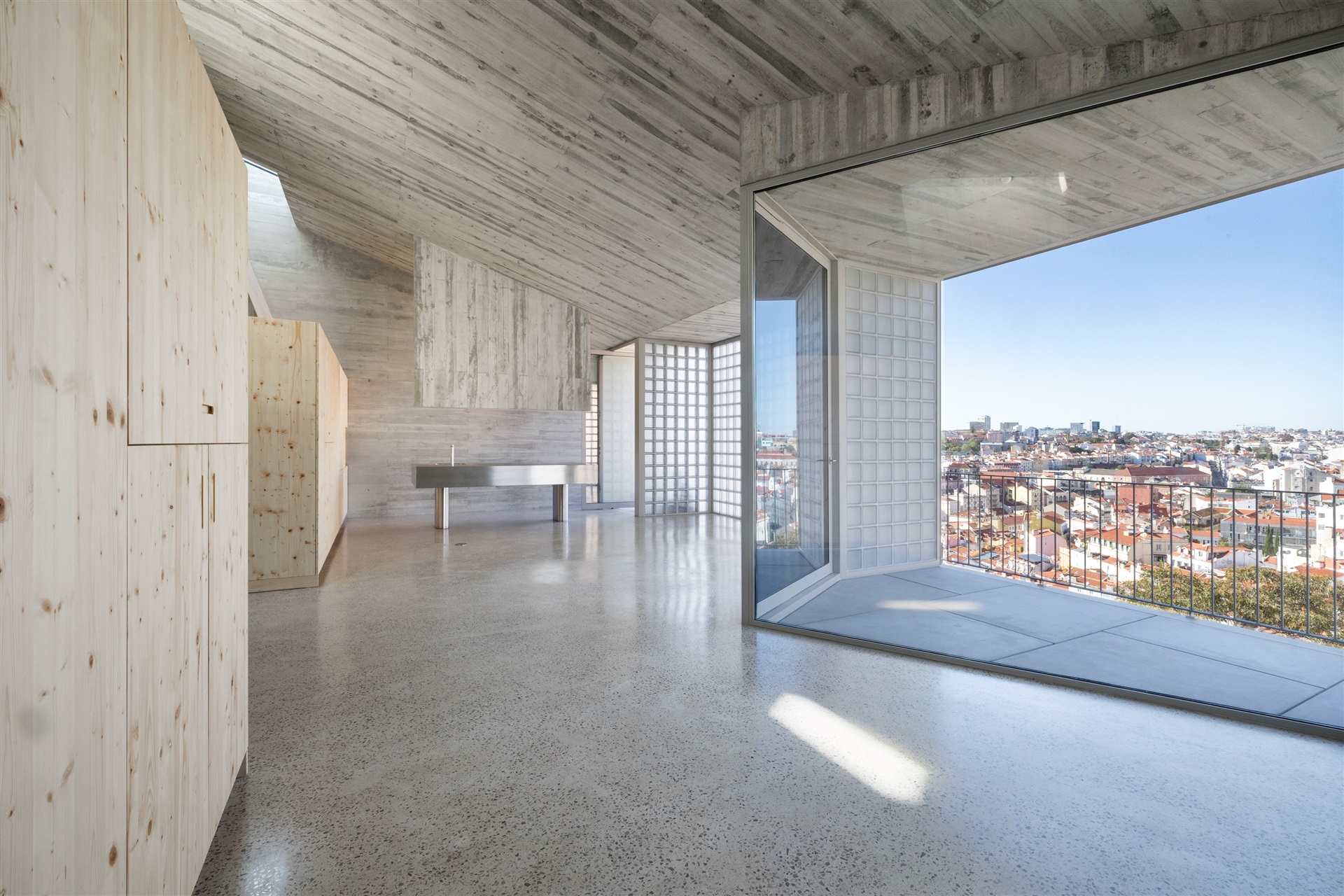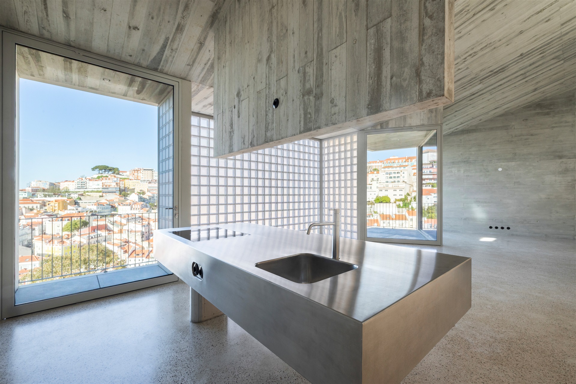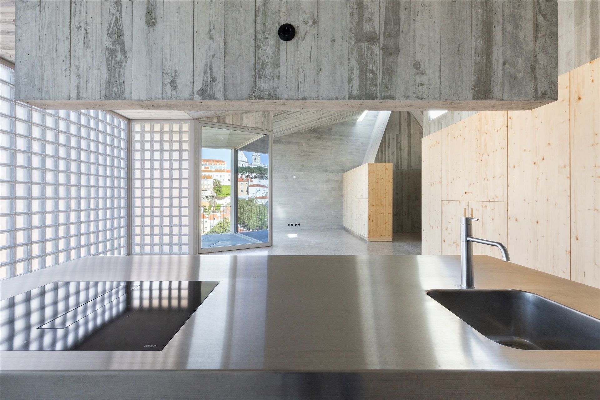 At the heart of one of Lisbon’s most emblematic neighborhoods, this exceptional two-bedroom apartment offers a rare fusion of architectural boldness and contemporary elegance. Set along a historic street tracing the ancient walls of São Jorge Castle, and just moments from the iconic Graça Church, the property forms part of an exclusive and intimate development of only three independent residences — each conceived as a private home of singular character. Fully reimagined under the direction of architect Pedro Domingos, the building expresses a strong architectural identity, where geometric forms meet a refined brutalist aesthetic. A curated palette of noble materials — exposed concrete, natural pine wood, Carrara marble, marmorite, and iron — is presented in its purest and most sophisticated expression. Bathed in natural light, the apartment benefits from meticulously designed openings and skylights that sculpt the interior volumes throughout the day. Expansive metal-framed windows extend the living spaces onto a balcony, revealing breathtaking panoramic views over Lisbon’s rooftops. From sunrise to sunset, the scenery transforms into a living masterpiece, with the silhouette of Graça and the vibrant rhythm of the city as a constant backdrop. Located just steps from Teatro Taborda, the property enjoys a setting that is both culturally rich and authentically serene. The street’s restricted access ensures privacy, tranquility, and an exclusive residential atmosphere. A truly rare opportunity — offering a distinctive lifestyle in one of Lisbon’s most sought-after locations.