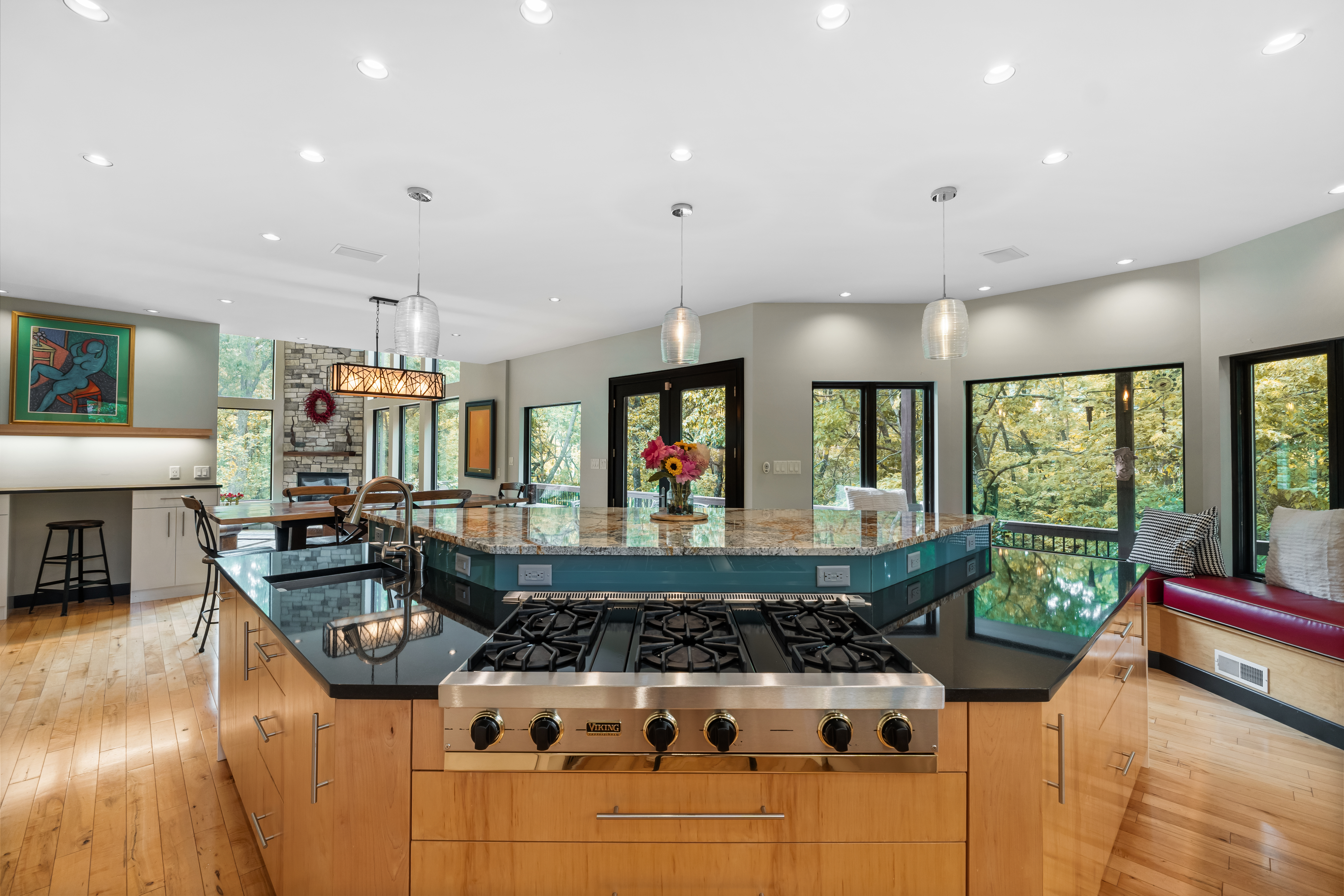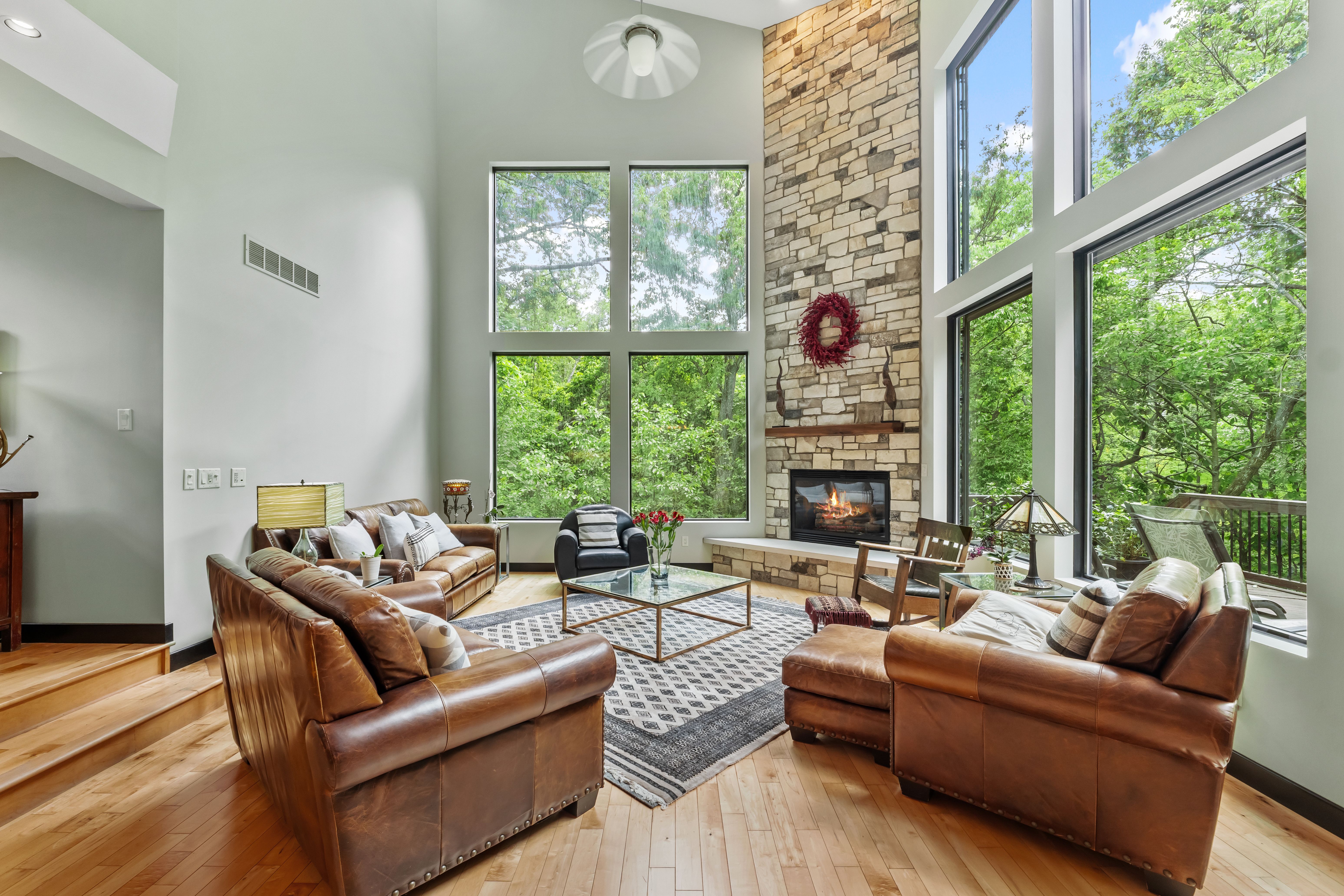 Searching for a home where you wake up feeling like you’re on vacation? Welcome to your private oasis in Kirkwood, tucked away surrounded by trees and the soothing sounds of Sugar Creek. The dramatic 2 story Great Room with Stone Fireplace gives you views of the beautiful woods on the backside of your home. The 3 car garage is a rare feature in the Kirkwood market. The kitchen perfect for quiet nights at home or for gatherings around the statement island, was completed by Mosby in 2020, with Miele, Dacor & Viking appliances. A study with 1/2 bath, en suite bedroom & main floor laundry complete the first floor. Imagine taking a refreshing steam shower and enjoying coffee with the tranquility of the private Primary Suite’s deck or fireplace. The large Primary includes his and hers walk-in closets. A tucked-away landing space and an en suite bathroom round out the upper level. The incredible lower level with full bar, a 3rd fireplace, 2 bedrooms, one en suite, another full bath, this is where you will make memories of incredible gatherings. This level walks out to the screened in porch with outdoor kitchen, updated in 2020 by Mosby with a gas grill, oven, pizza oven and sink bar. With the soundtrack of the soothing sounds of the creek and watching the changing of the leaves as fall approaches, you will make memories in your home that will last a lifetime.