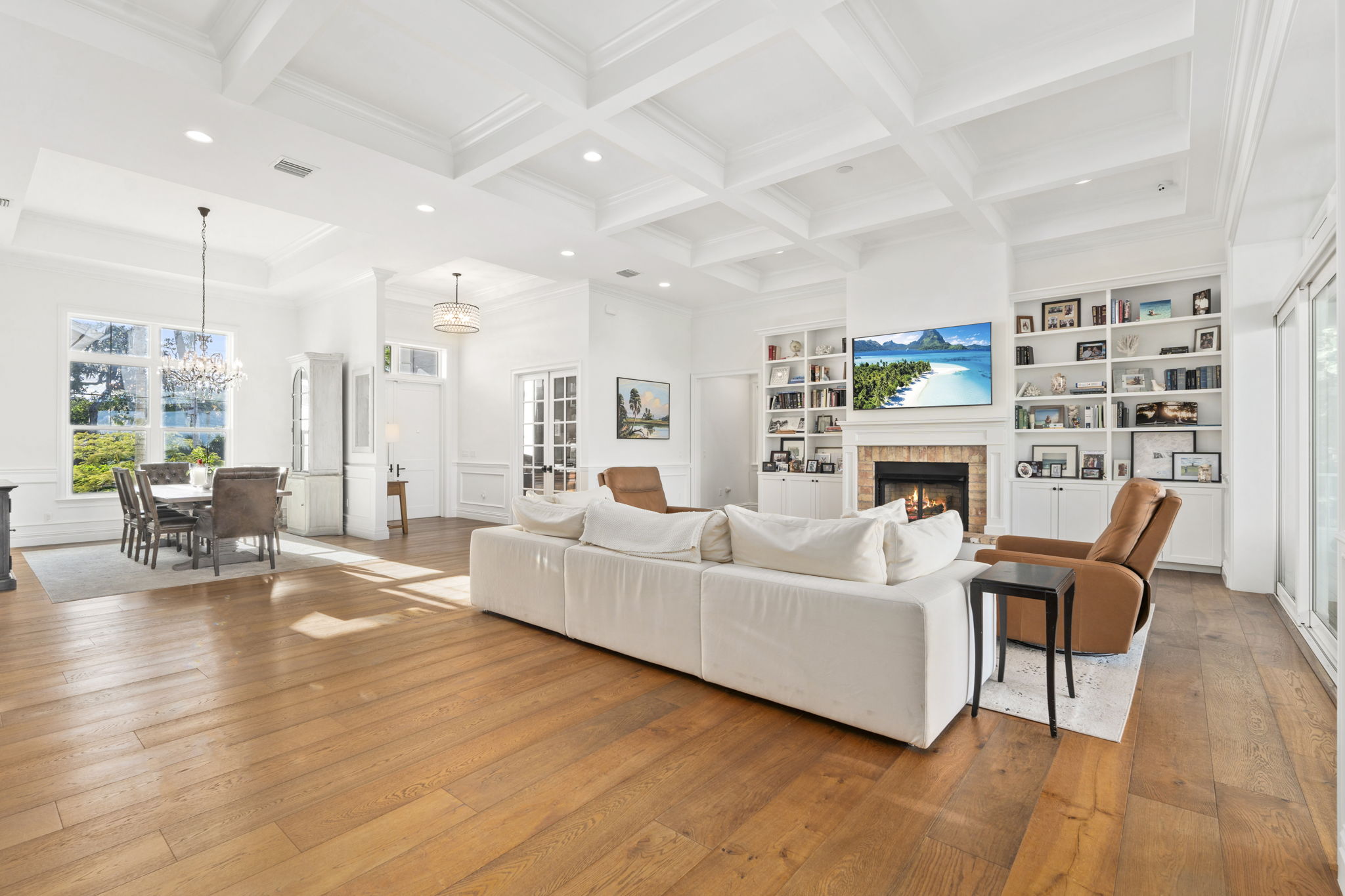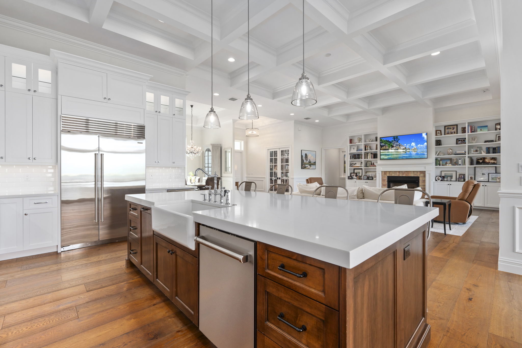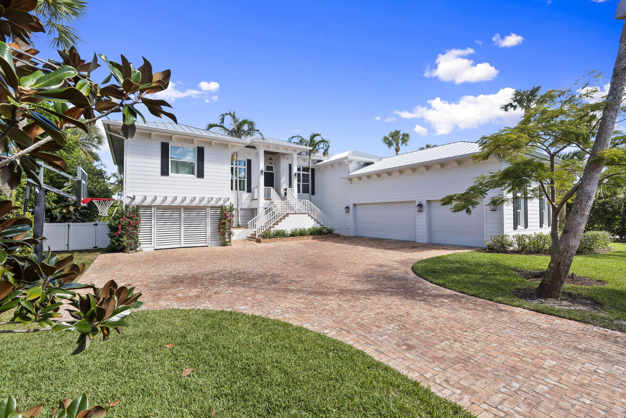 Gorgeous new build, wide-waterfront home on one of South Sewall's Point's most historic parcels. Built in 2020 on 3/4 acre, this classic modern property offers 4085 square feet under air, pool, large backyard, sweeping wide water views and a white sand beach. 4 bedroom./4.5 bathroom with an office, bonus game room, and three car garage. Features include wide plank wood flooring, Sub Zero and Wolf appliances, elevator, generator, impact windows and doors, spacious kitchen, large island, and state-of-the-art security/surveillance system. Outdoor living includes a covered lanai, saltwater heated pool/spa, putting green, plans for outside addition and cabana, and beautiful eastern views of lagoon & Hutchinson Island. Private new dock, 16000 pound lift and completed sewer connection. Must see rare opportunity. Set on one of Sewall's Point's most notable and beautiful wide waterfront sites, this property blends a meaningful past with coastal luxury, perfect for entertaining, relaxing, or watching the sunrise. Once home to the original 1800s Harmer residence with rumored ties to Al Capone, the property now features a custom, no-expense-spared 2020-built home offering refined finishes, clean architectural lines, and exceptional indoor-outdoor living.Bright, open spaces with high ceilings, wide-plank wood flooring, and expansive windows capture sweeping eastern views toward Hutchinson Island, the House of Refuge, the Hutchinson Island Bridge, Bird Island, and the Intracoastal Waterway.The home offers 4,085 square feet under air with four bedrooms, four-and-a-half bathrooms, a library, a bonus game room, and a three-car garage with generous storage and workout configuration. The chef's kitchen includes a Sub Zero refrigerator and Wolf gas appliances, a large center island with storage, custom cabinetry, and seamless flow into the living and dining areas. The living room includes a cozy Chicago brick gas fireplace surrounded by custom built-in bookshelves and mantle. Multiple sliders open to a spacious covered lanai for outdoor lounging or hosting. The home features an oversized 40x20 saltwater pool with dual gas and electric heating capabilities and electronically app-controlled lighting and heating systems.The outdoor dining and lounging areas include a putting green, manicured yet lush landscaping, uplighting, mature palm trees, and an herb garden. The vast and substantial backyard is perfect for outdoor sports or is buildable with included plans for future cabana expansion. The front yard includes an 11-foot mature privacy hedge, a mango tree, a Poinciana tree, and a Magnolia tree.A private dock with a 16,000-pound lift and a dredged navigable slip provides direct access to the Intracoastal, Boy Scout Island, the Sandbar, Sailfish Point, Downtown Stuart, and Jupiter. The dock is constructed with WearDeck composite decking, upgraded lighting, and 10-inch pilings for added stability, with composite materials that offer exceptional resistance to heat and long-term durability.The wide, white sand beach is met by the idyllic waters of the Indian River Lagoon, providing opportunities for dolphin, manatee, and various wildlife sightings. Additional features include an elevator, full house generator, impact windows and doors, and a fully completed sewer connection with new Sewall's Point Road enhancements for a high and dry elevation. This residence combines custom craftsmanship, historic significance, and a premier waterfront lifestyle in one of the most desirable communities on the Treasure Coast. Wonderful for children or retirees, this rare opportunity will not last.
