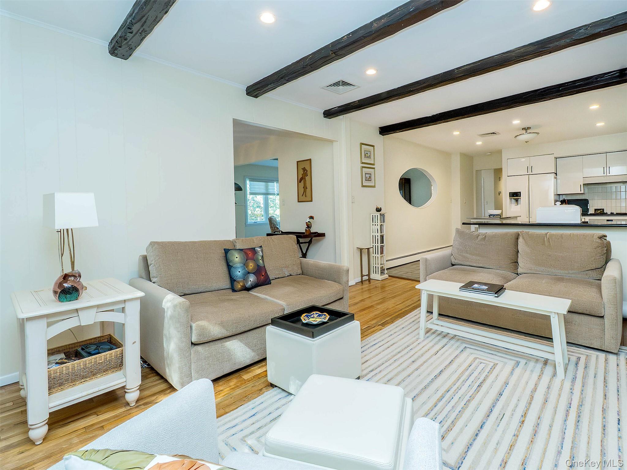 This spacious four-bedroom, three-bath home is nestled on a quiet cul-de-sac and offers beautiful water views. Located in the desirable North Shore School District, it also provides access to all that Sea Cliff has to offer. The home features a finished lower level with additional living space, perfect for privacy and flexibility. Enjoy a deck-ideal for relaxing evenings, taking in stunning sunsets, and enjoying serene partial water views. Inside, you'll find a cozy den with a fireplace, a large dining room, and a bright living room designed for comfortable living and entertaining. The generously sized kitchen flows seamlessly into the dining area and den, with sliders leading out to the deck and yard-perfect for indoor-outdoor living. Close to the beach, this home is ideal for enjoying summer days and watching spectacular July 4th fireworks.