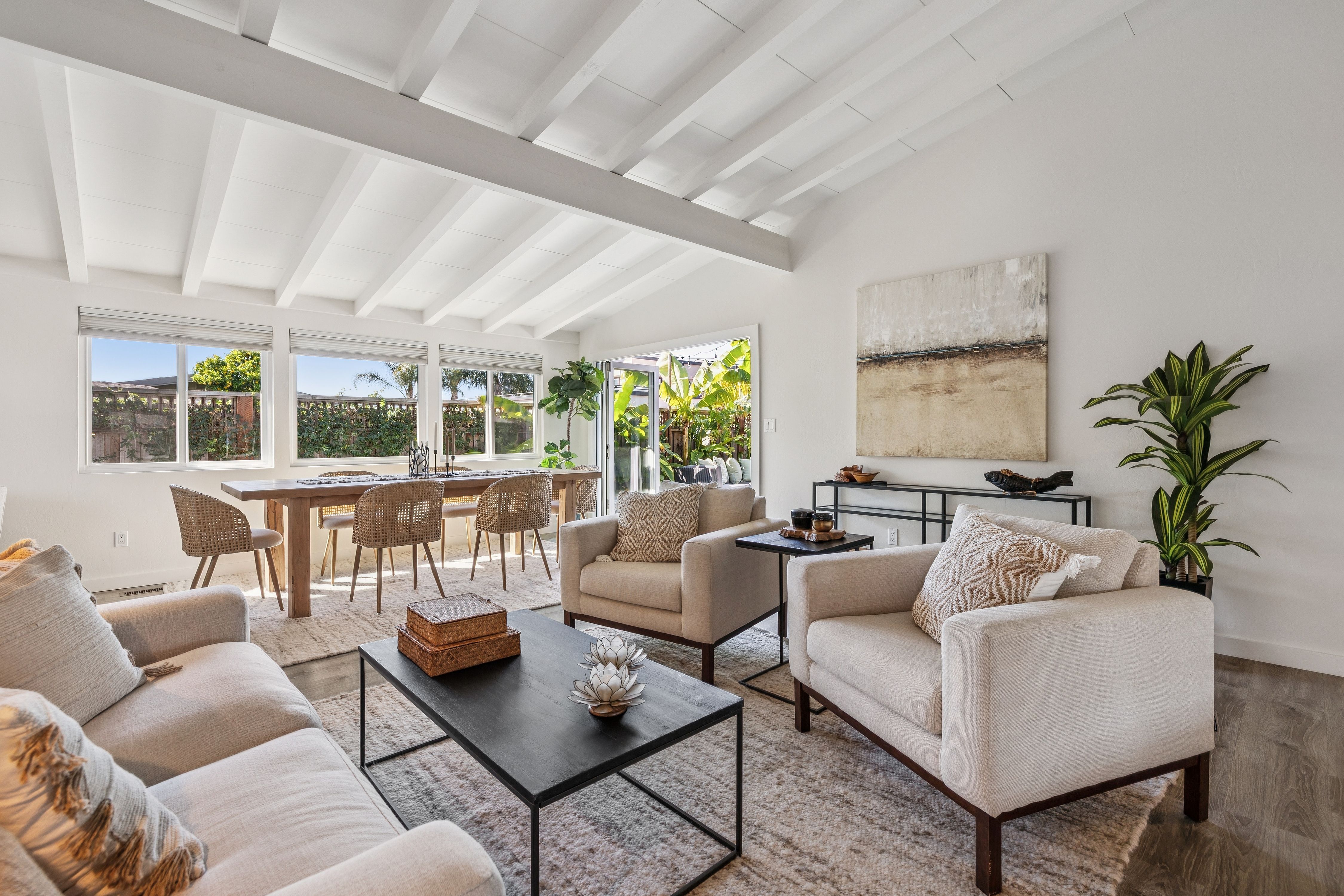 Tucked away on a peaceful cul-de-sac, this beautifully updated residence offers the best of Marin living just steps from the San Rafael Bay. Bathed in natural light, the home features a desirable single-level layout with an inviting open floor plan and seamless indoor-outdoor flow, opening to a private patio and deck ideal for relaxing or entertaining.Thoughtfully updated with modern finishes, the kitchen and bathrooms blend style and functionality, while soaring ceilings and a lush, tropical backyard create the feeling of a secluded private oasis.Enjoy a true “staycation” lifestyle with access to community amenities including a sparkling pool and private boat dock, all just moments from the waterfront, the yacht harbor, and vibrant downtown San Rafael.Stylish and move-in ready, this is a rare opportunity to own a serene retreat in one of San Rafael’s most desirable enclaves.