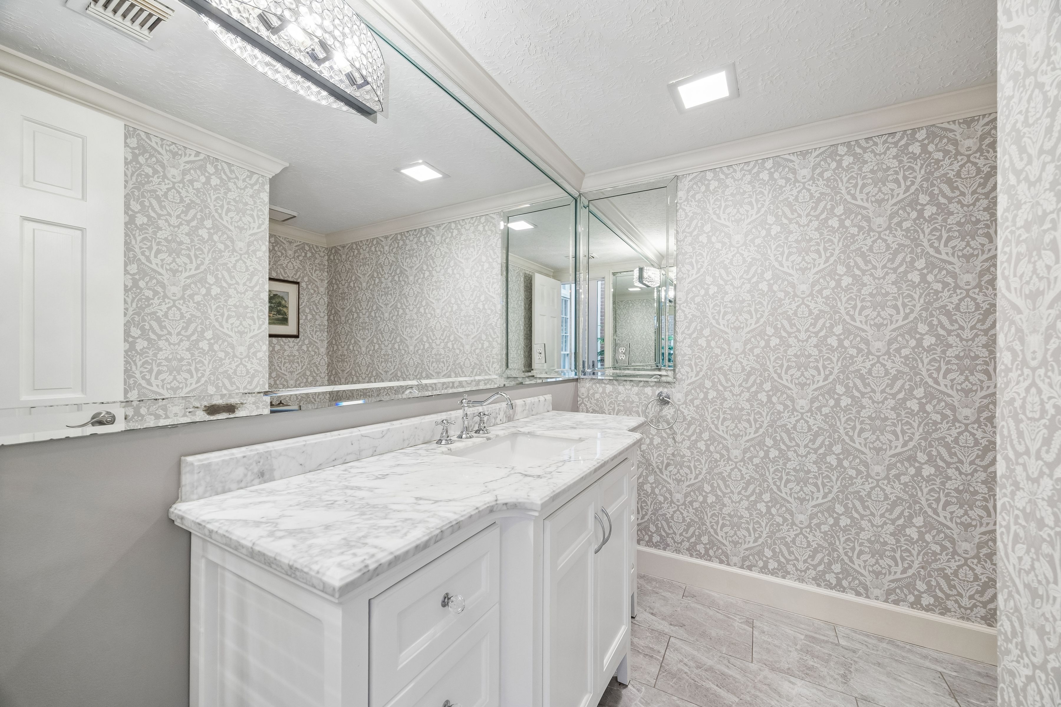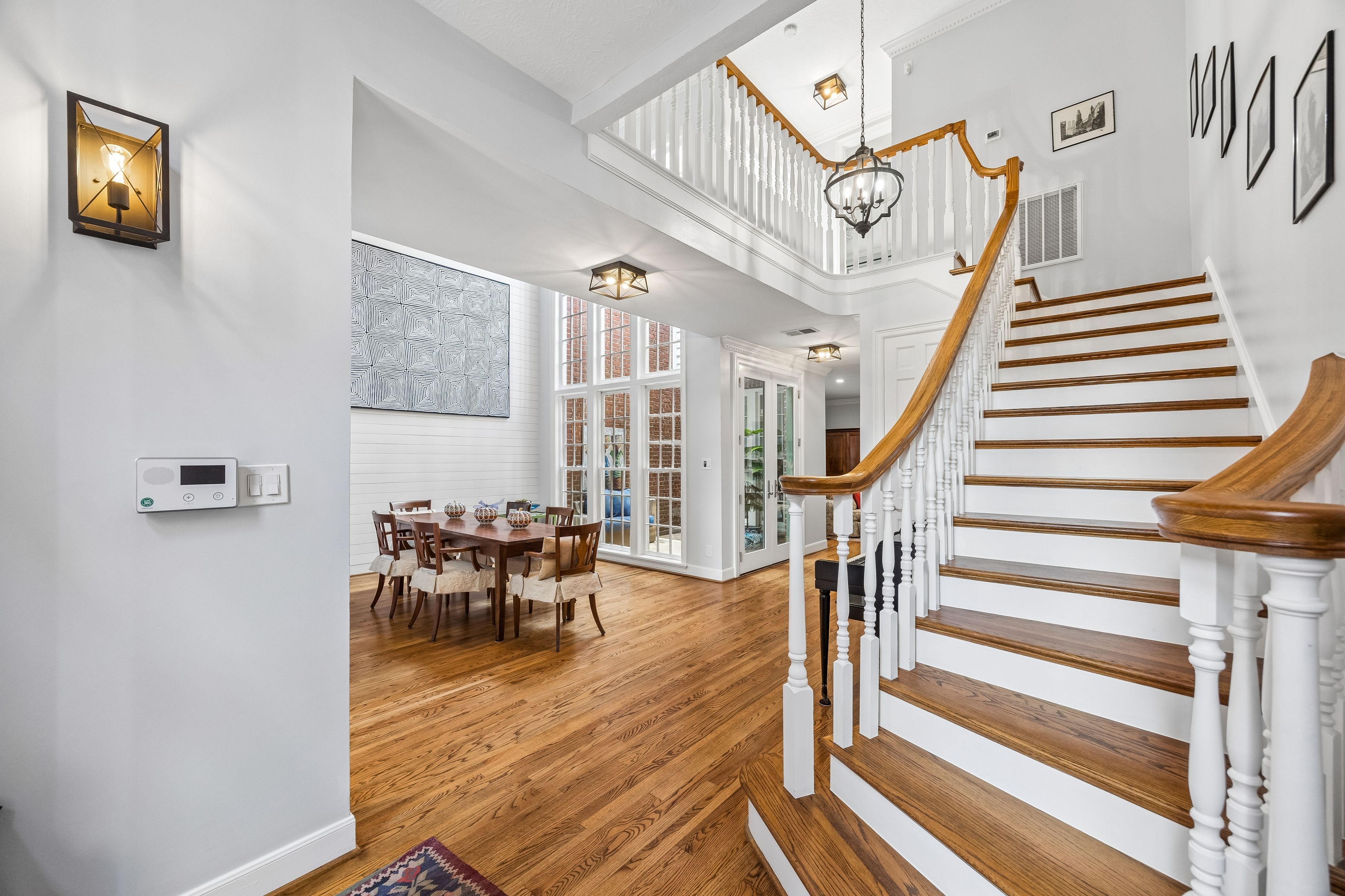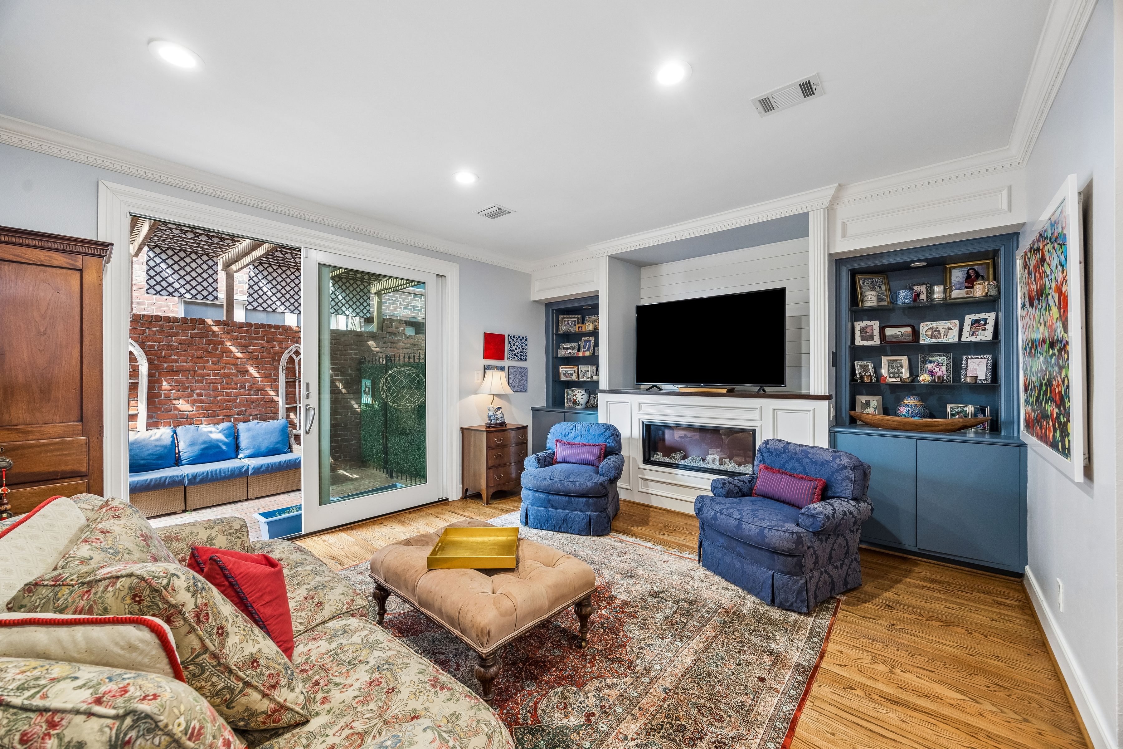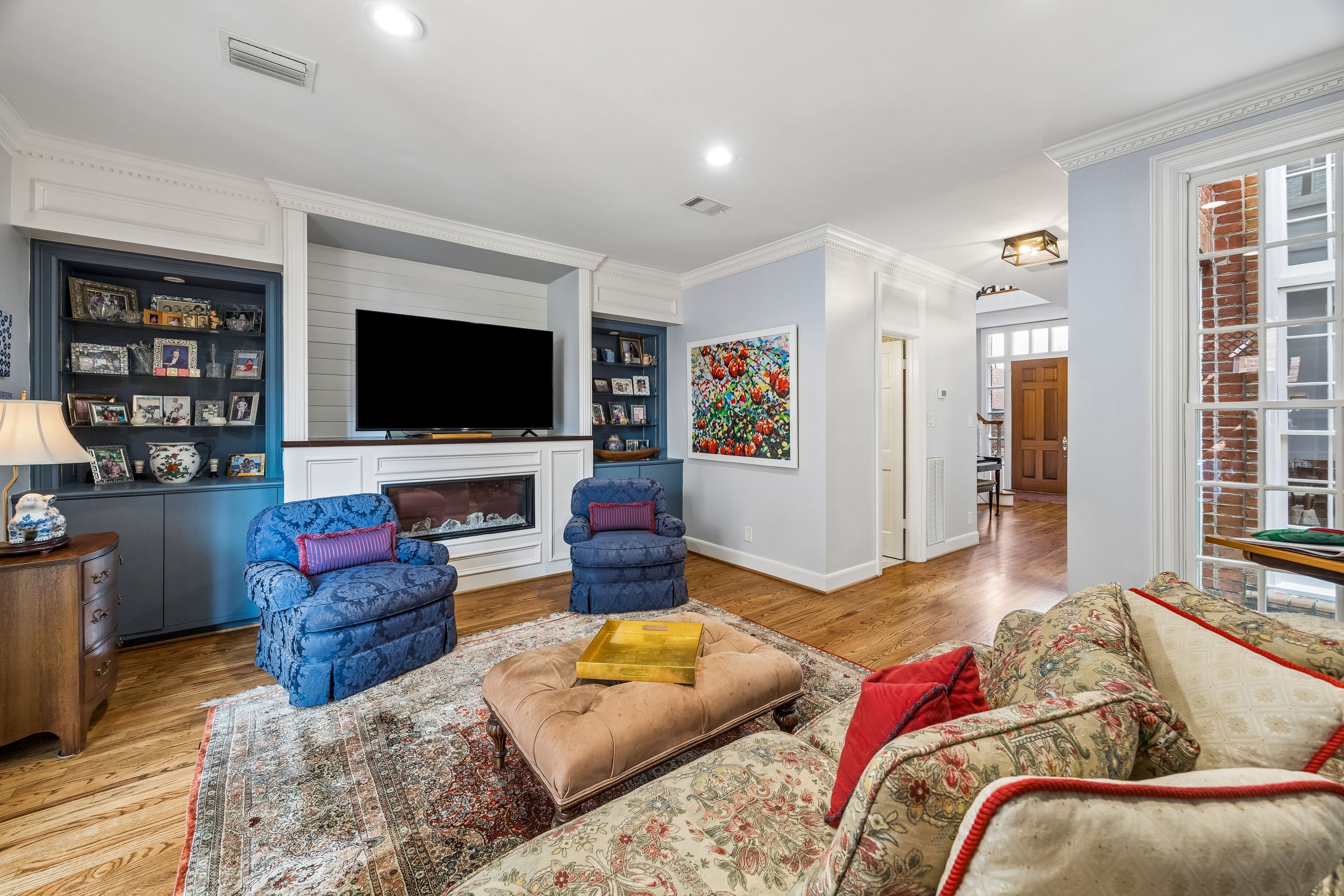 Located one block from Memorial Park, this gated Crestwood home offers 2,488 SF with a flexible layout designed for everyday living. Hardwood floors, high ceilings and crown molding carry through the main living areas, centered around a fireplace with built-in shelving and views to the covered patio for easy indoor-outdoor flow. The recently updated kitchen features quartz countertops and a large island with seating. Upstairs, the primary suite offers an east-facing orientation for natural morning light and an updated bathroom with marble countertops, double sinks, glass shower and walk-in closet. Additional highlights include two outdoor patio spaces that extend the living areas and create multiple options for seating and entertaining. Crestwood is a quiet, established neighborhood with tree-lined streets, just one block from Memorial Park with direct access to trails, green space and the golf course, creating a setting centered around outdoor living.