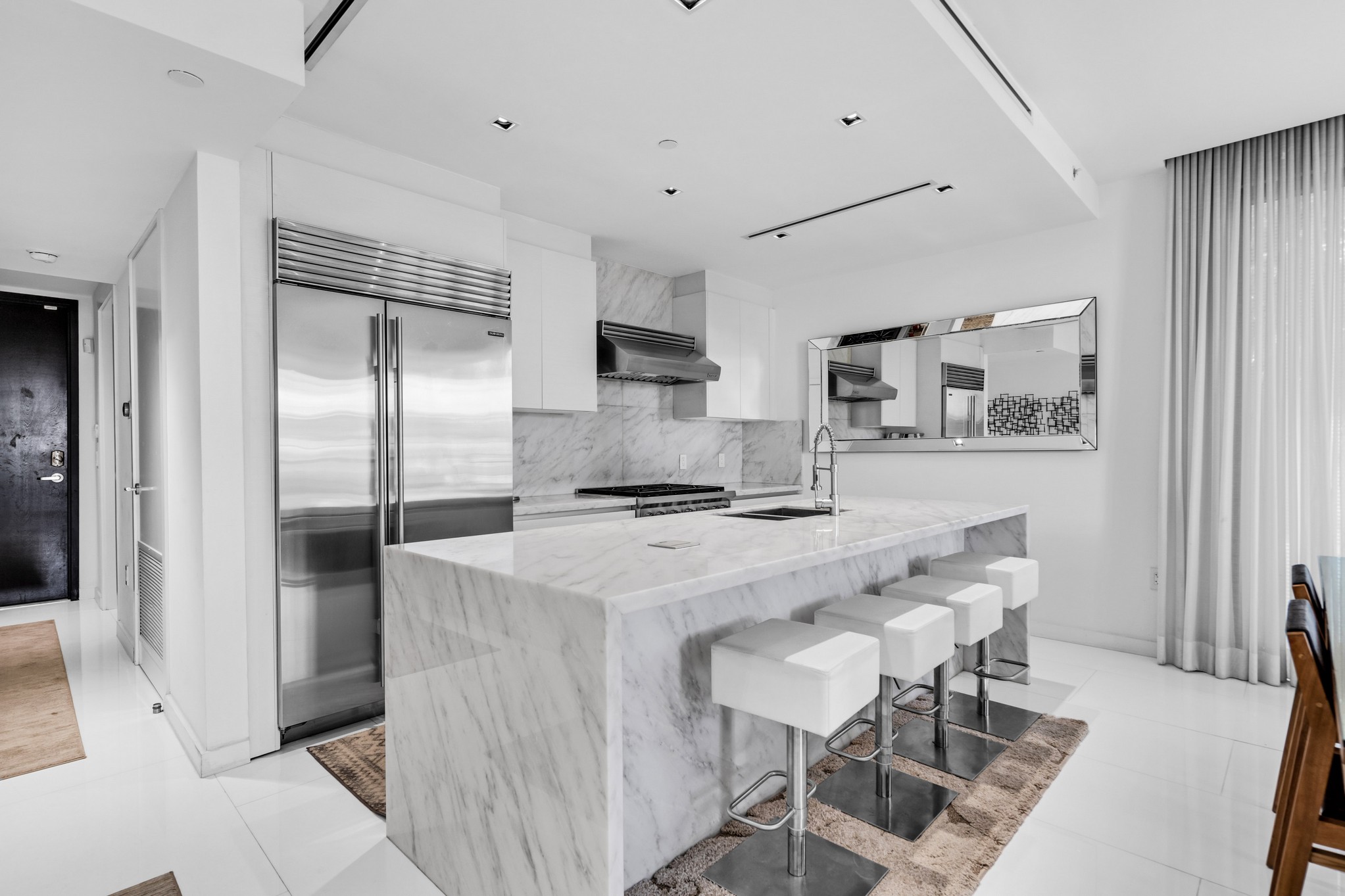 Step into luxury with this gorgeous South of Fifth gem. Located on beautiful and private meridian ave this 2/3 bath residence is the perfect seasonal escape. The unit is outfitted with a gourmet kitchen featuring sub-zero appliances and gas cooktop, spacious open living quarters with privatebalcony, and beautiful primary suite with designer finishes. The secondary suites are perfect for visitors and guests or an at home office. The unit features private access entry as well as attached covered parking. The building consists of only 4 units, maximizing the secluded and private feel of the property. The unit is available for immediate move in with occupancy. Call or Text Listing Agent For Access