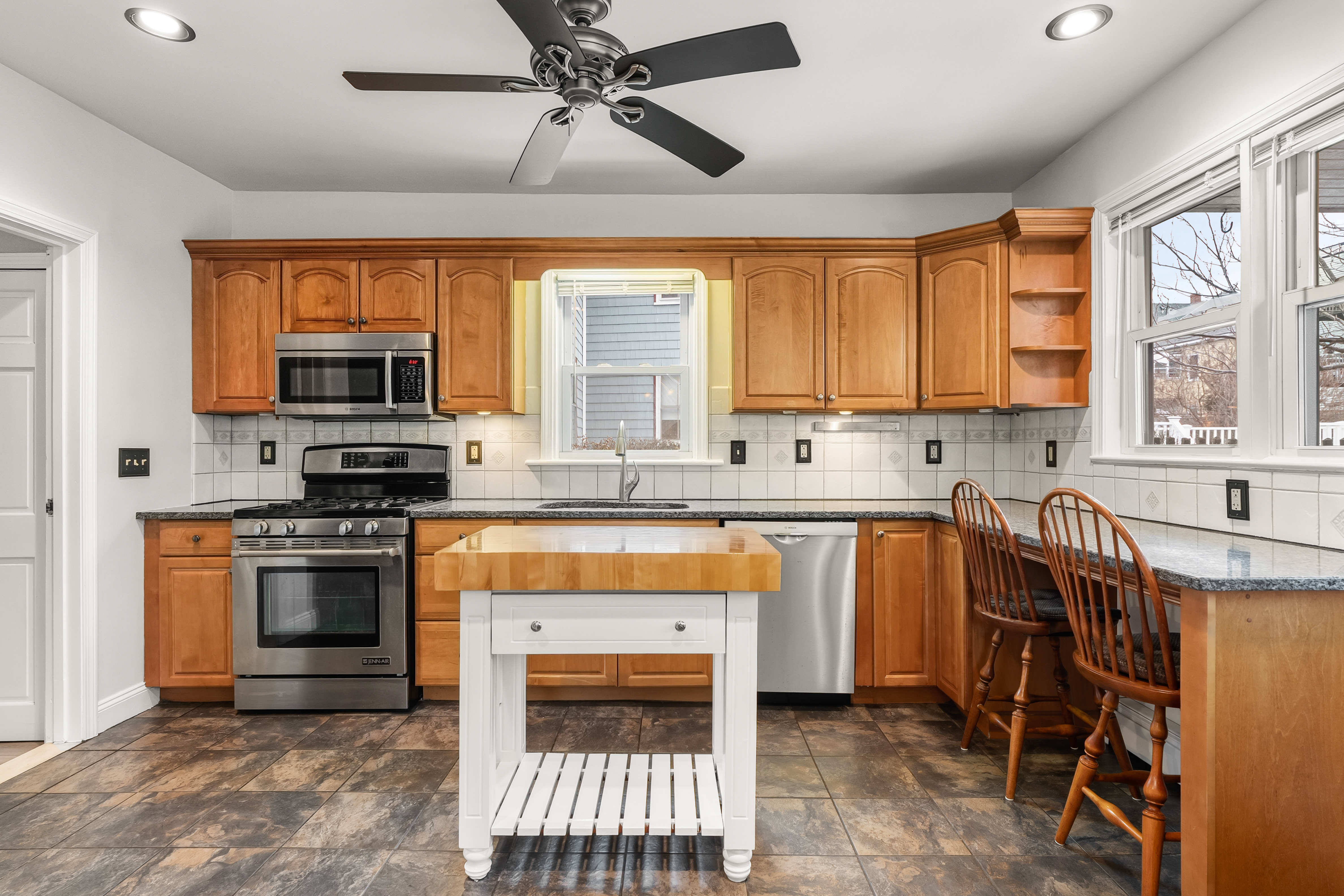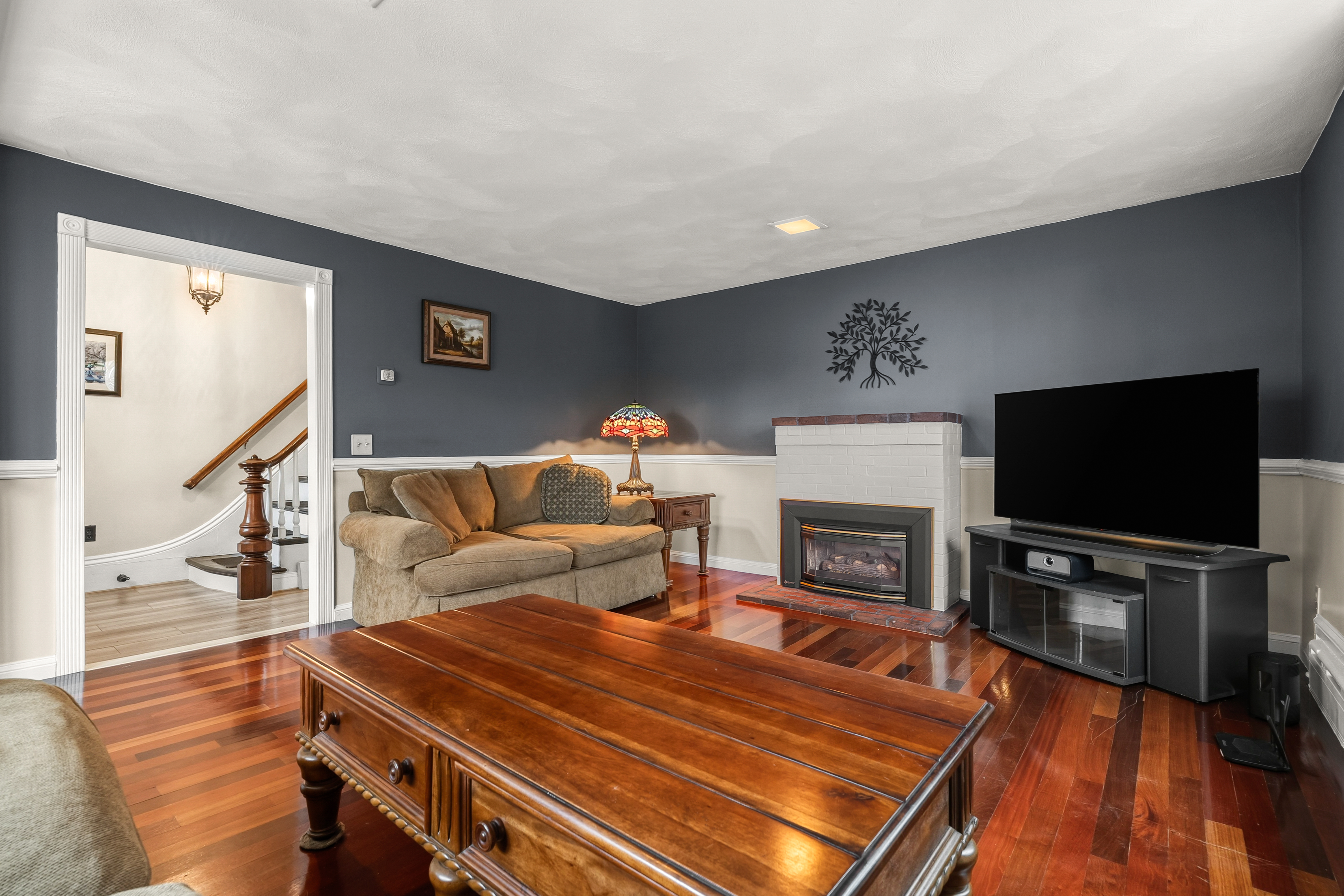 Tucked in the heart of Somerville, this one-of-a-kind property blends convenience, charm, and serenity. A colorful stained glass front door warmly welcomes you inside, setting the tone for the character found throughout. Ideally located just across from the MBTA Green Line, commuting is effortless. This lovingly maintained three bed, one bath home has been thoughtfully updated over the years, featuring rich Brazilian cherry wood floors in the living room, a cozy gas fireplace, and a well-appointed kitchen with stainless steel appliances. The bathroom offers an added touch of comfort with heated floors, while every detail throughout reflects pride of ownership and timeless character. A standout feature is the rare and abundant parking, complete with a three car garage and an additional three driveway spaces, an exceptional offering in this vibrant urban setting. Step outside to your own private oasis: a beautifully landscaped backyard filled with lush greenery and a tranquil koi pond, creating a retreat right at home.