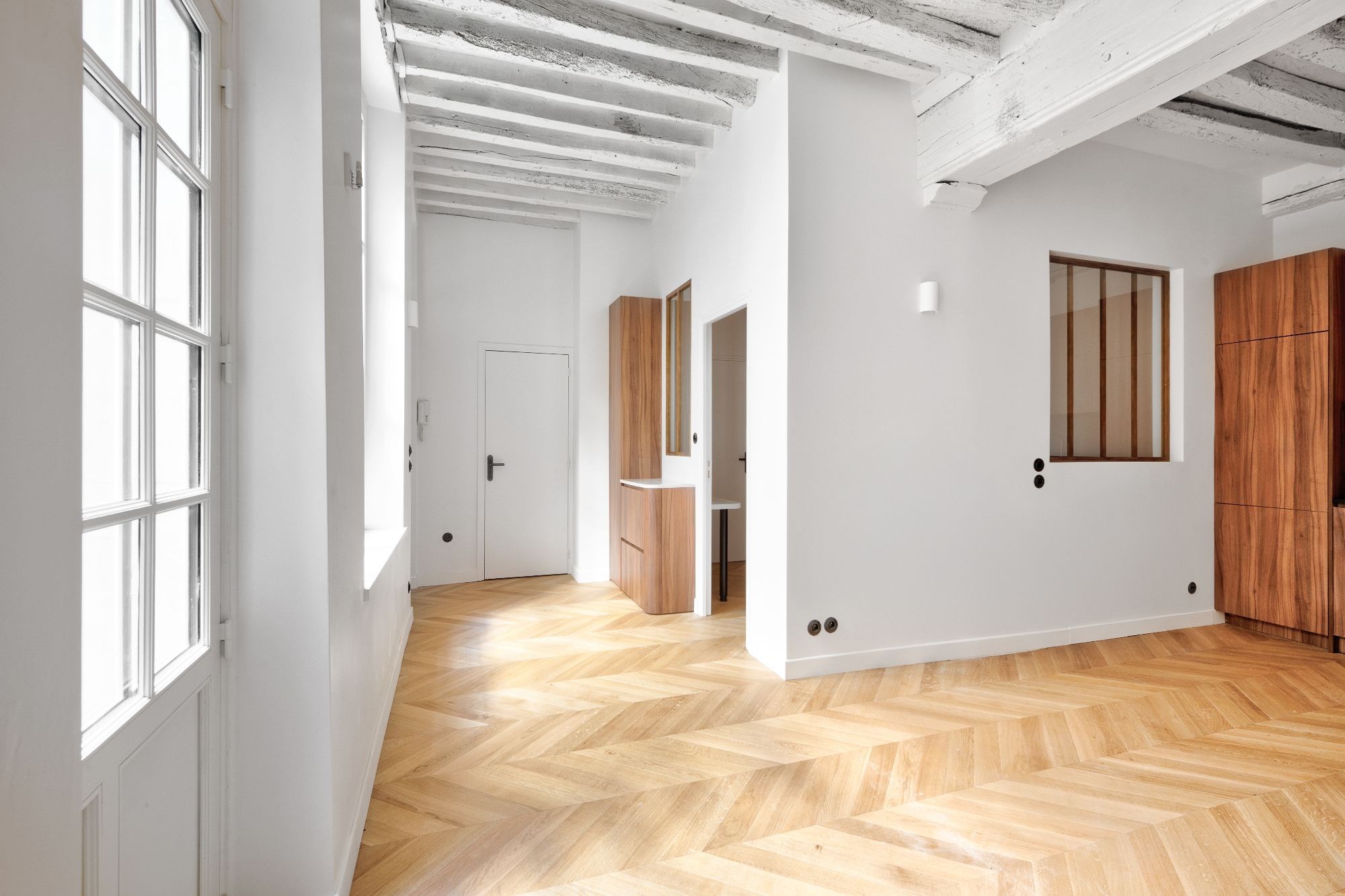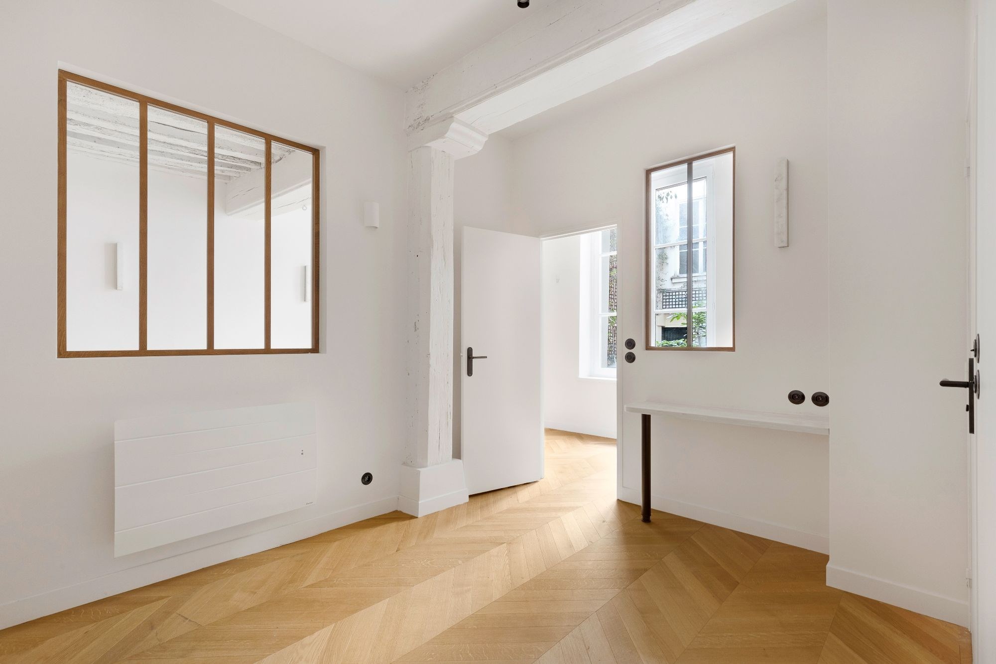 Ideally located on Quai de Bourbon, in the heart of the highly sought-after Île Saint-Louis, this 41.42 m² Loi Carrez apartment is on the ground floor of a mid-17th-century building, perfectly maintained, overlooking a charming paved courtyard with trees. In perfect condition and enjoying absolute calm, the property has been carefully renovated using high-quality materials, respecting the character of the old building. It offers a perfectly optimized layout, with no wasted space, as well as beautiful 11-foot ceilings. The apartment comprises a living room with exposed beams and solid oak herringbone parquet flooring, a fully equipped open-plan kitchen, a bedroom with a fitted dressing room, an elegant shower room and a separate toilet. A cellar completes this rare property, located in one of the most iconic locations in Paris. Professional use permitted.