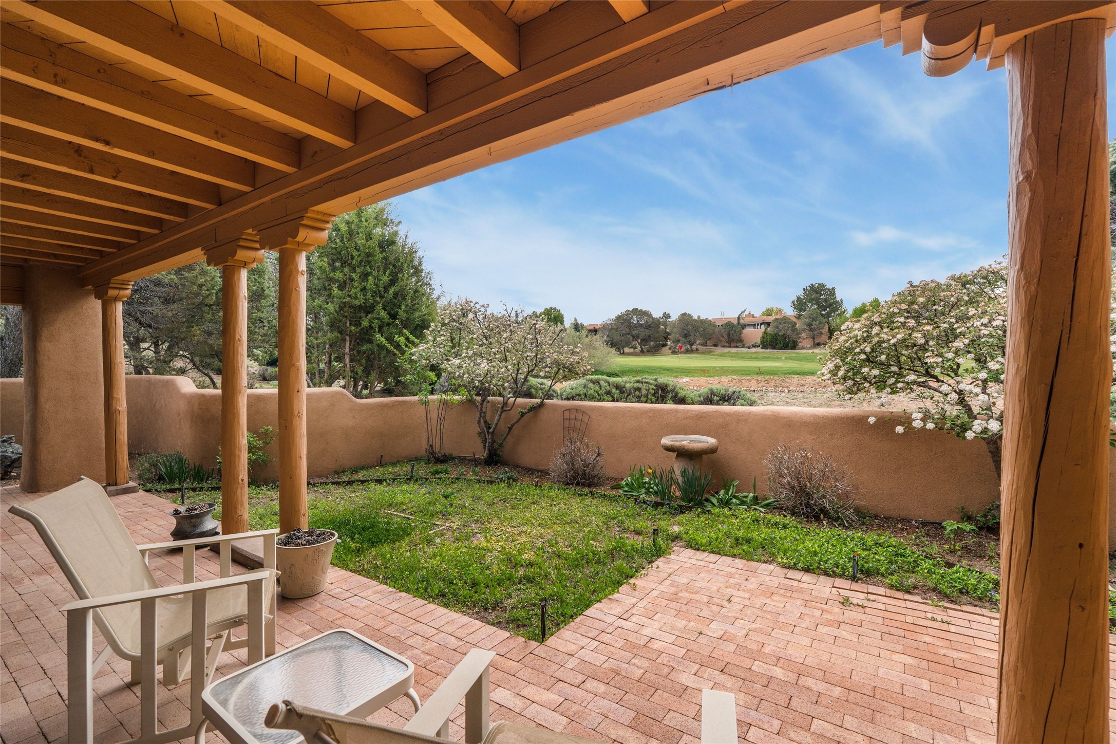 Ideally located on the golf course with an oversized back portal to take in the scenic views and gaze at the pond, this two bedroom with an office is a fabulous Quail Run offering. Updated floors and kitchen serve to make this functional and enjoyable. Plenty of Santa Fe style, great separation of bedrooms and ample windows that host the sunlight and give plenty of expanse to view. Located walking distance from the Clubhouse inside of 103 beautifully maintained acres with 24 hour hosted security. Ownership at Quail Run includes all amenities; engaging 9 hole golf course, state of the art pool, spa and workout areas, varied quality fitness classes, pickleball and tennis courts as well a delightful 1 3/4 mile walking trail. Come and see!
