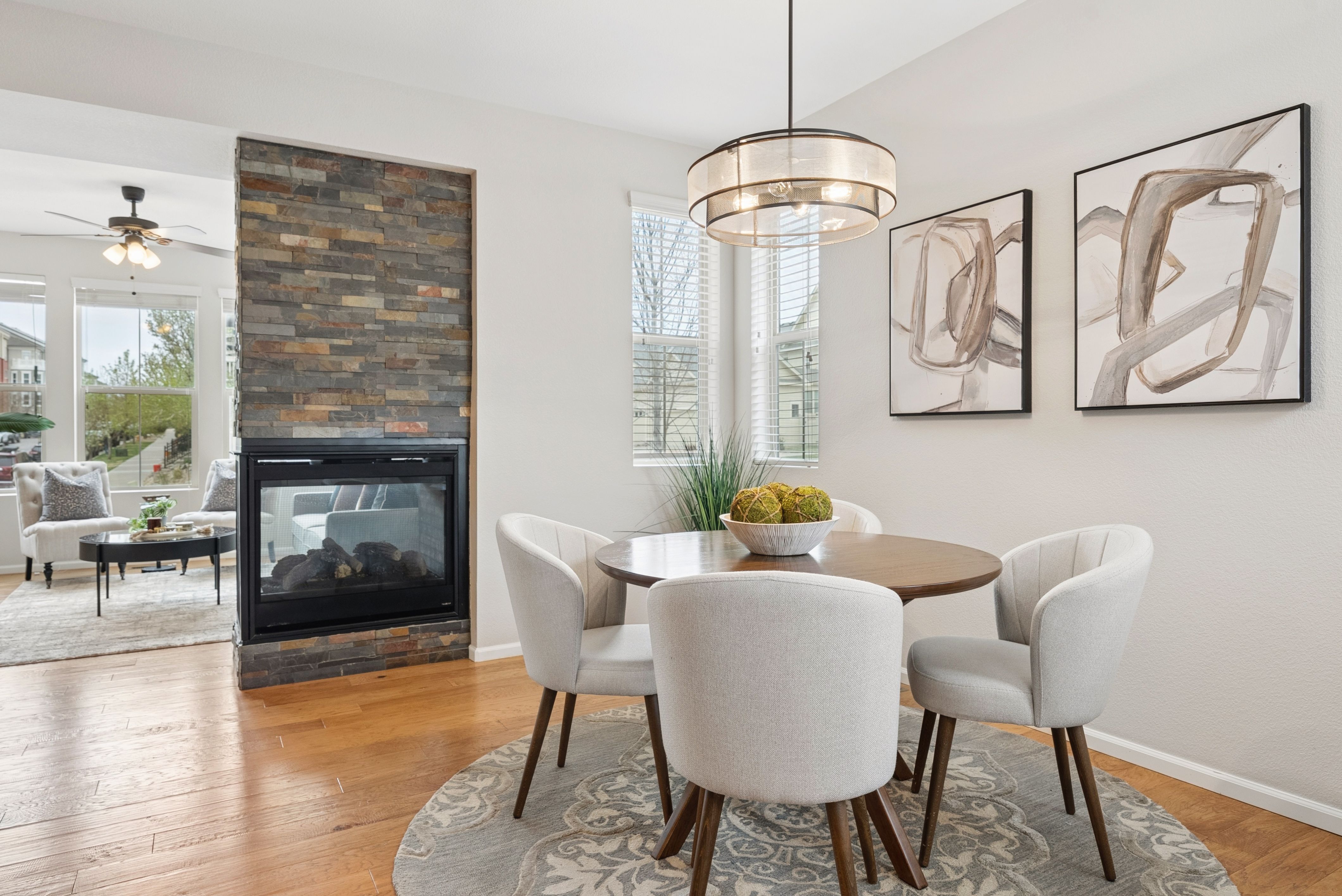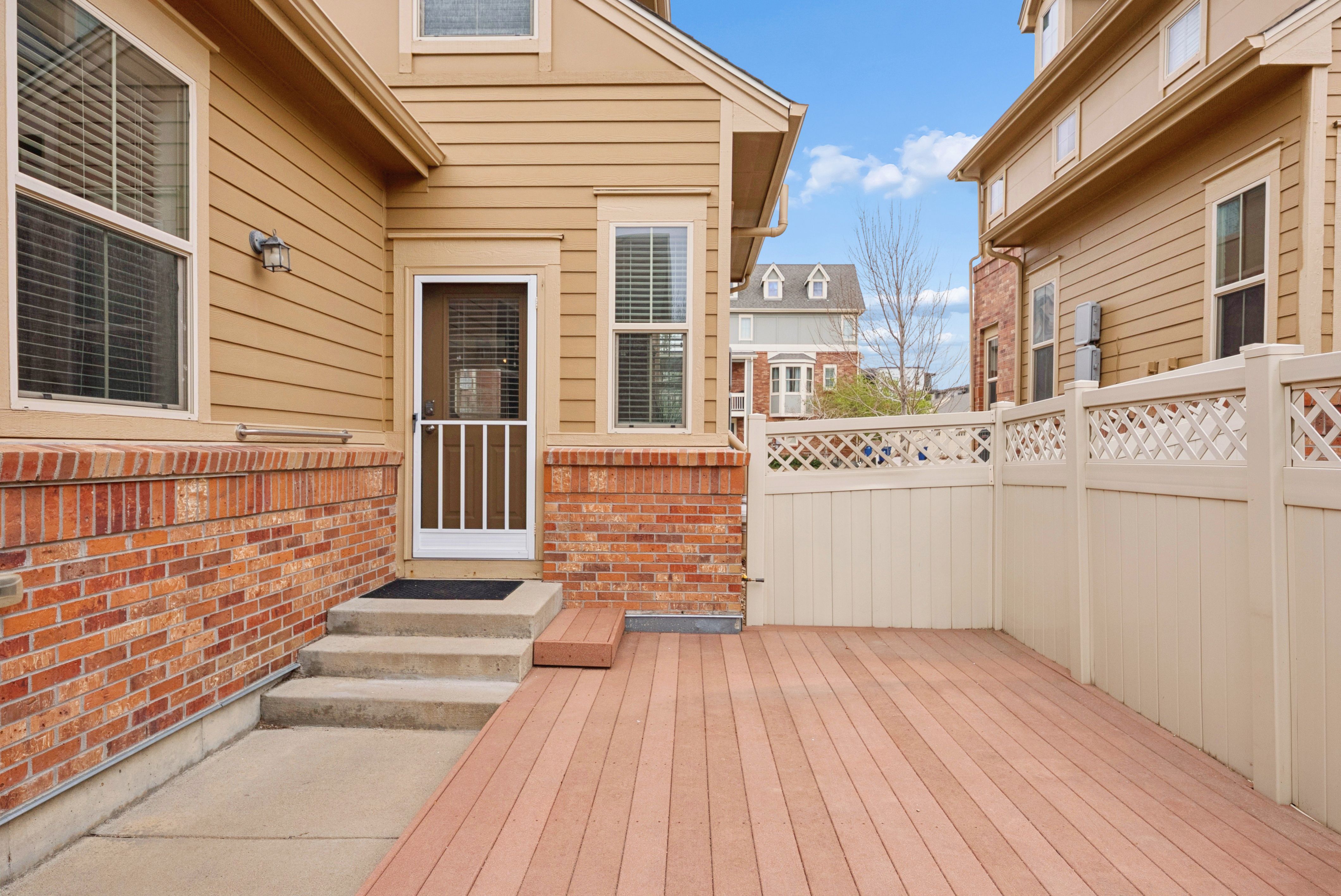 Welcome to this beautifully updated 3-bedroom, 3-bath end-unit townhome in the highly sought-after RidgeGate community. Offering the ease of main-floor living, this thoughtfully designed home features a bright, open floor plan filled with natural light from desirable south- and east-facing windows. A cozy three-sided fireplace anchors the great room, dining area, and kitchen, creating a warm and inviting space perfect for both relaxing and entertaining. The updated kitchen shines with new quartz countertops, a spacious island, abundant cabinetry with convenient pull-out drawers, and a large pantry. The sunny main-floor primary suite provides a peaceful retreat, complete with a walk-in closet and a generous en-suite bath featuring dual sinks. Upstairs, you'll find two spacious bedrooms—each with walk-in closets—and a full bathroom, offering flexibility for family, guests, or a home office. The expansive unfinished basement opens the door to endless possibilities, whether you envision a fitness room, media space, or additional bedroom and bath. Enjoy easy outdoor living with a private deck, garden area, and gas grill hookups—perfect for Colorado evenings. An oversized two-car garage offers excellent storage and convenience. Ideally located with protected walking trails and green spaces just outside your door, and within walking distance to the Lone Tree Arts Center, Lone Tree Recreation Center, and Prairie Sky Park, as well as numerous cafés, coffee shops, and a vibrant shopping district. Combining the privacy of a single-family layout with the convenience of townhome living, 10273 Bellwether delivers comfort, style, and an exceptional location.